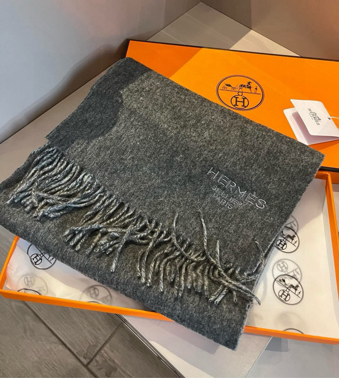 🆕Hermes · Double-sided lamb wool scarf highly recommended! 100% top-grade lamb wool material, extremely high quality, very warm, soft and skin-friendly without irritation. Classic double-sided color-block design, one scarf with two styles❗️ Suitable for both men and women, size: 30*180cm❗️