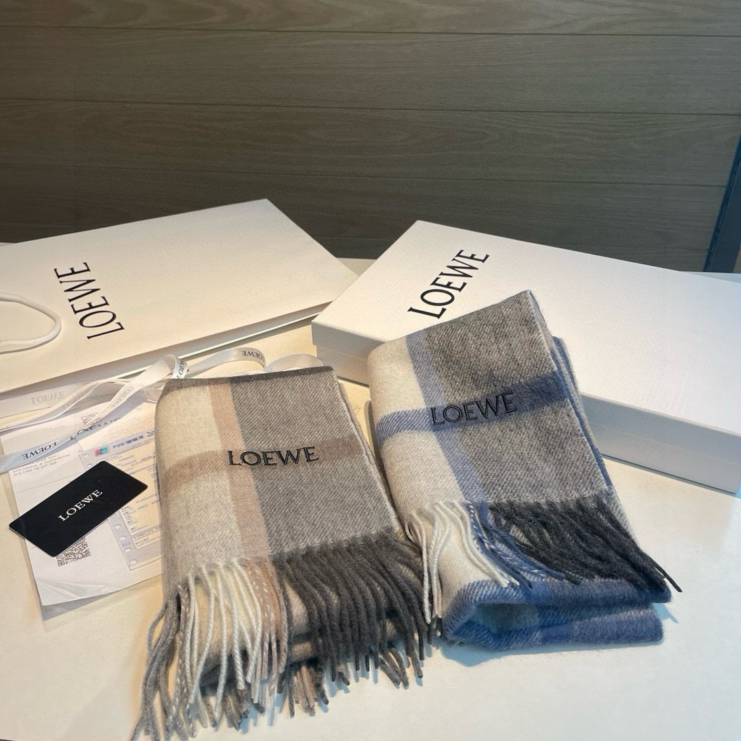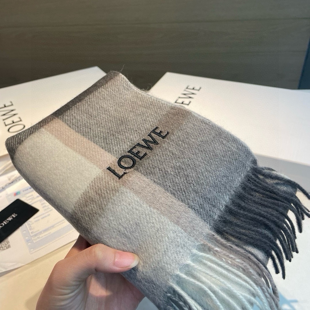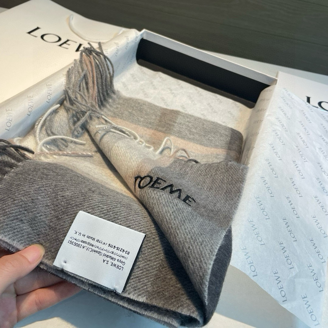 Loewe. [Unisex Scarves] Highly recommended for personal use, a rare high-end men's style! A treat for family members! A very stylish scarf~ I absolutely love the fabric, it's very soft, delicate, and comfortable, with a slight water wave pattern! Elegant and minimalist, super attractive color scheme that any guy would love. The small logo adds a very refined touch, giving it a quality feel without being flashy~ The bulk shipment was sent out months ago~ Only a small surplus left as a treat for everyone~ A classic men's 30cm wide cashmere scarf! Unisex style, dimensions 35x180 (including tassels, total length 180cm), suitable for both formal and casual wear~ Can be worn folded or wrapped around, both ways work perfectly, giving a gentlemanly and stylish look~ A风度 with warmth!