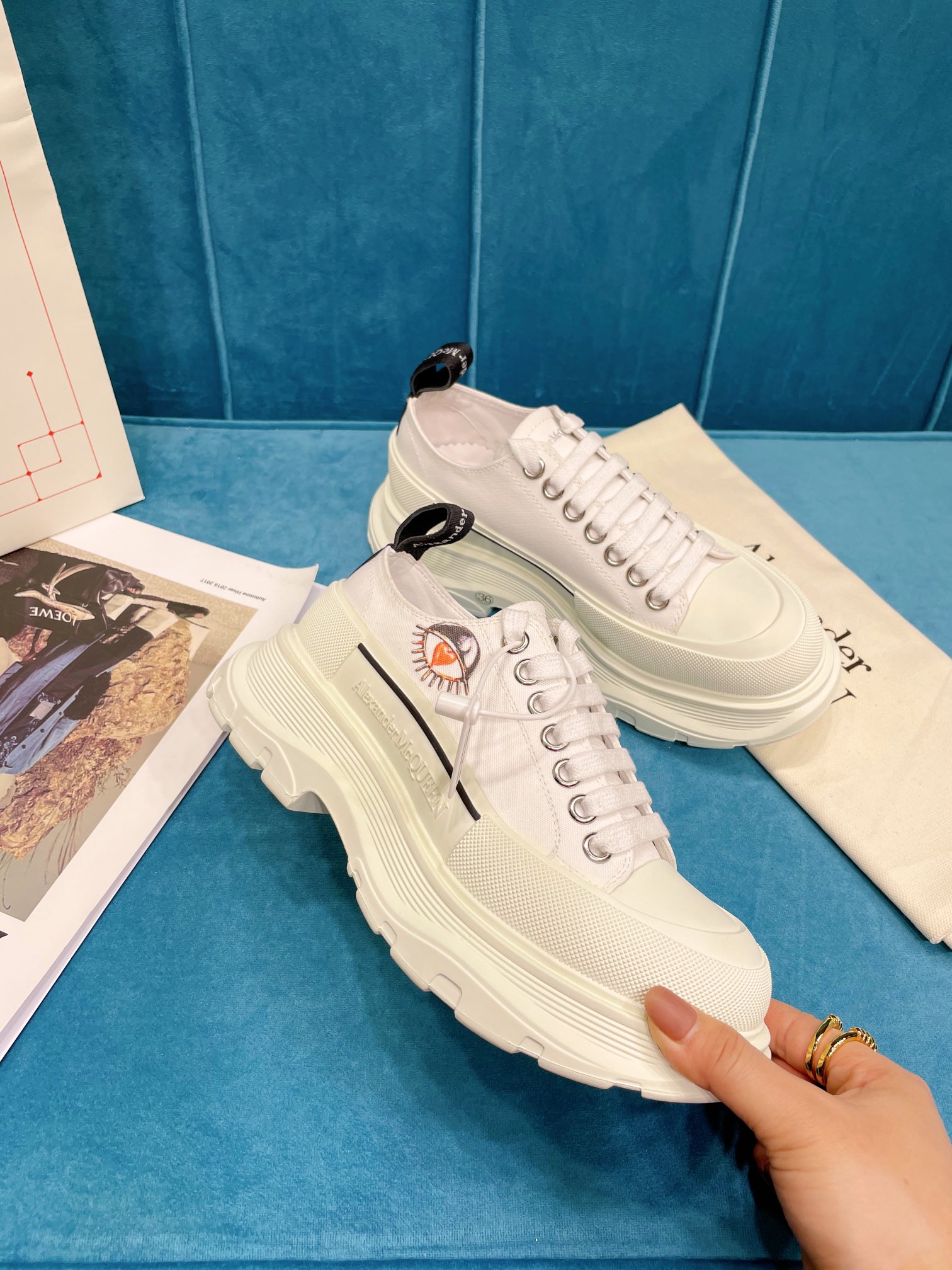 The highest version of Alexander McQueen's 2021 spring collection debuts the MQ new shoe! I really love this McQueen shoe❤ The dark series is so cool! It looks really great on the feet😍 It's like a combination of Balenciaga and Converse—the pairing is simply too stylish. The upper uses imported cashmere, making it super soft to the touch. The insole is made of Italian imported sheepskin + latex cushion, making it super comfortable on the feet🦶. Extremely flexible! The round toe design allows the toes to fully release, eliminating the usual pressure from shoes. The sole uses the original molded TPU sole. Super wear-resistant, with a multi-layer sole combination that involves complex craftsmanship. ⚠ Make sure to recognize our original development model and color. Size: Women 35-40 Men 38-44