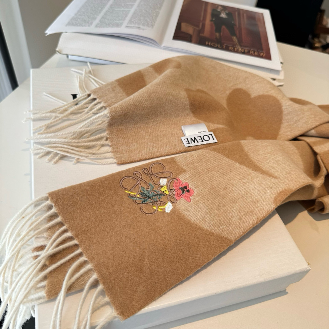 New arrival! Loewe - a rare gentle color scheme, low-key yet elegant. Highly recommended! Double-sided color scheme, one scarf with two style combinations, high-end, comfortable, fashionable, and elegant. It's a niche brand but has a full luxury vibe. Super recommended! This touching and soft Loewe scarf features an extremely simple color paired with an eye-catching color-changing logo. It adds the finishing touch without losing beauty, a pursuit for successful individuals. The color is absolutely perfect, with a unique fairy-like charm. Definitely the ideal choice for couples. The color is elegant and not flashy! Made of very soft cashmere material. Dimensions: 30 x 180cm!