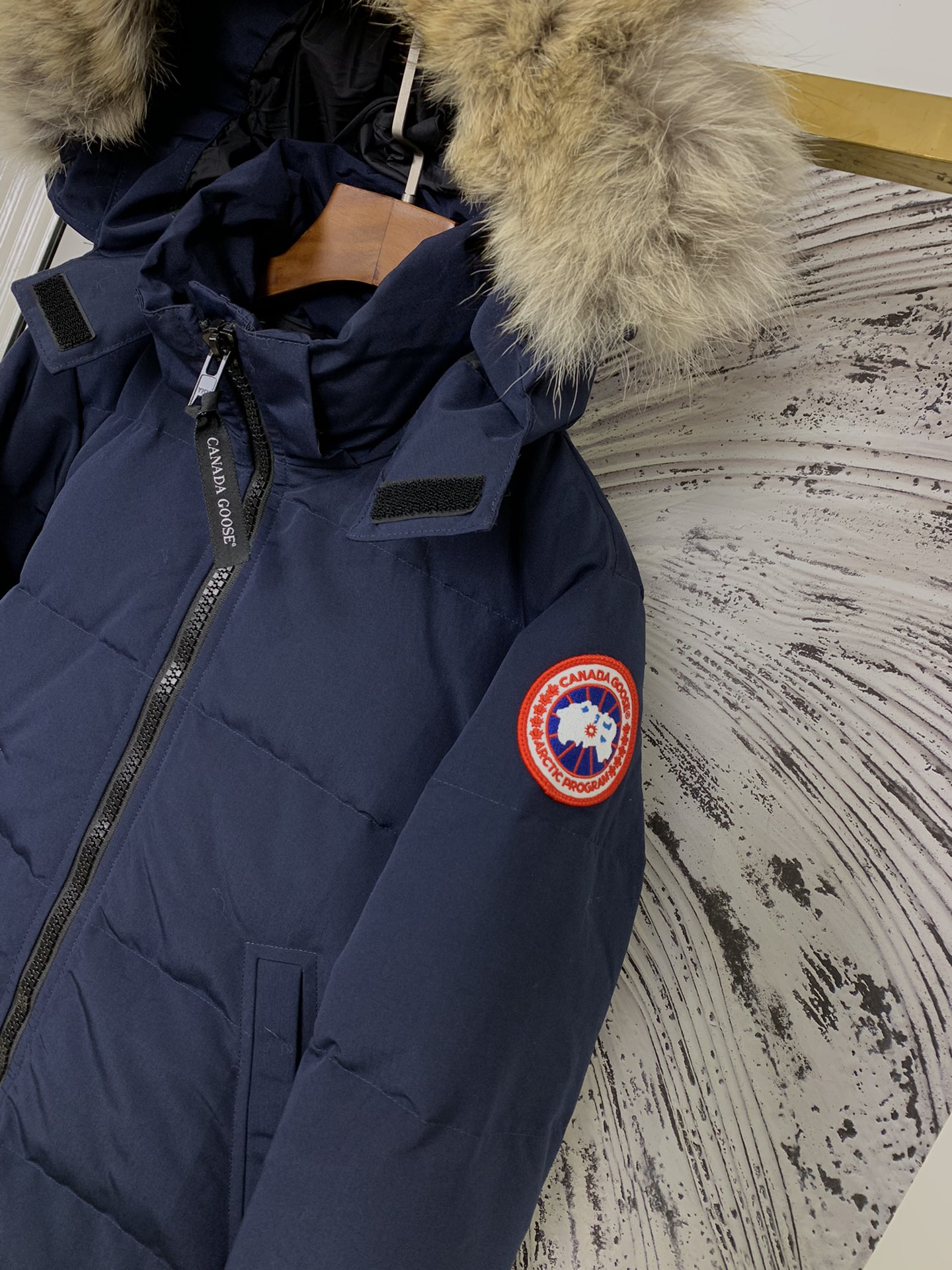 Guangzhou High Version Deep Blue Red Label 22 Women's CANADA GOOSE Mystique Series 3035LA Domestic Highest Version (Unmatched) 6-year store ensures premium quality, comparable to any big goose in the market. Uses 18-thread fabric, more delicate to the touch, better waterproofing, windproofing, and warmth, lighter on the body than before. National standard 90 white duck down, can be quality inspected. Canadian western coyote fur (fur color light gray).