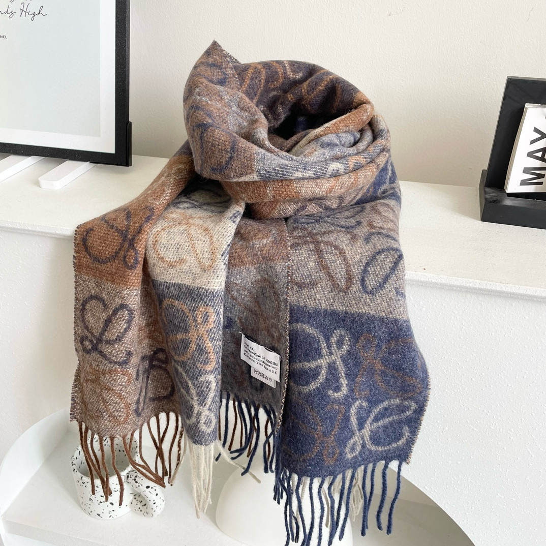 New hit release, couples style, Loewe, exclusive premium product. Luxury lies within the dimensions, high-end quality. Only with super high cashmere quality can it be favored by this brand. This kind of high-quality product is a rare scarf knit in the market, truly super high-end goods. Only such a big brand would possess it. Every color is a favorite, every color is kept. Good items that sell one and there's one less. 100% imported knitted cashmere. Dimensions: 180*32