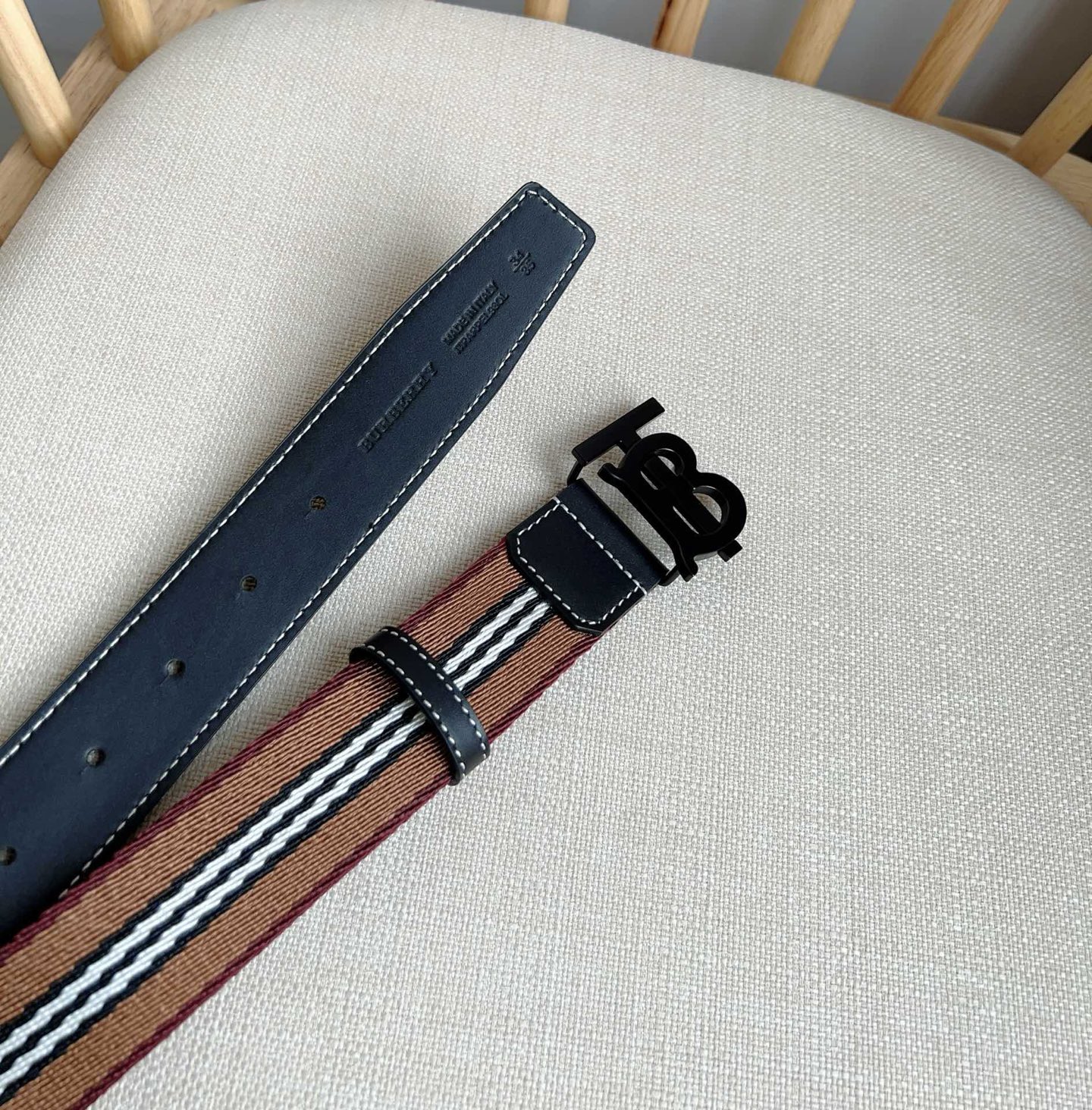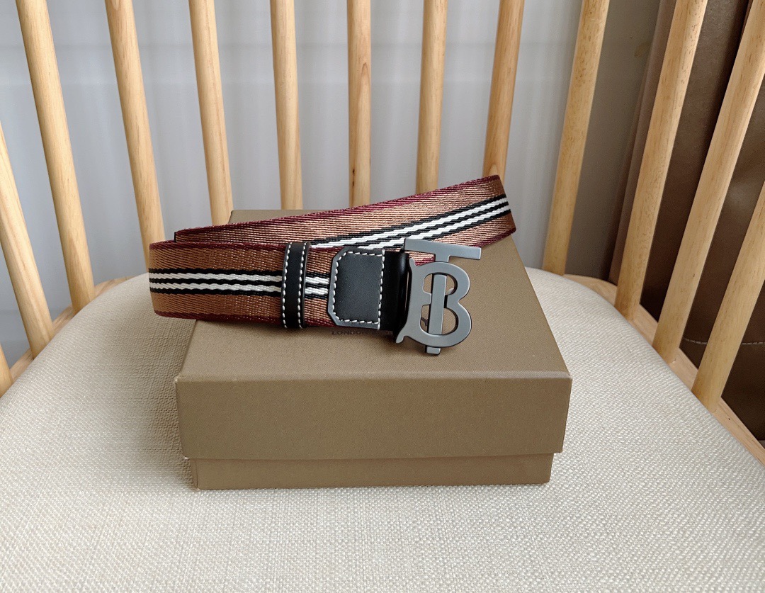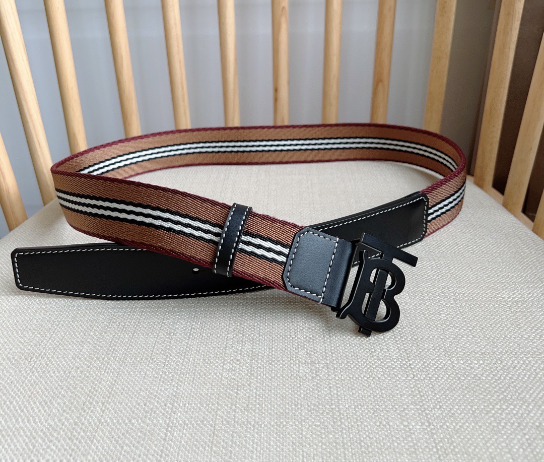 New Burberry boutique synchronization new Italian refined mesh belt decorated with jacquard fine spinning process to create the brand iconic stripe pattern using stitched leather trim width: 3.5cm exquisite elegant simple and generous