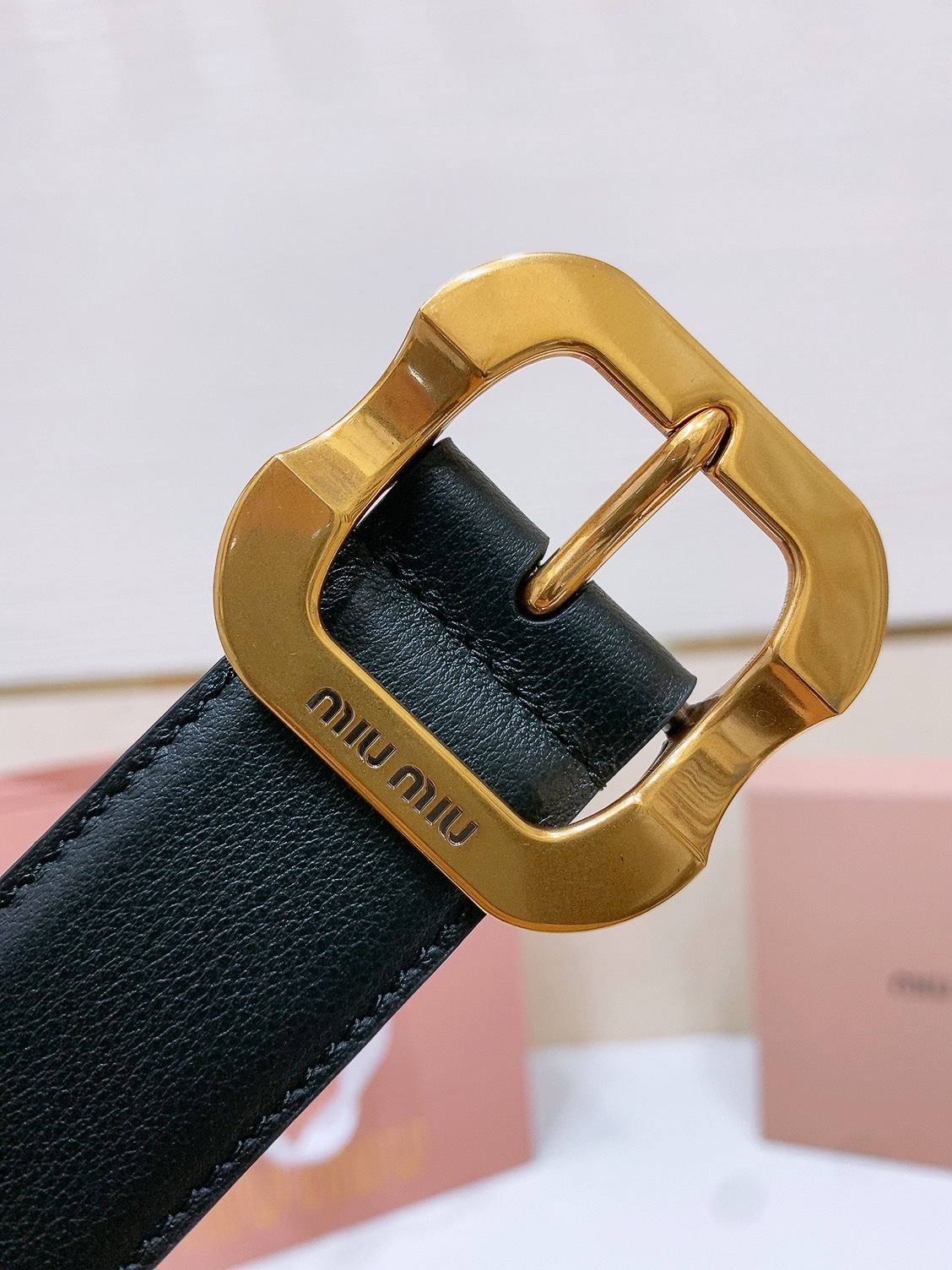 This leather belt is the ideal choice to enhance your chic style taste. The striking engraved metal logo is paired with a square pin buckle, made of soft and delicate calfskin. Very fashionable and versatile, new store style, width: 3.4cm