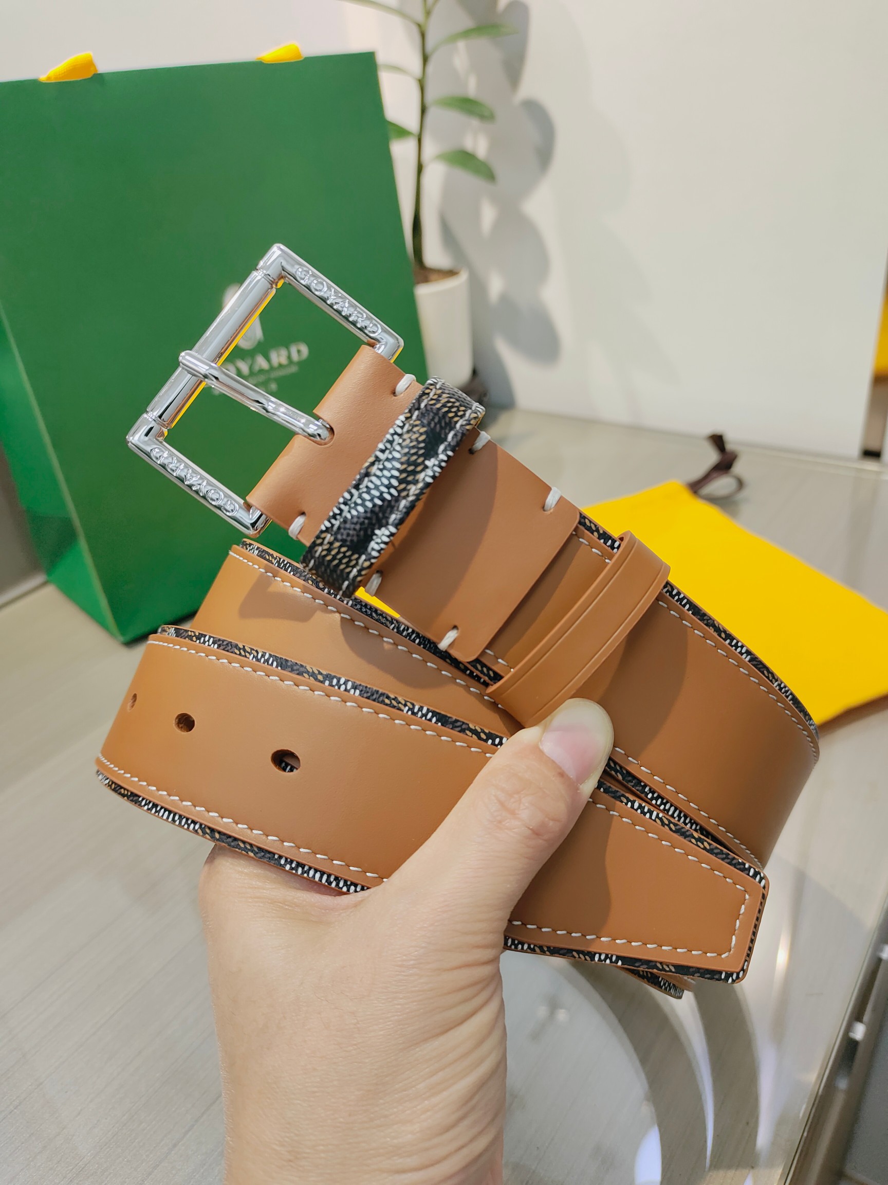Goyard belt originates from the French luxury brand, featuring a simple and understated design style. The belt body is made of iconic canvas paired with imported top-grain cowhide, and the buckle uses a simple, high-quality steel clasp, continuing the brand's low-key luxury. The belt width is 3.8CM, suitable for business, casual, and daily wear.