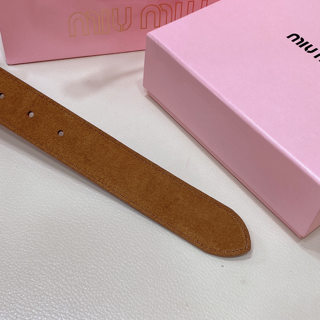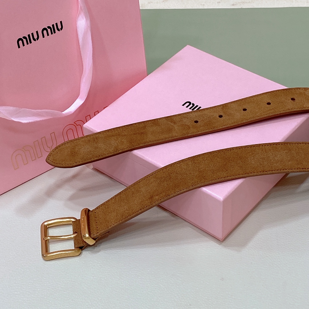 miumiu 25 metal buckle. The belt loop is adorned with a laser-engraved logo. This leather belt features a simple and elegant design, with the belt loop accompanied by the Miu Miu logo. Imported cowhide belt 3.5cm