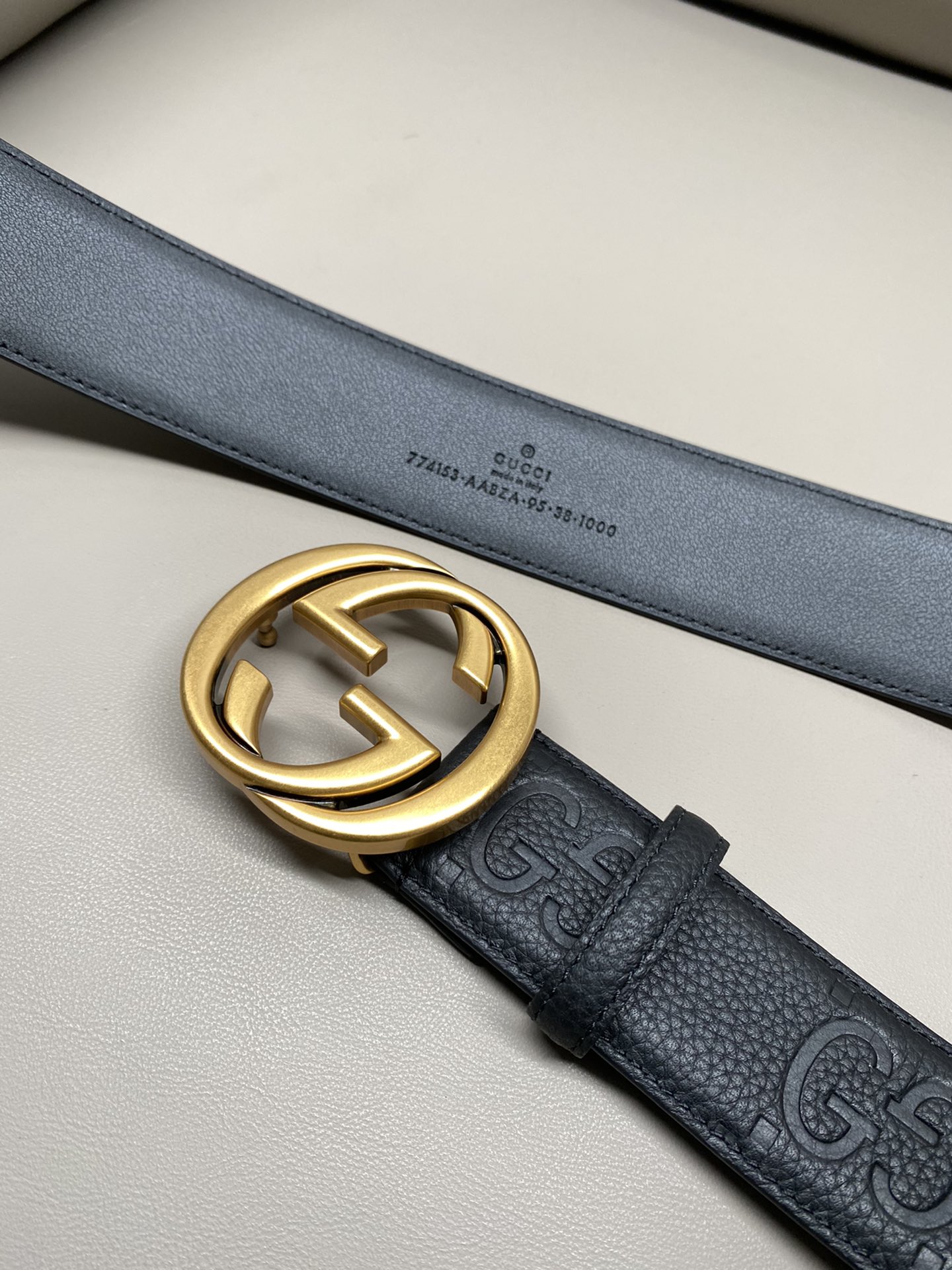 GUCCI official website new 4.0 width interlocking double G with ruthenium tone accessories presents eye-catching, paying tribute to the brand's long heritage. This belt is made of black GG grained leather, showing fashion and sophistication.