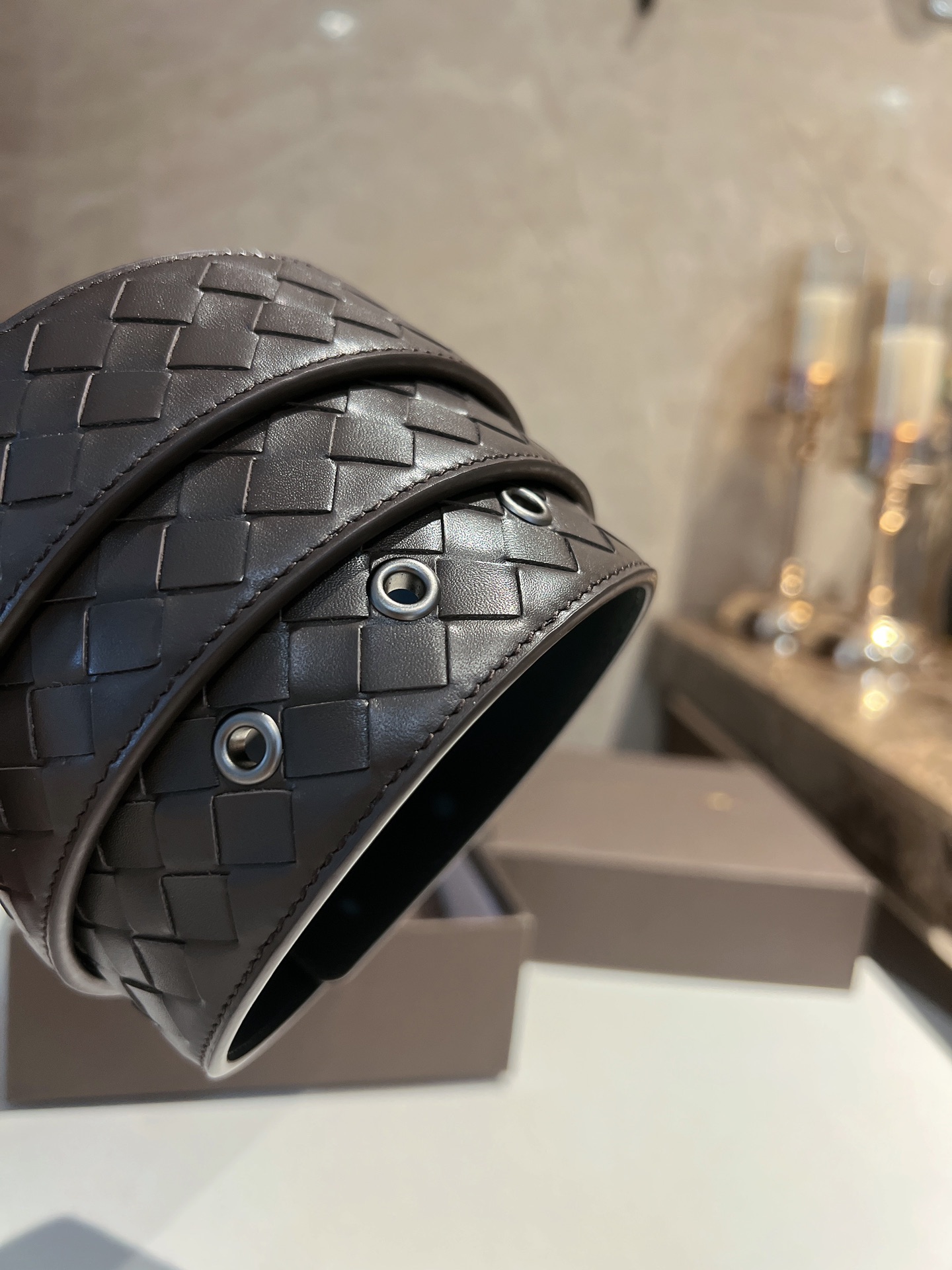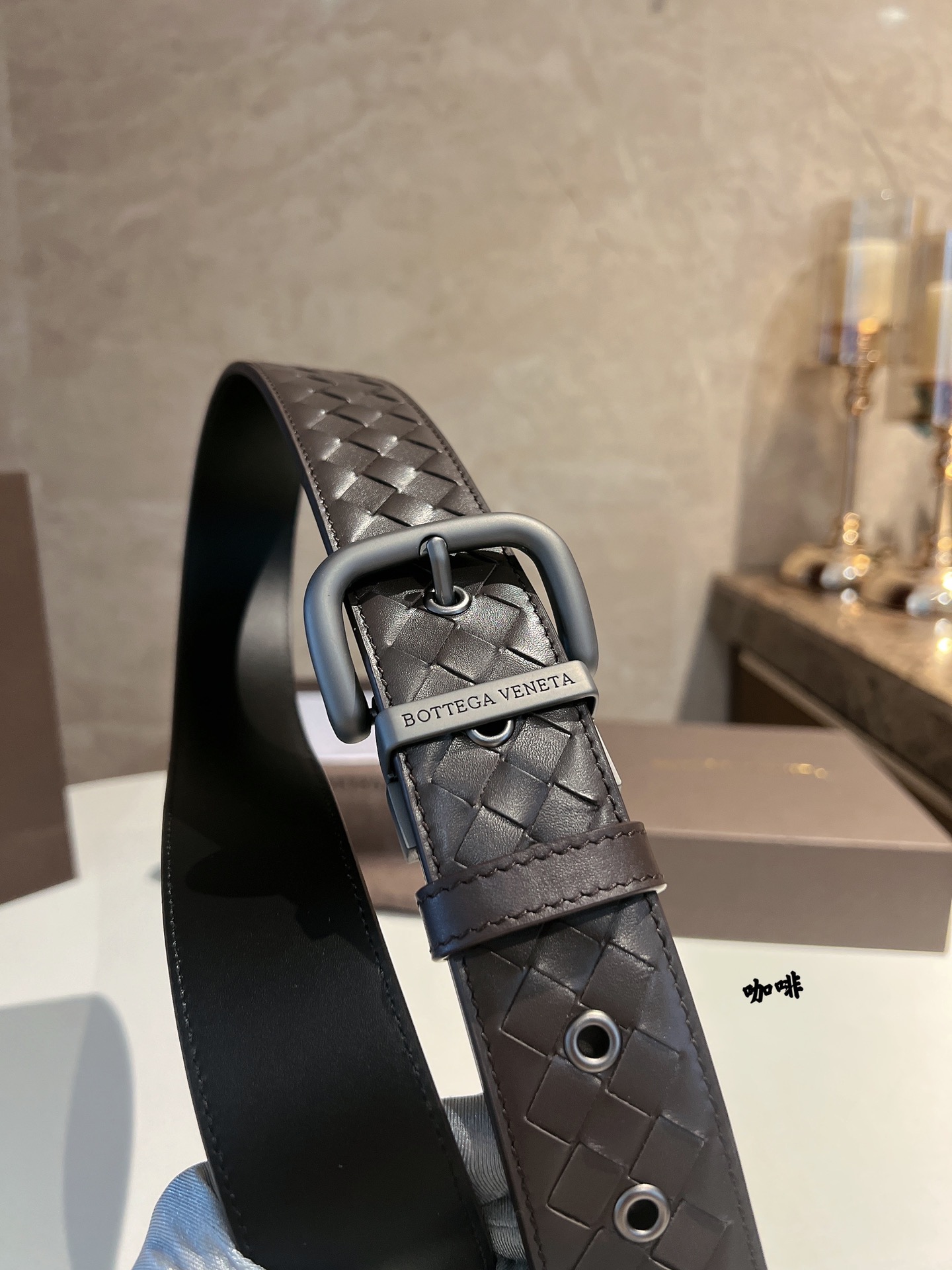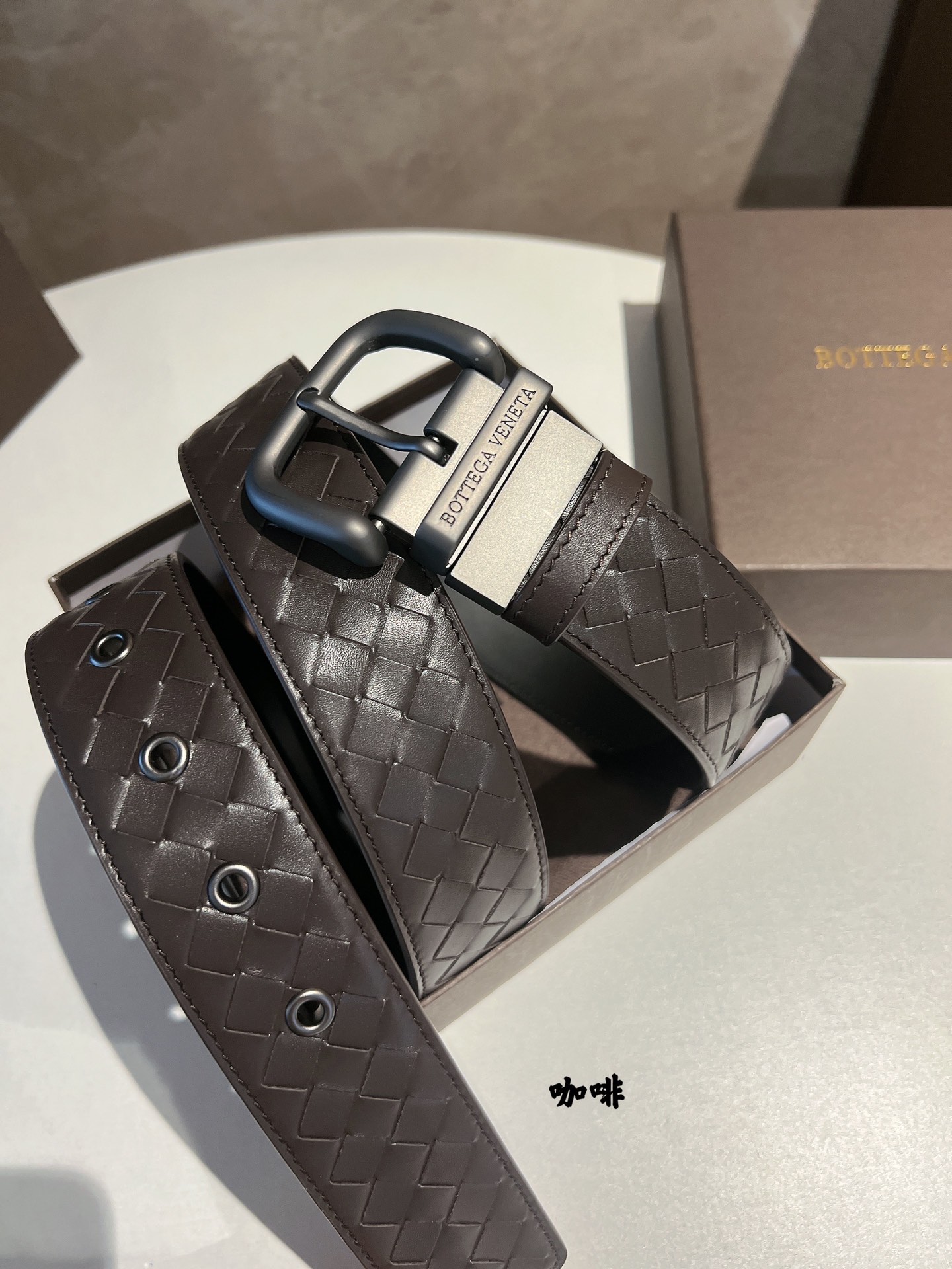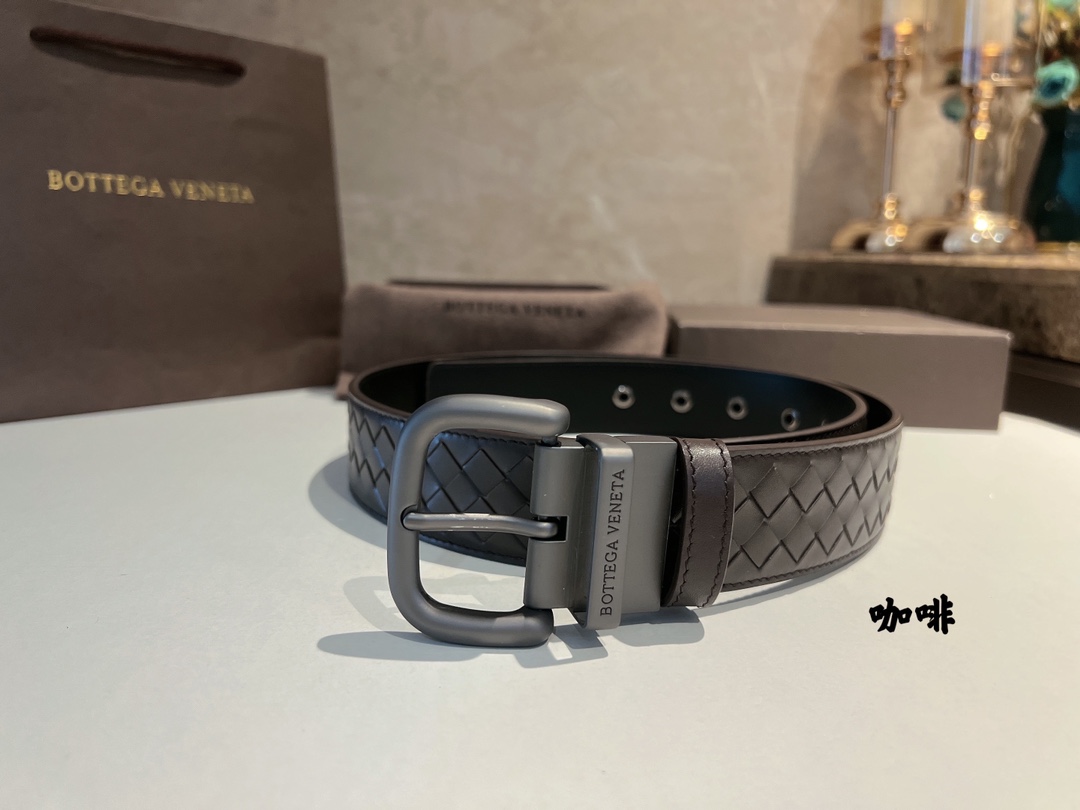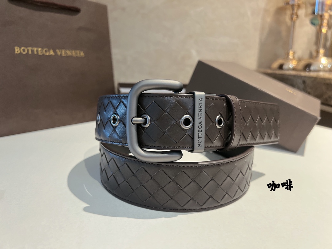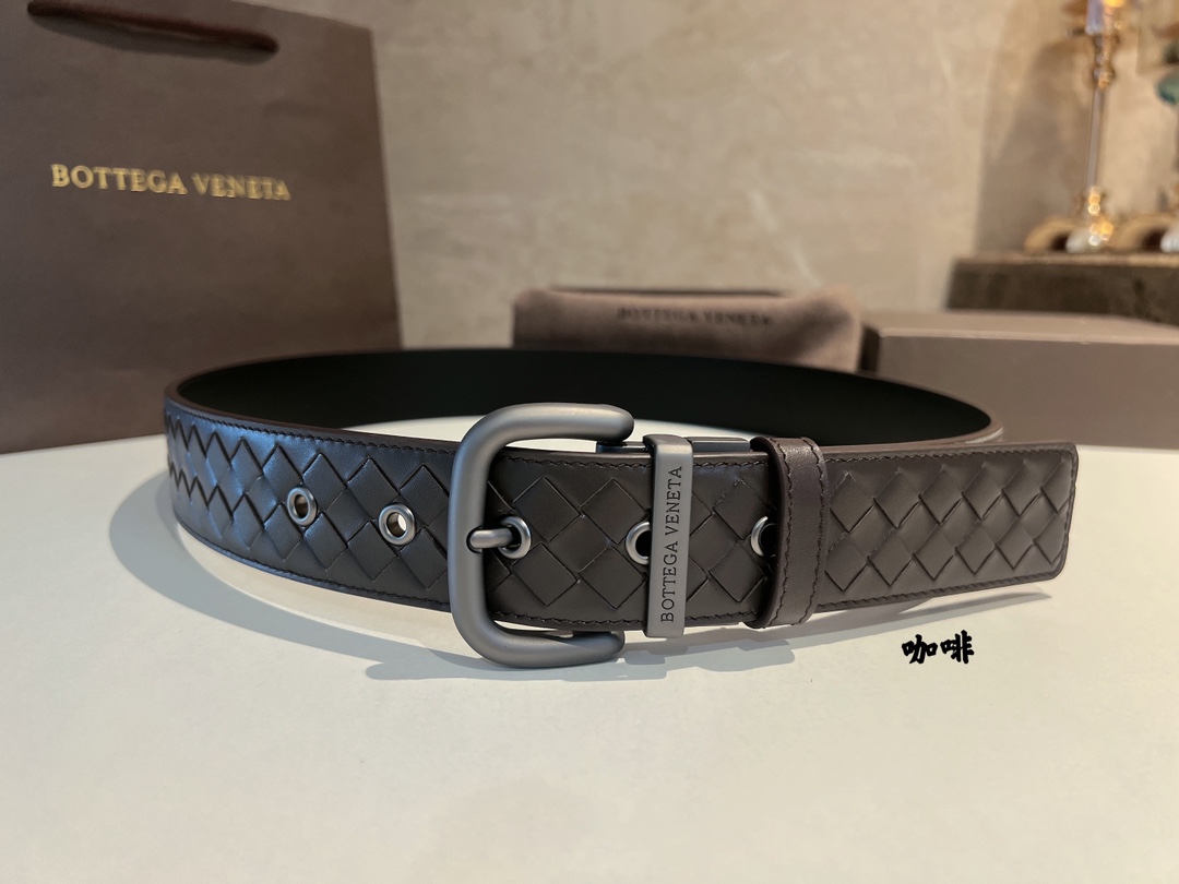 No obvious large logo, don't want to become a walking advertisement, but still want unique sophistication. This cowhide woven model using the "leather weaving technique" will definitely satisfy you. The leather's softness and hardness feel comfortable to the touch, the pin buckle is full of metallic texture, and the waist's delicacy and elegance are enhanced by the addition of this BV belt, allowing you to never stop on the path of understated luxury and substance. 4cm.