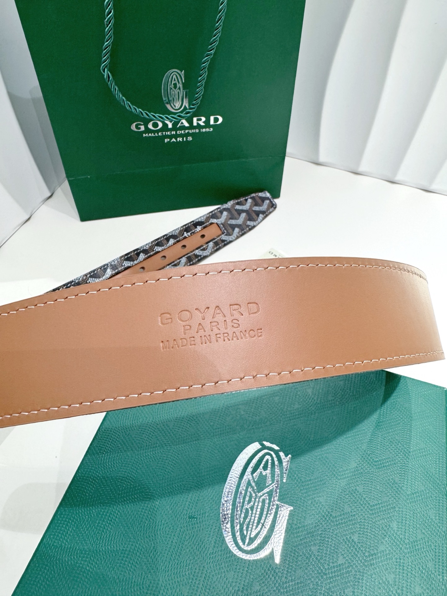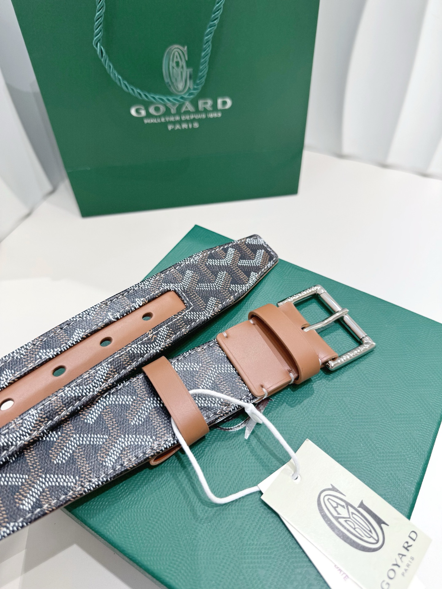 Goyard belt is meticulously crafted using imported classic leather from Italy. It features an exquisite selected luxury pin buckle. The brand is known for its unique handmade classic Y-shaped pattern, emphasizing traditional craftsmanship and high-quality materials. The style is simple and elegant, full of French charm. Model GY001 Width: 4cm
