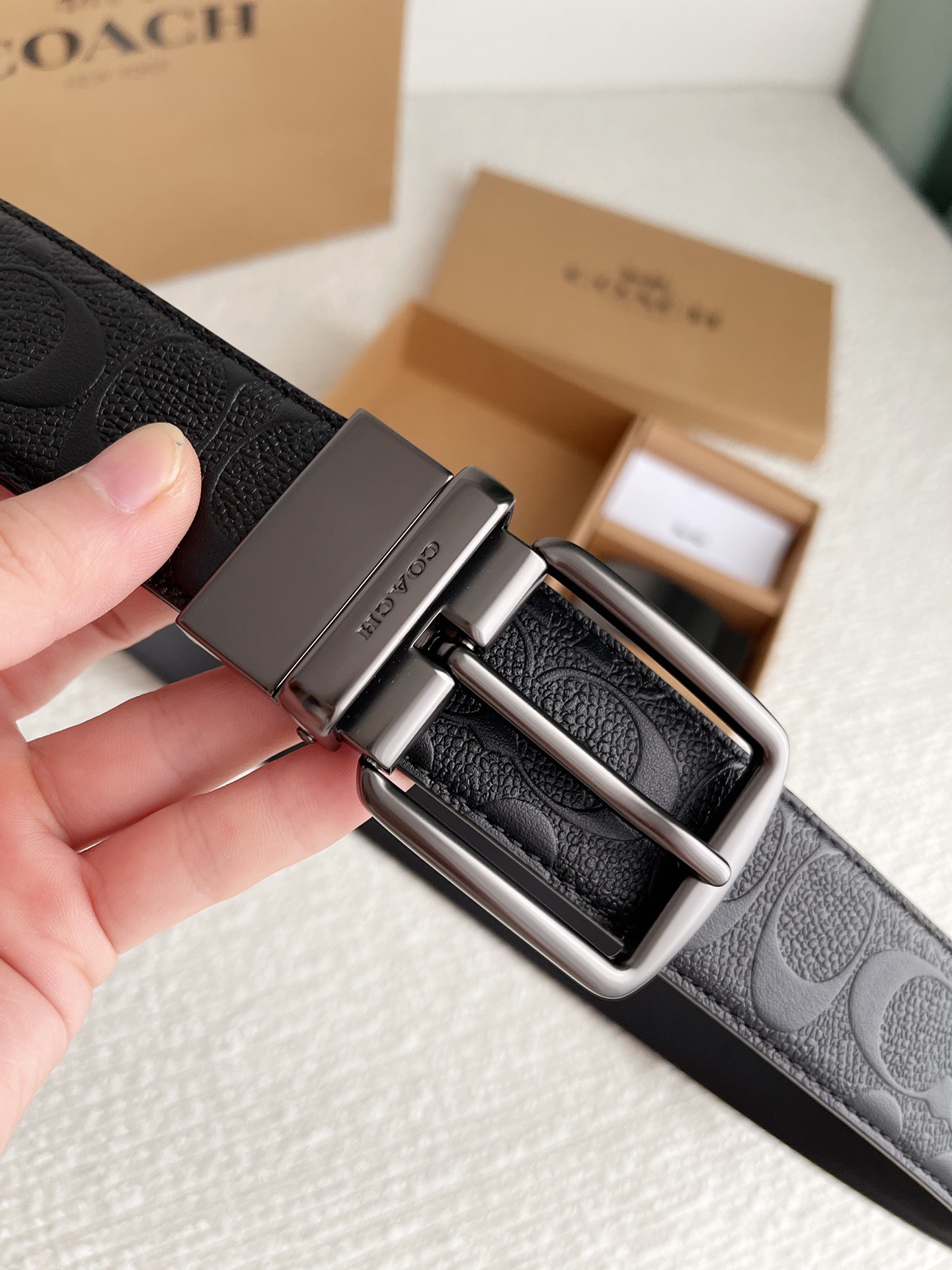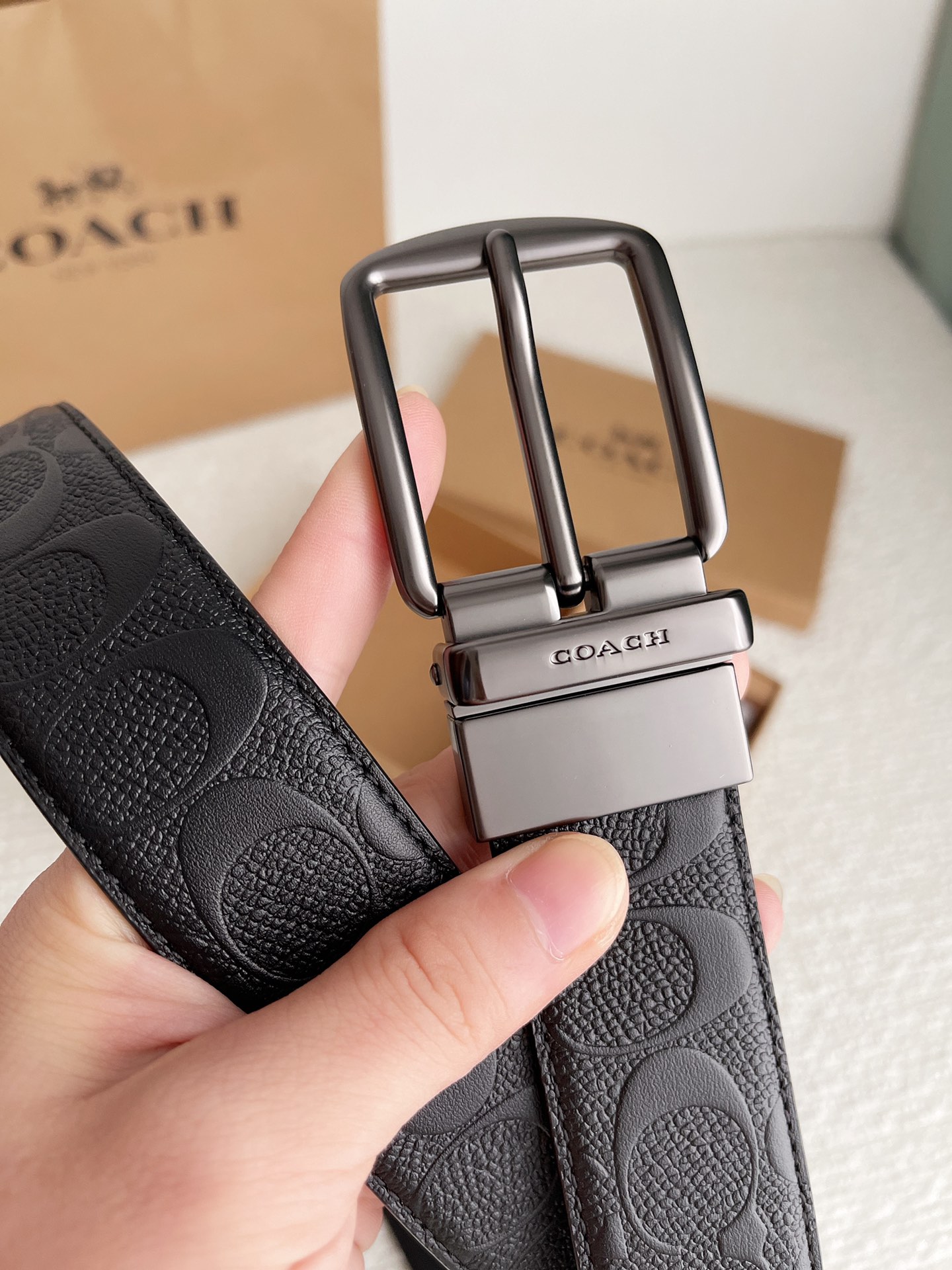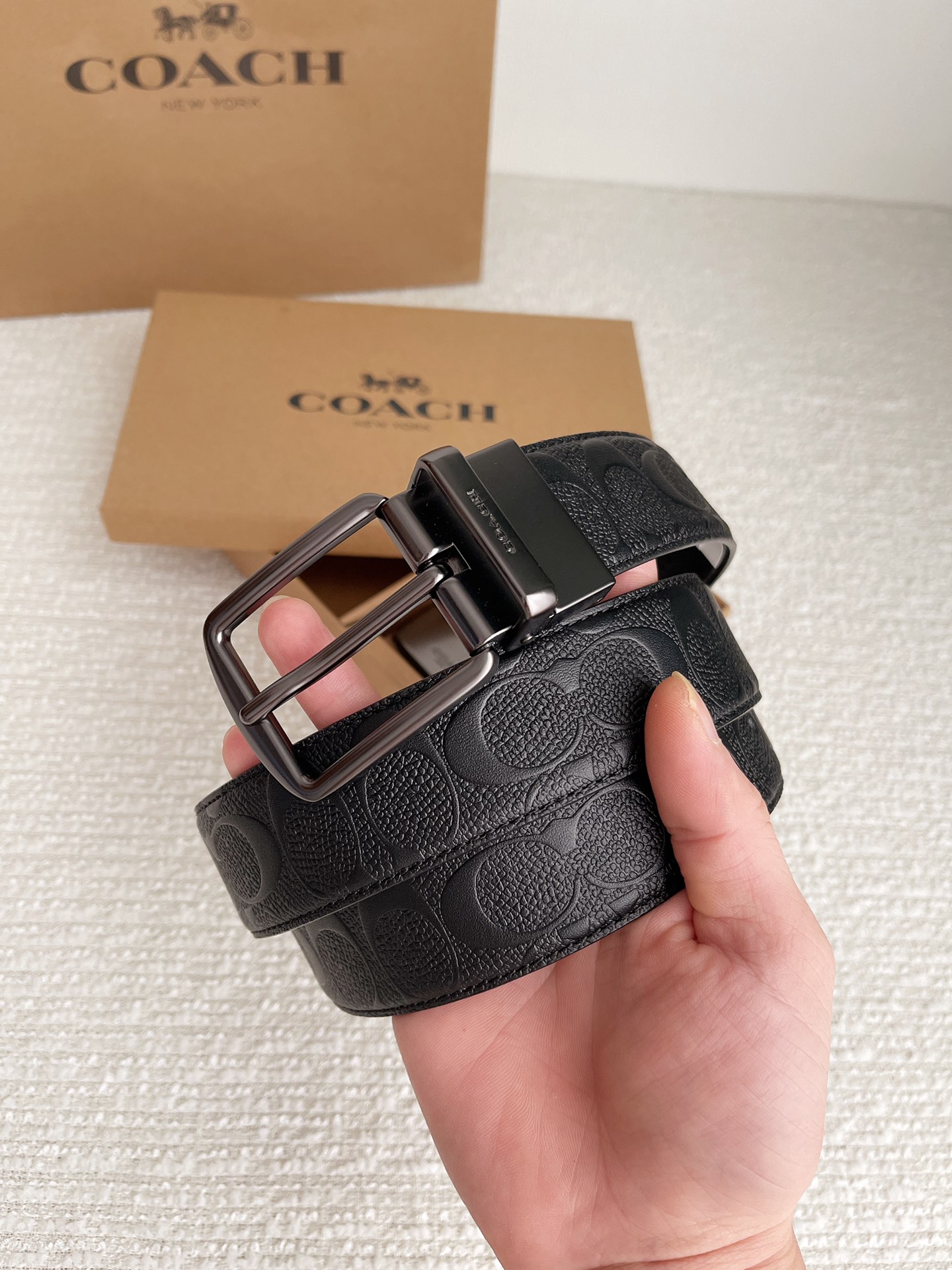 COACH COACH original series 3.7cm belt body counter version mold making German imported locomotive thread exquisite craftsmanship overseas purchasing hottest series with double hardware buckle suitable for both formal and casual wear adhering to unique design style leading fashion high-end quality authentic engraving replication high-end customers must-have item