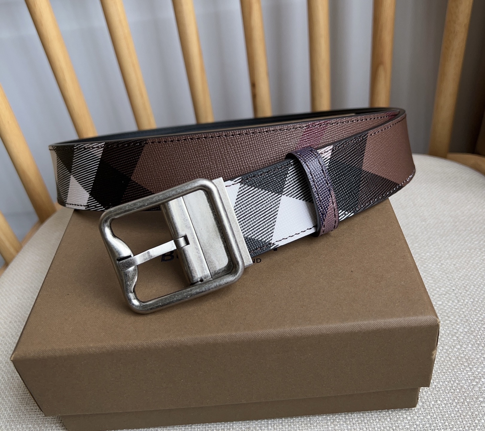 New Burberry reversible Italian belt, 3.5cm wide, elegant and simple design.