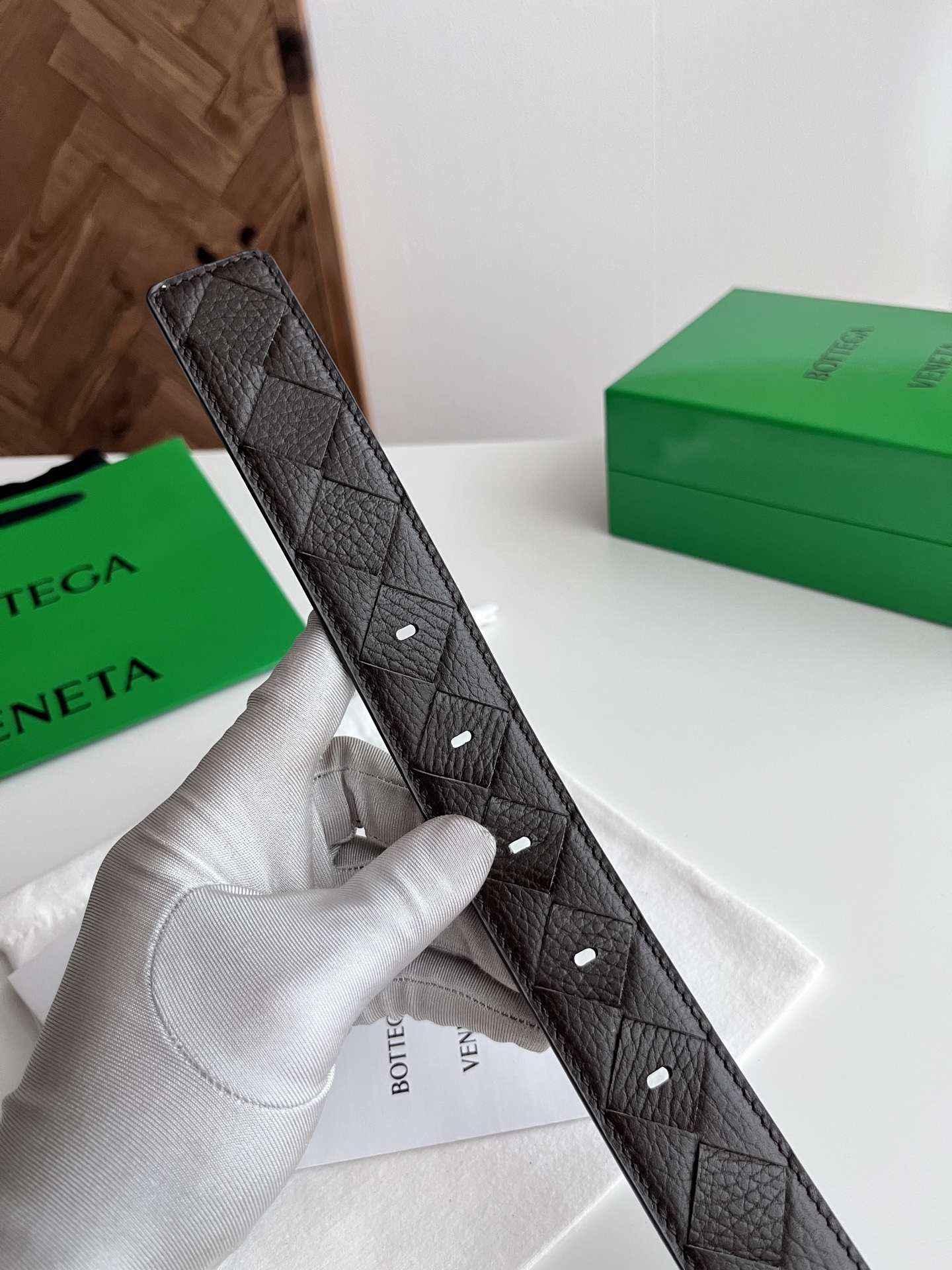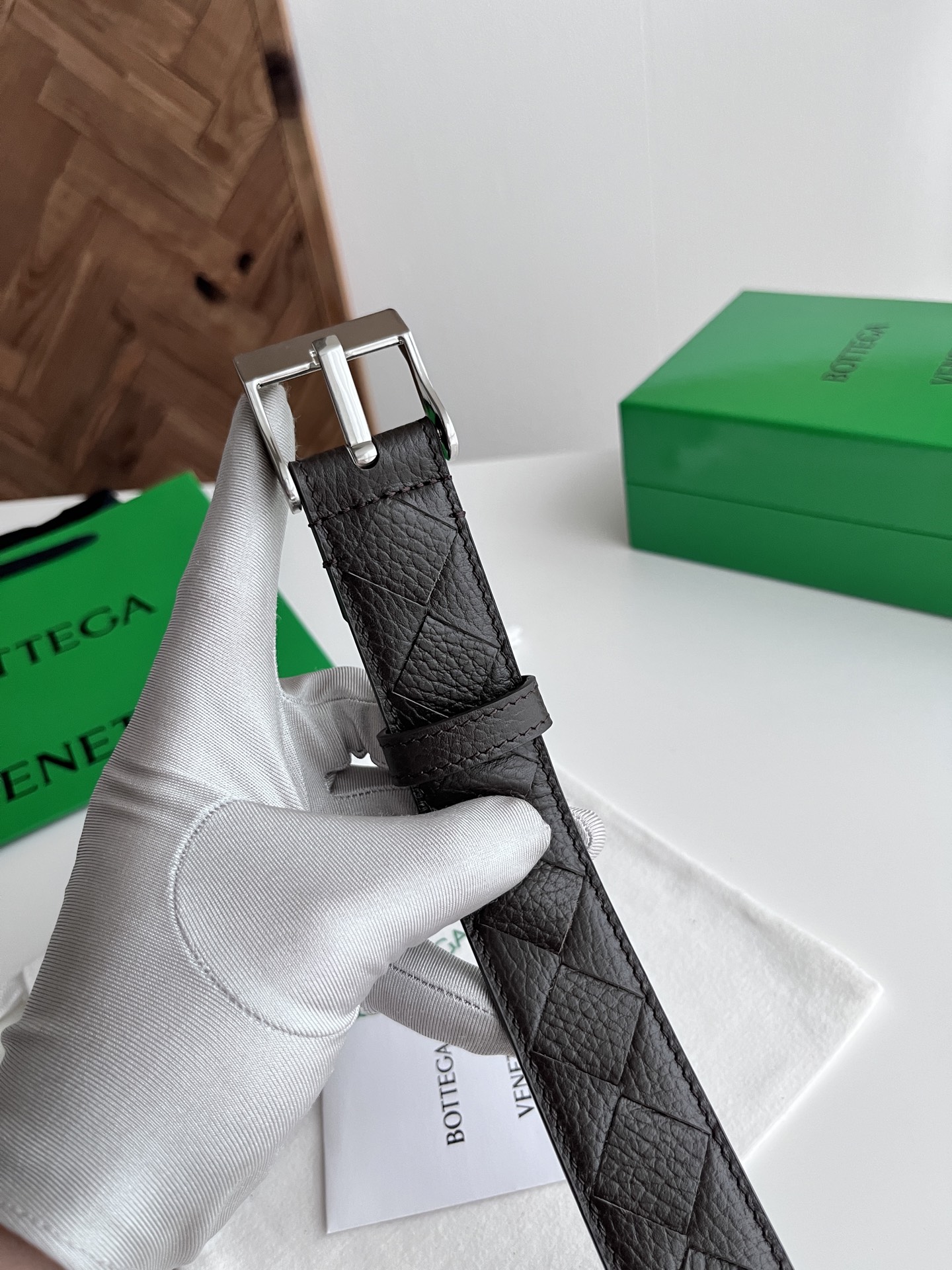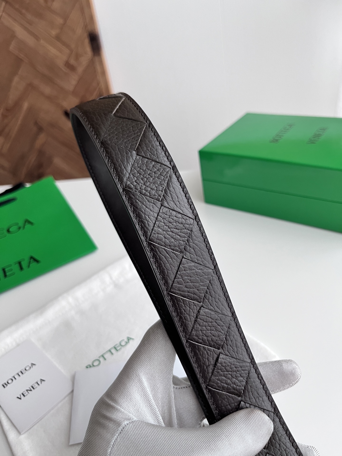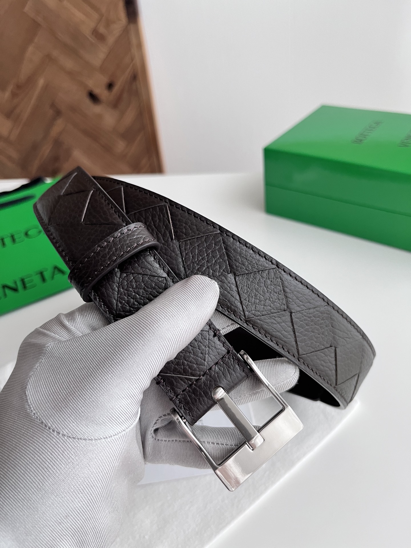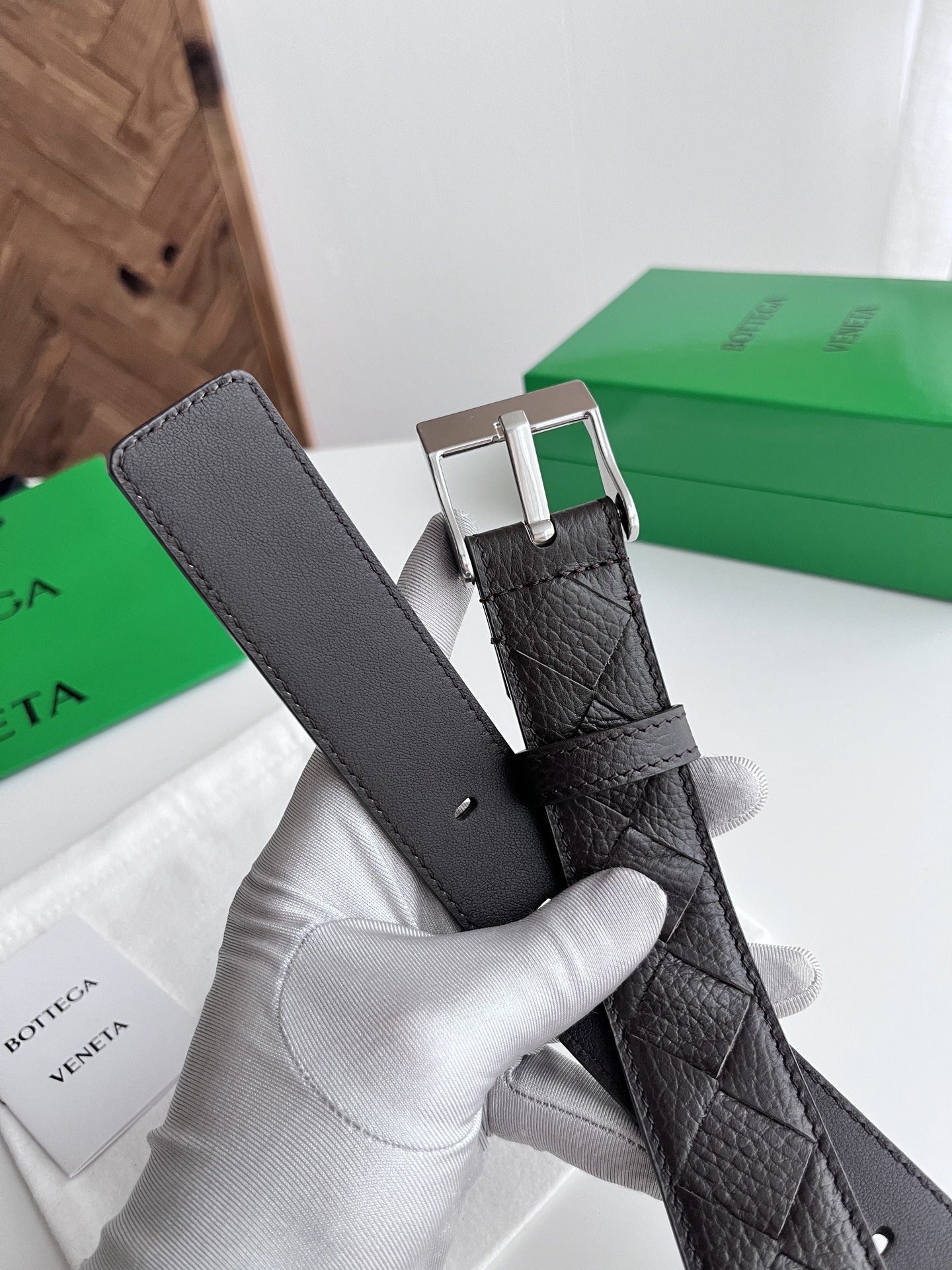 BV 2025 new men's belt, fully handcrafted large intreccio weave Italian pebbled calfskin, featuring a new buckle design with vacuum gunmetal pin buckle, belt width 3.5cm