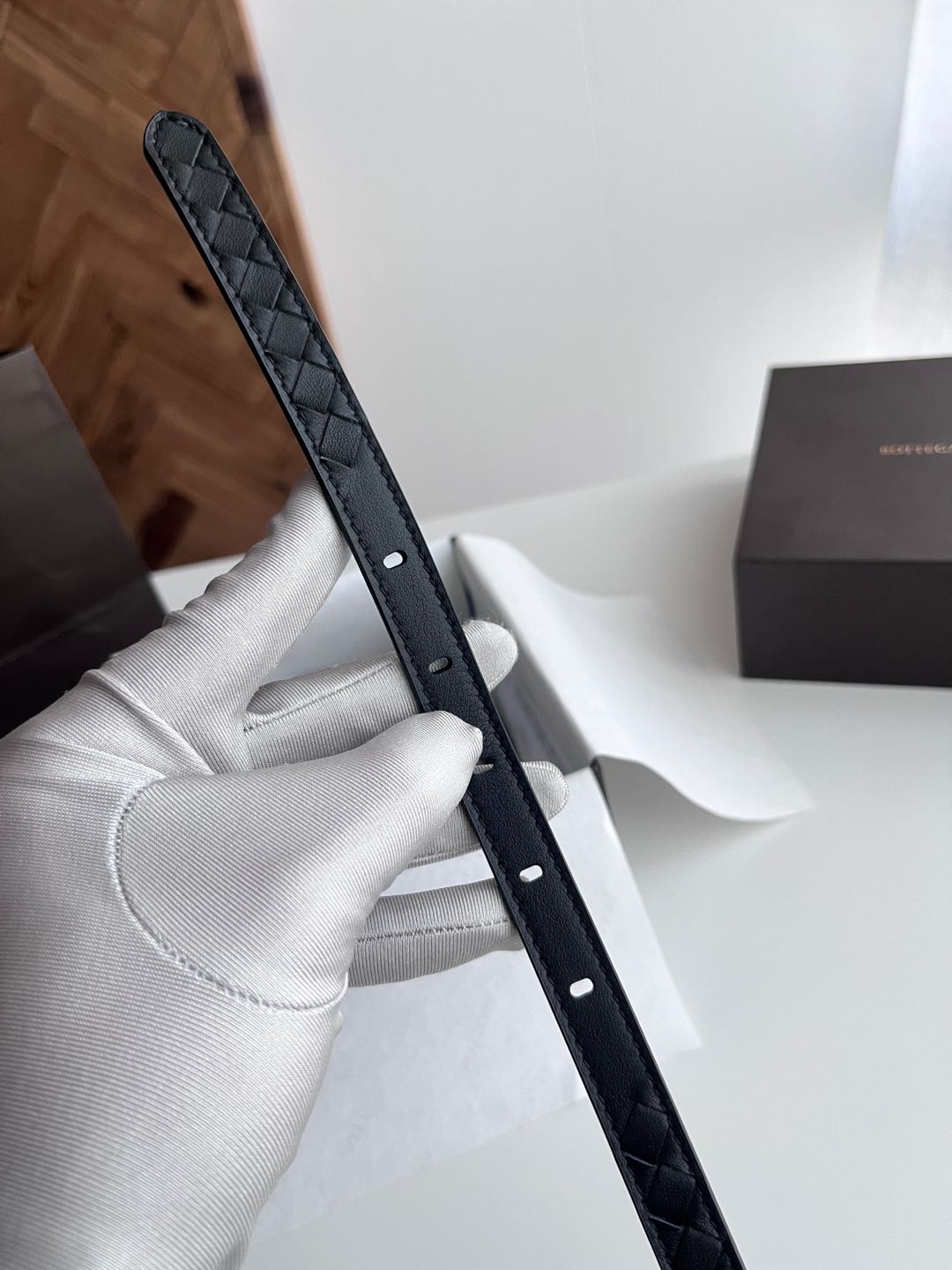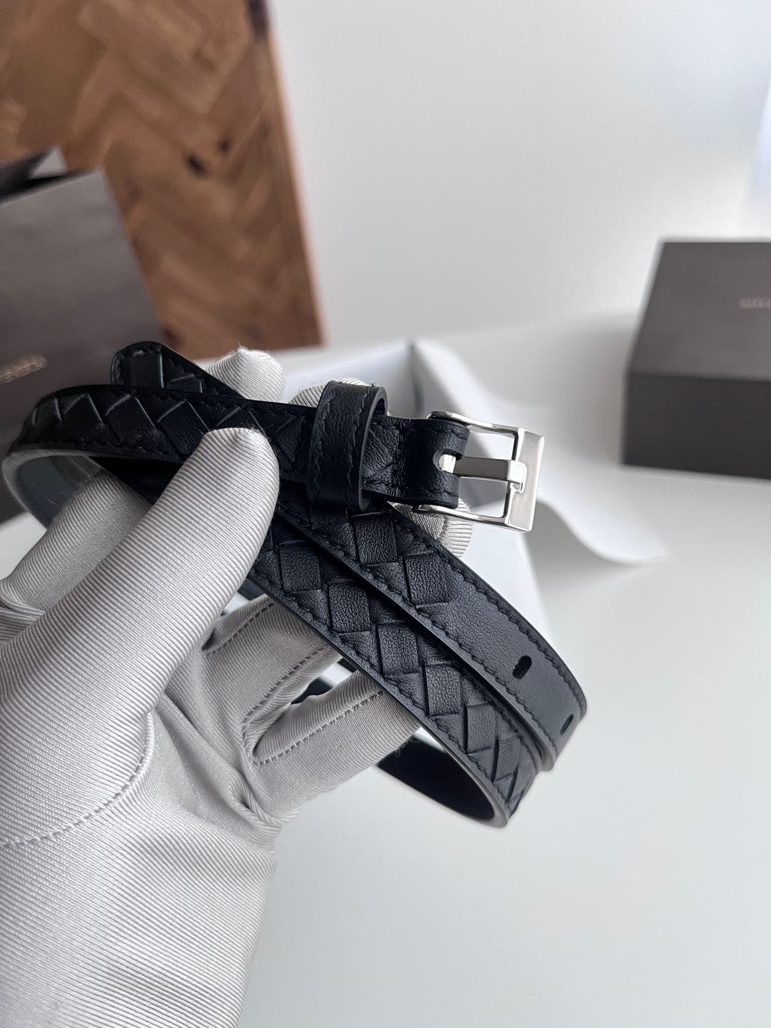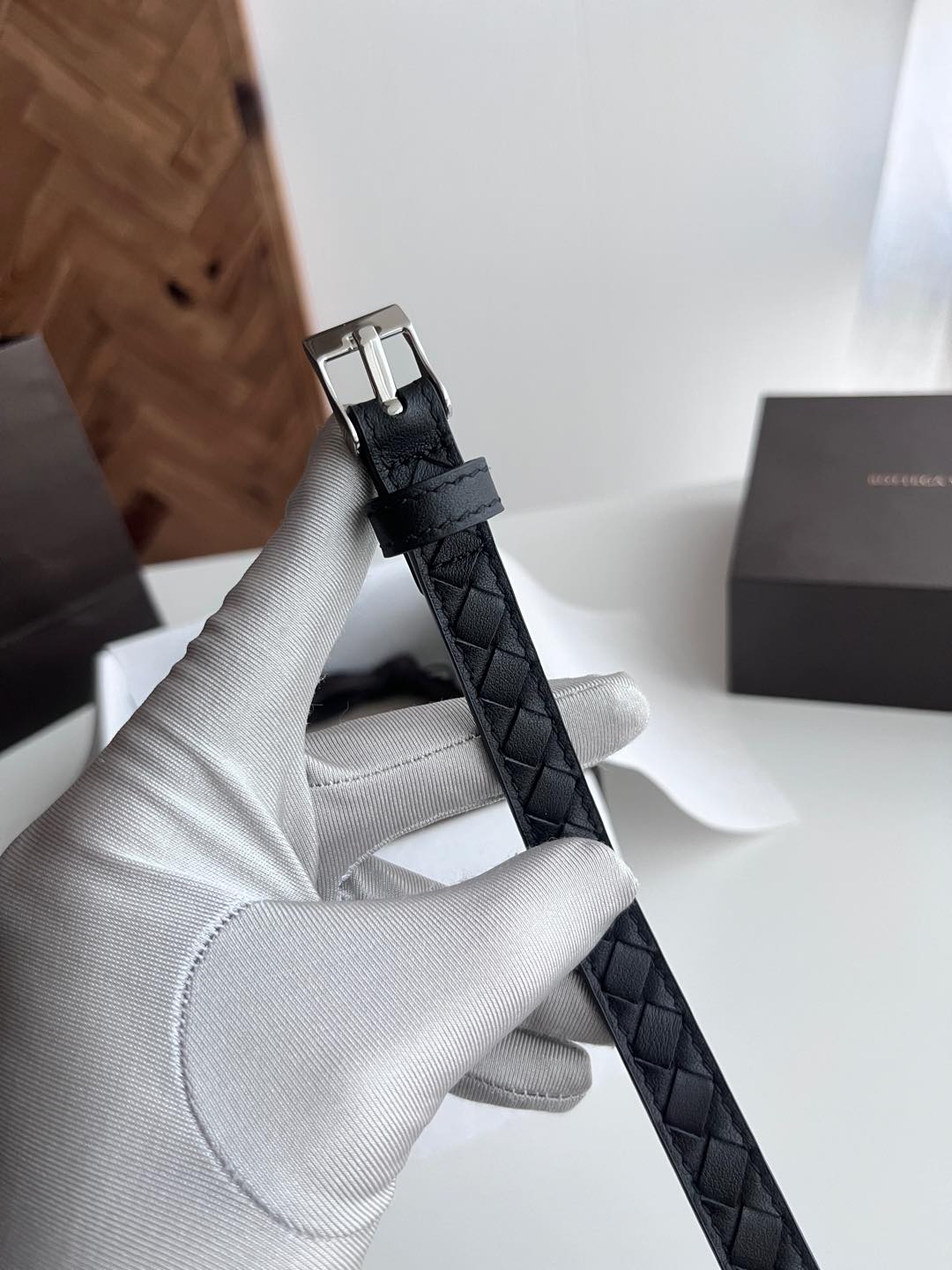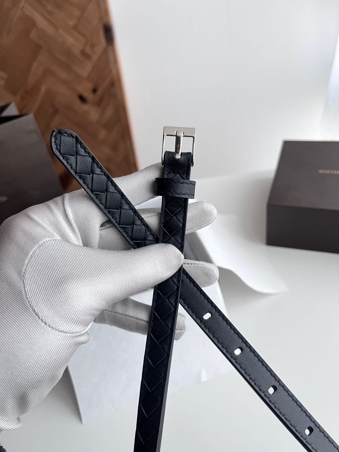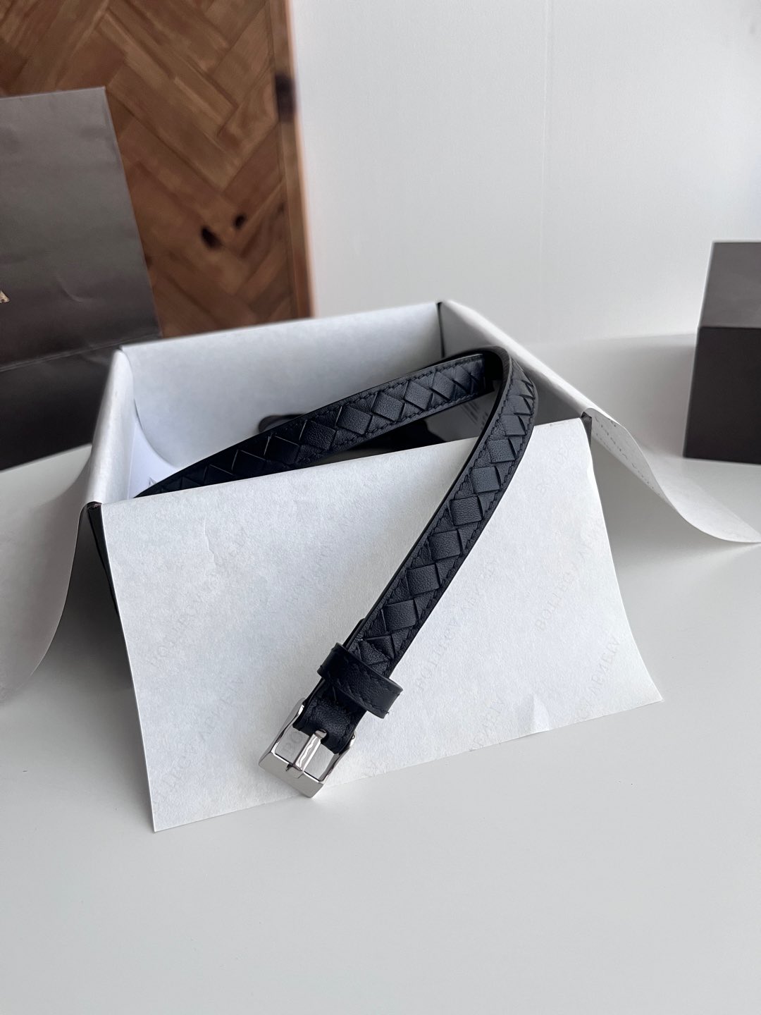 Bv latest women's narrow woven belt pure handwoven intreccio double-sided Italian calfskin with buckle design slightly vintage buckle width 15MM color: black silver