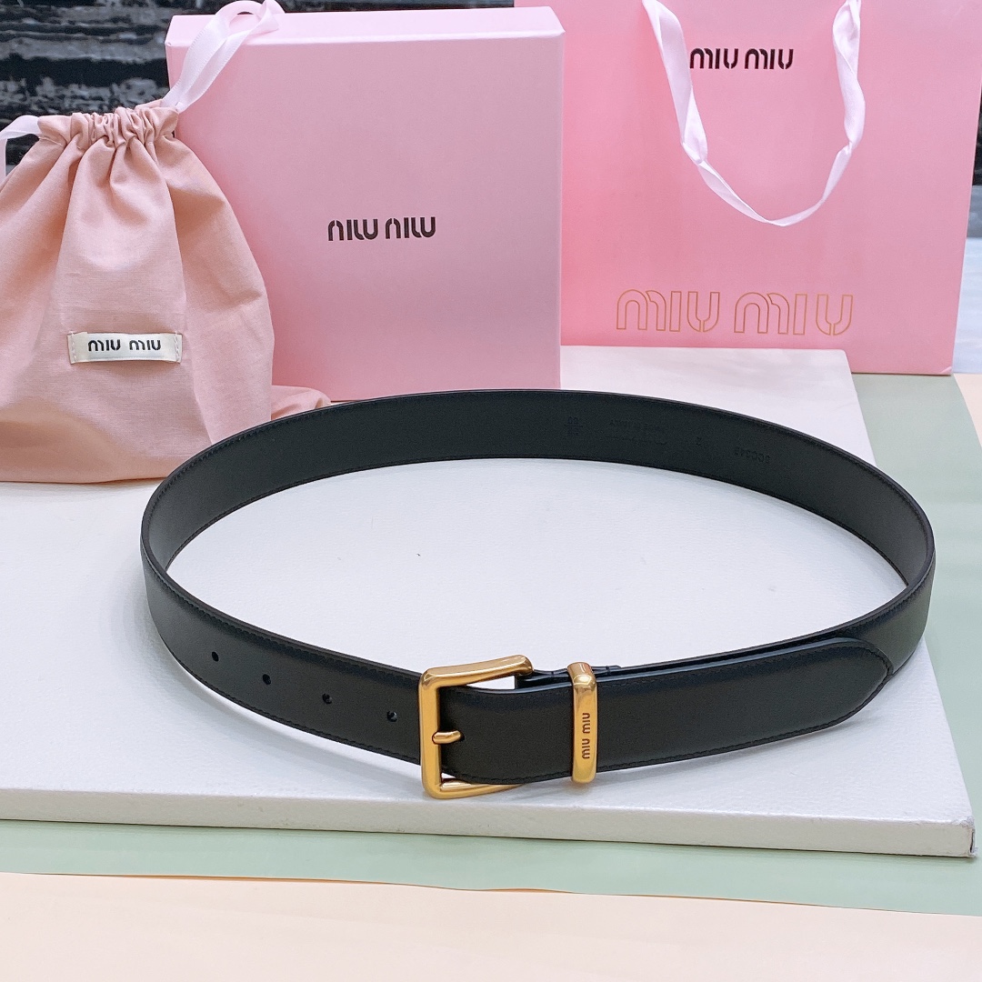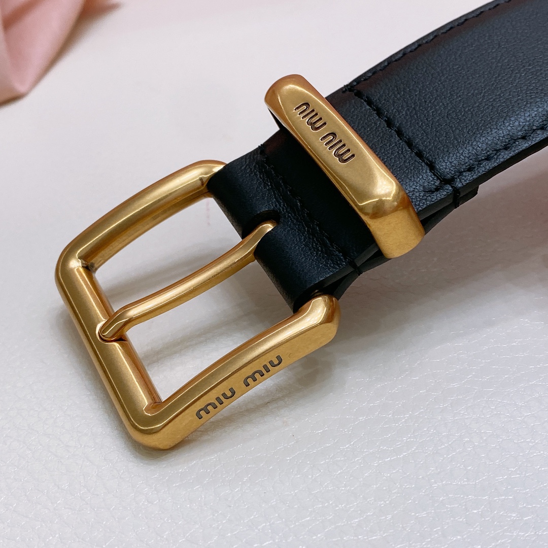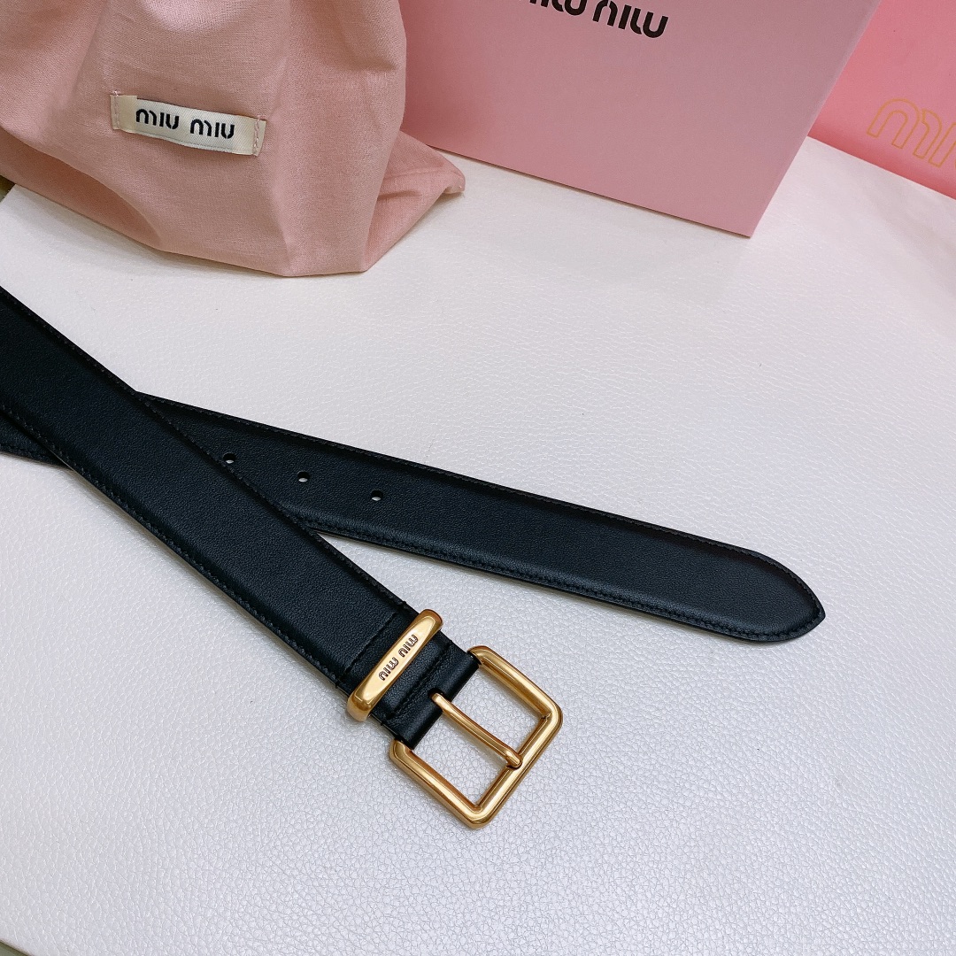miumiu 23 metal buckle. The belt loop is adorned with a laser-engraved logo. This leather belt features a simple and elegant design, with the belt loop bearing the Miu Miu logo. Imported cowhide belt 3.5cm