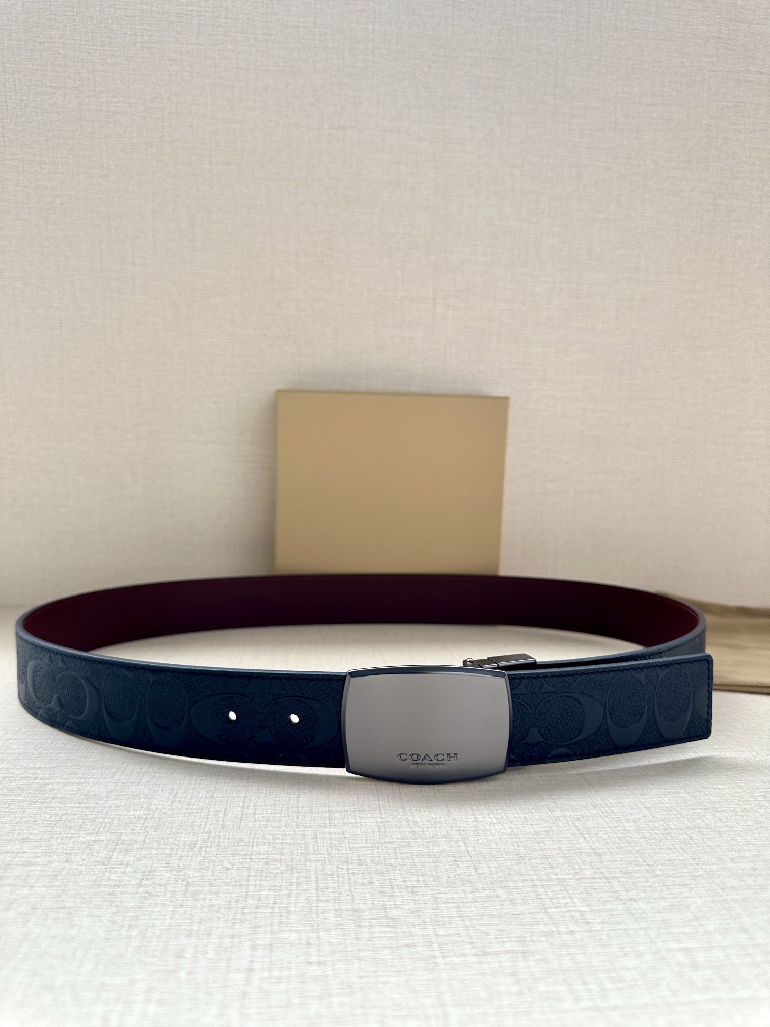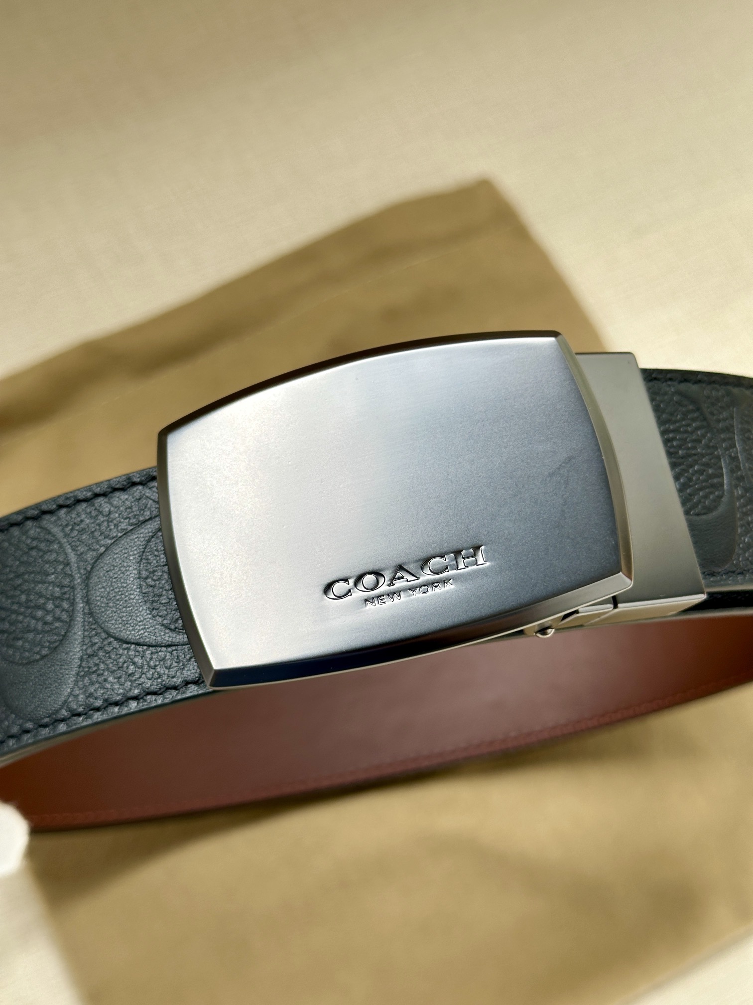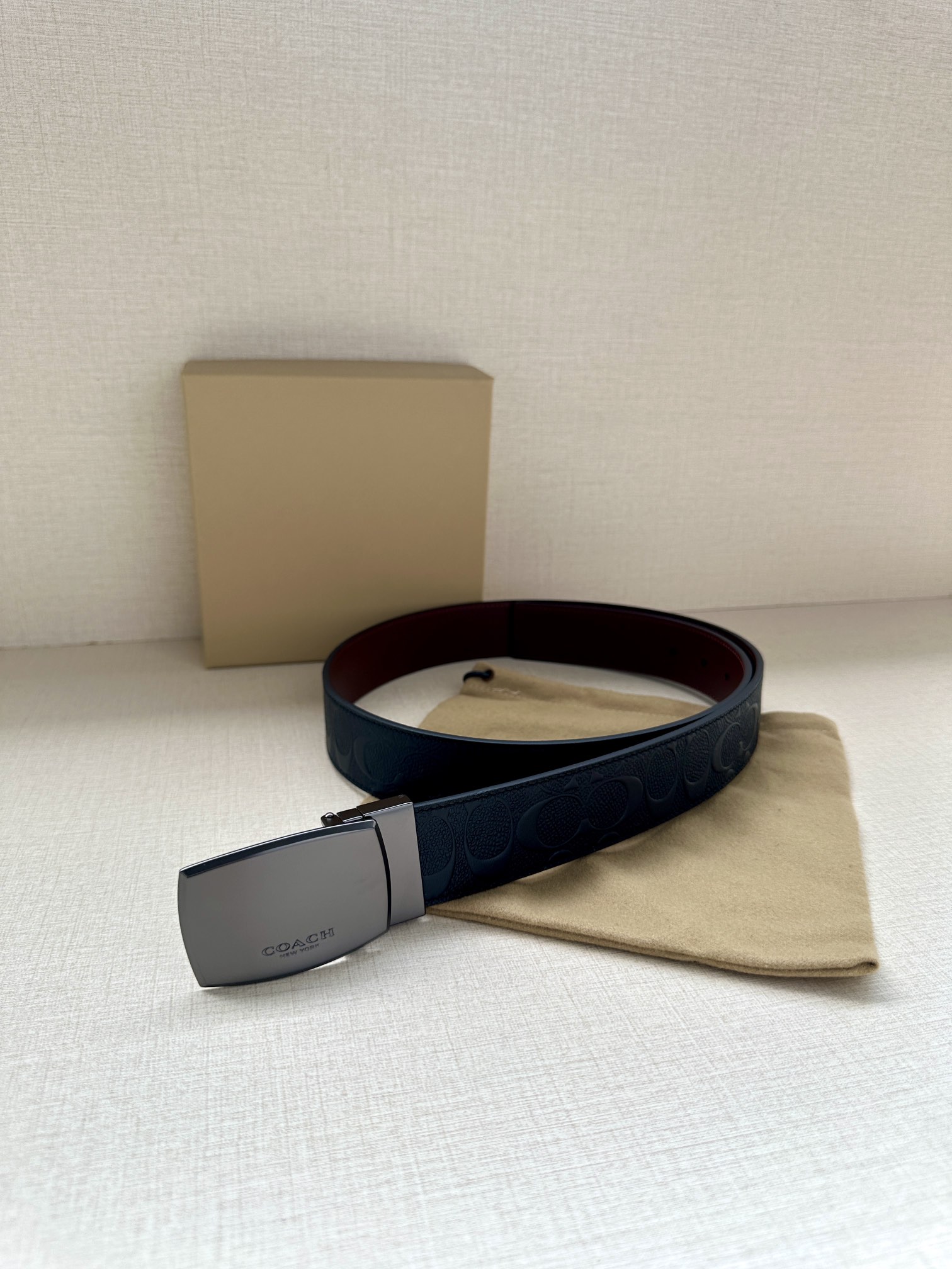Width 3.8cm COACH This two-sided reversible belt features a classic patterned logo material on one side and refined leather material on the other, equipped with a signature buckle that combines two styles into one. With simple instructions, it can be cut with scissors for a perfect fit.