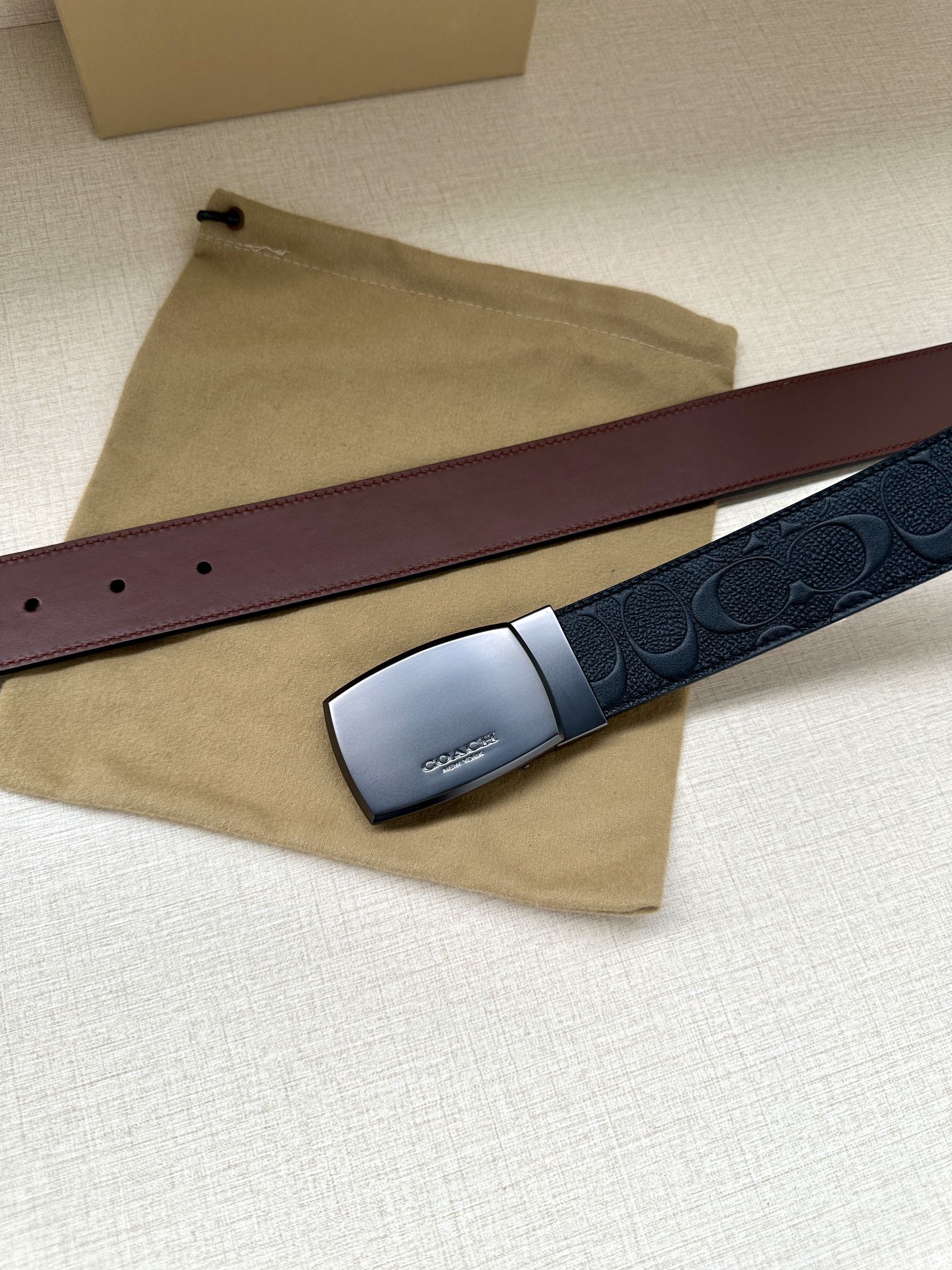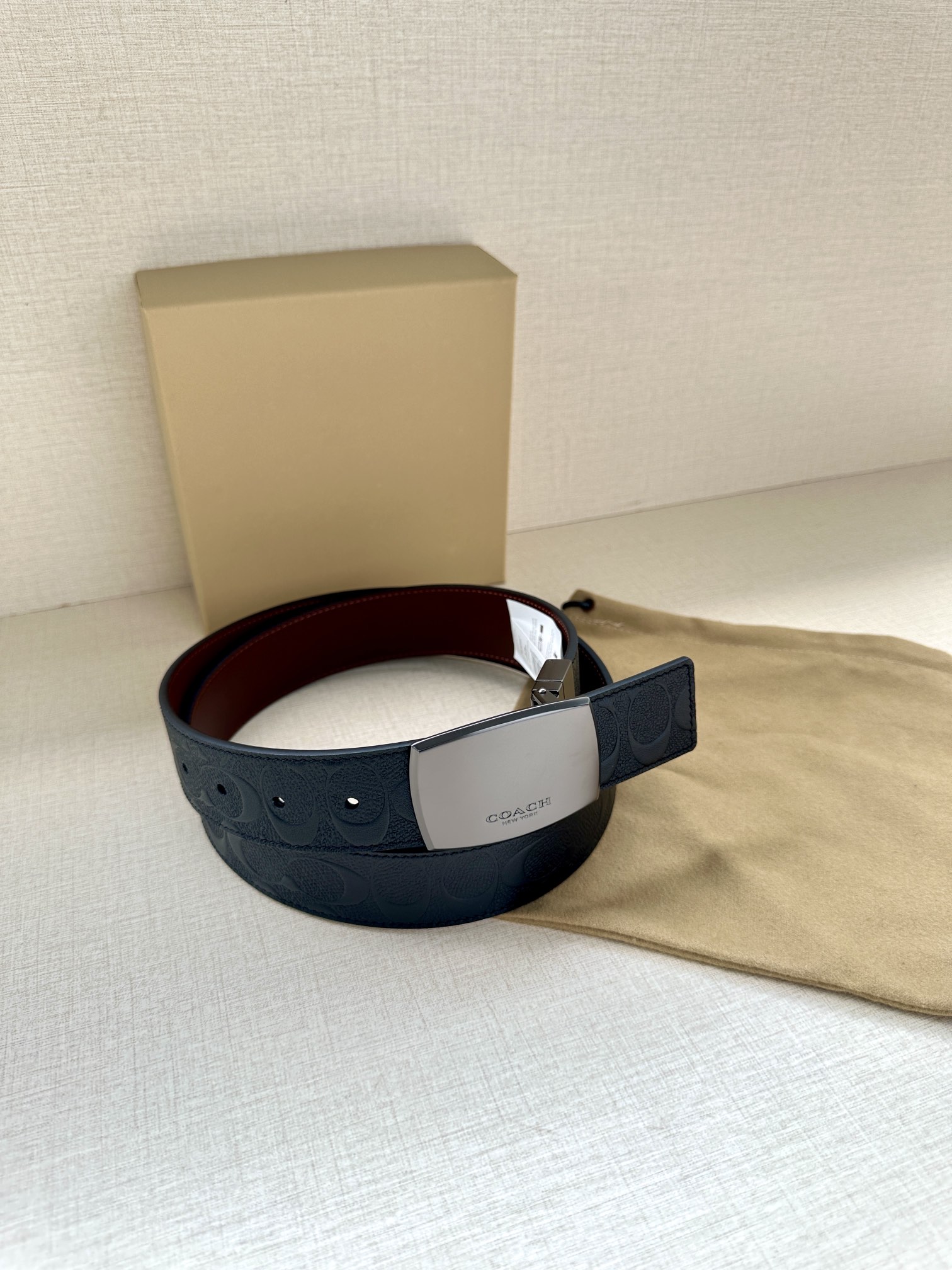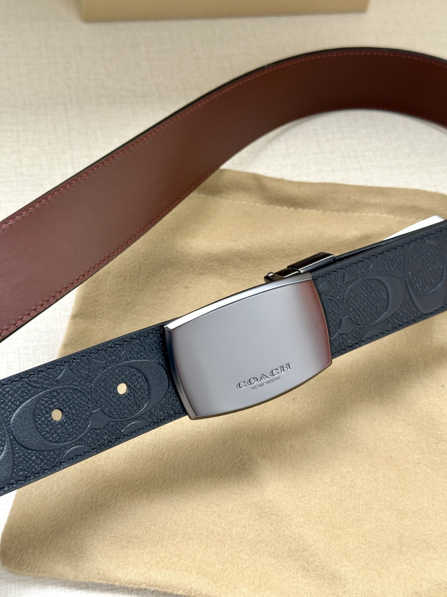 Width 3.8cm COACH This two-sided reversible belt features a classic patterned logo material on one side and refined leather material on the other, equipped with a signature buckle that combines two styles into one. With simple instructions, it can be cut with scissors for a perfect fit.