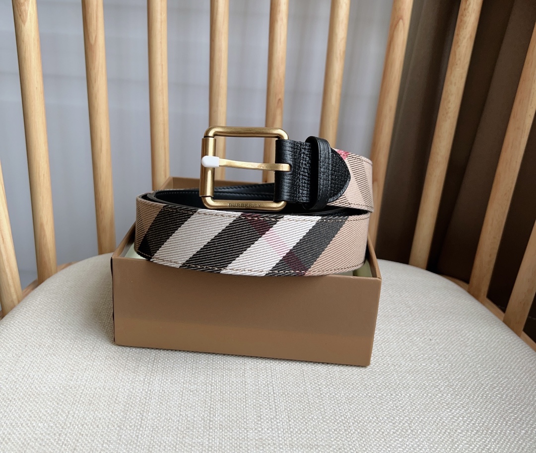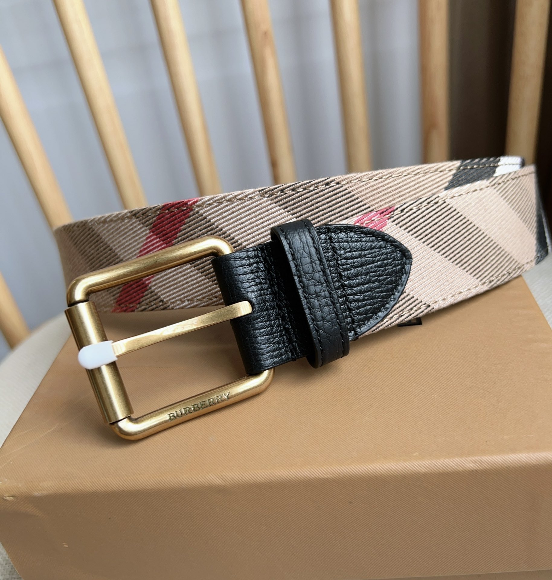 Burberry Burberry counter new arrivals Italian crafted belt One side is made of House check cotton twill fabric, the other side is made of solid color smooth leather. Width: 3.5cm Exquisite and elegant, simple and generous