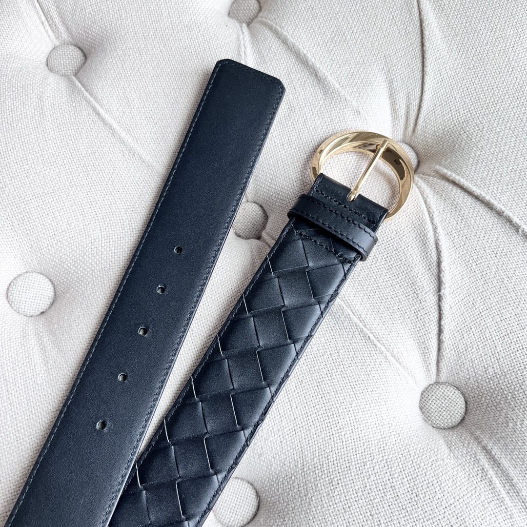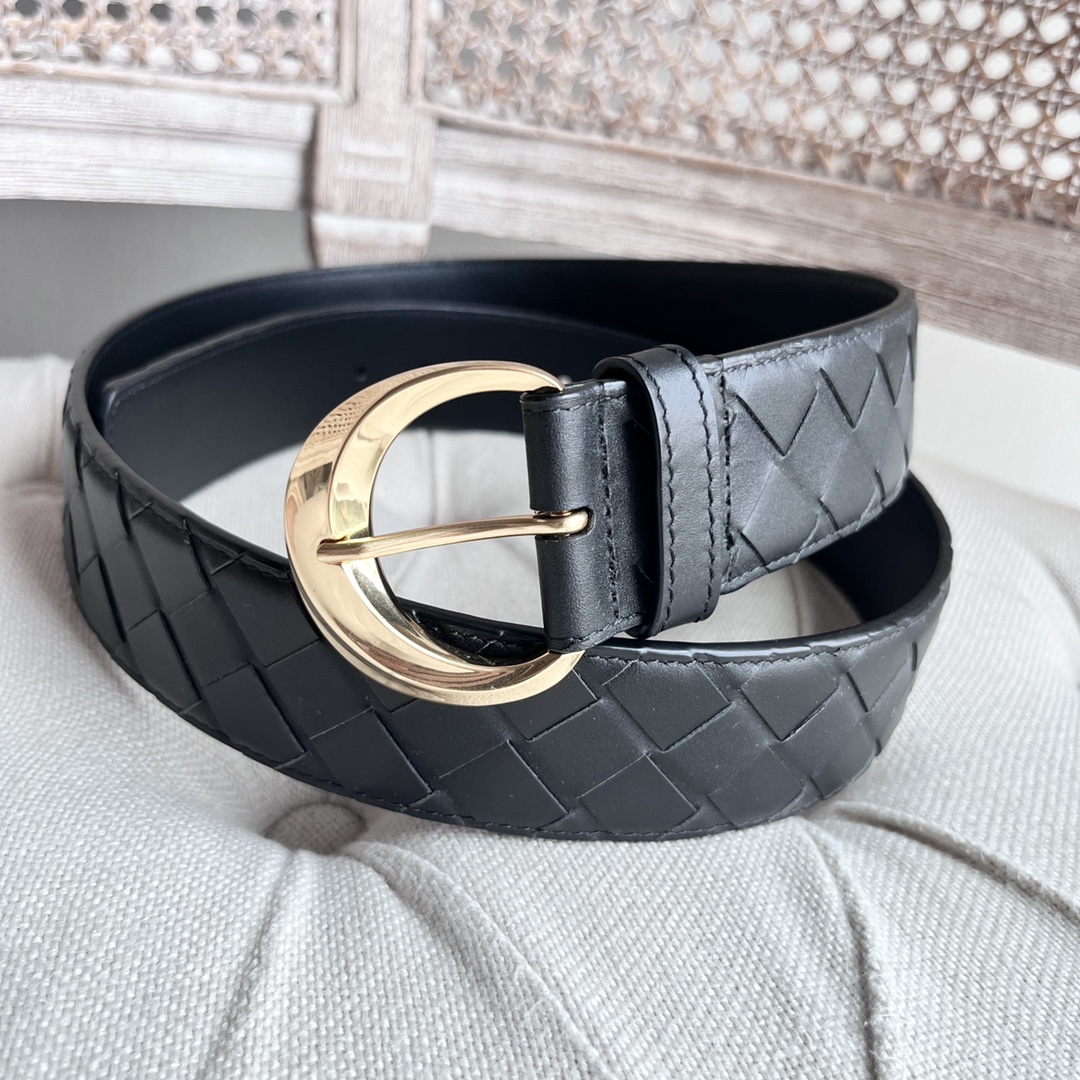 Bv latest wide weave belt, unisex, handmade intreccio large grid weave, double-sided Italian calfskin with retro gold pin buckle, width 40MM