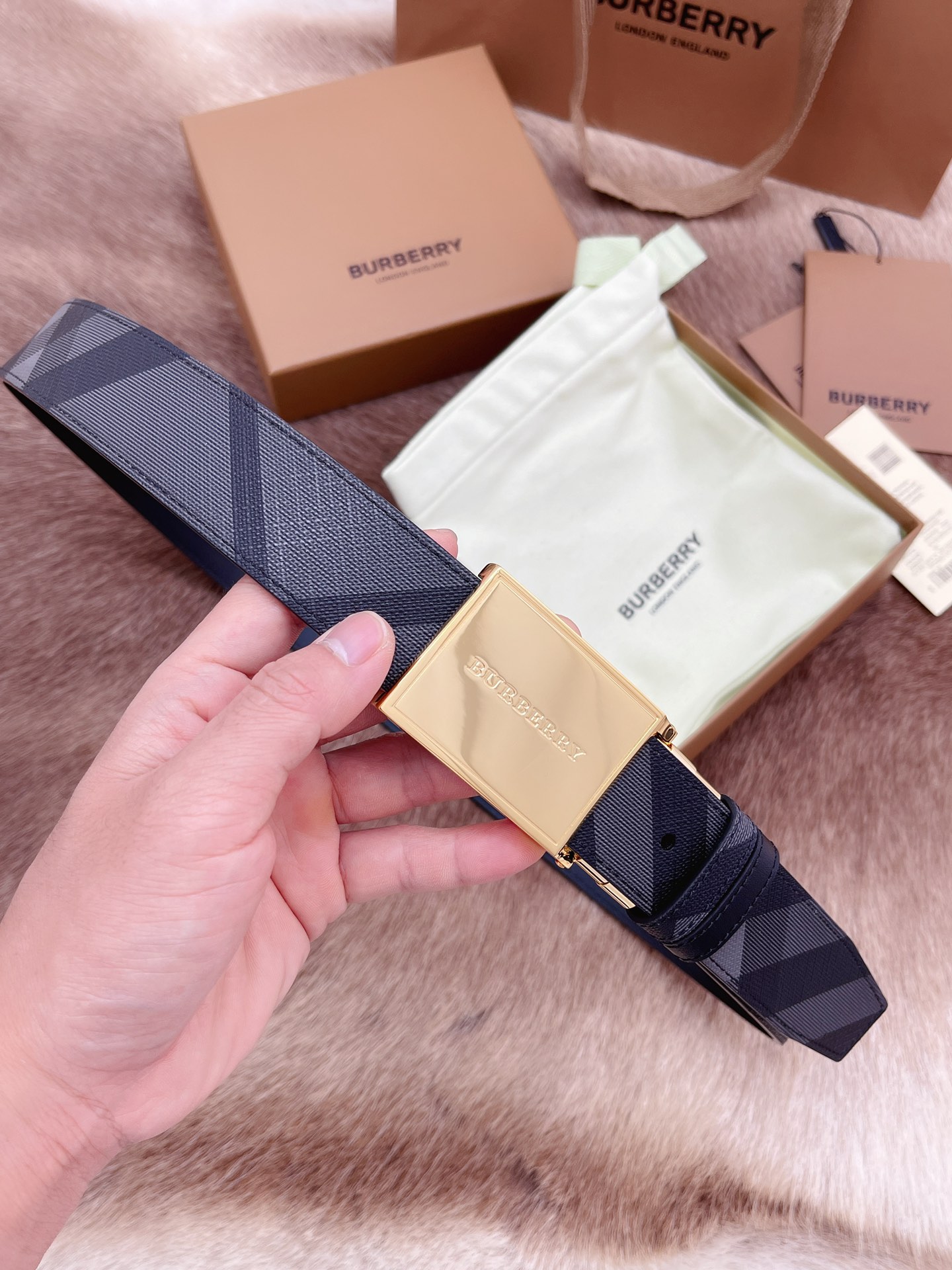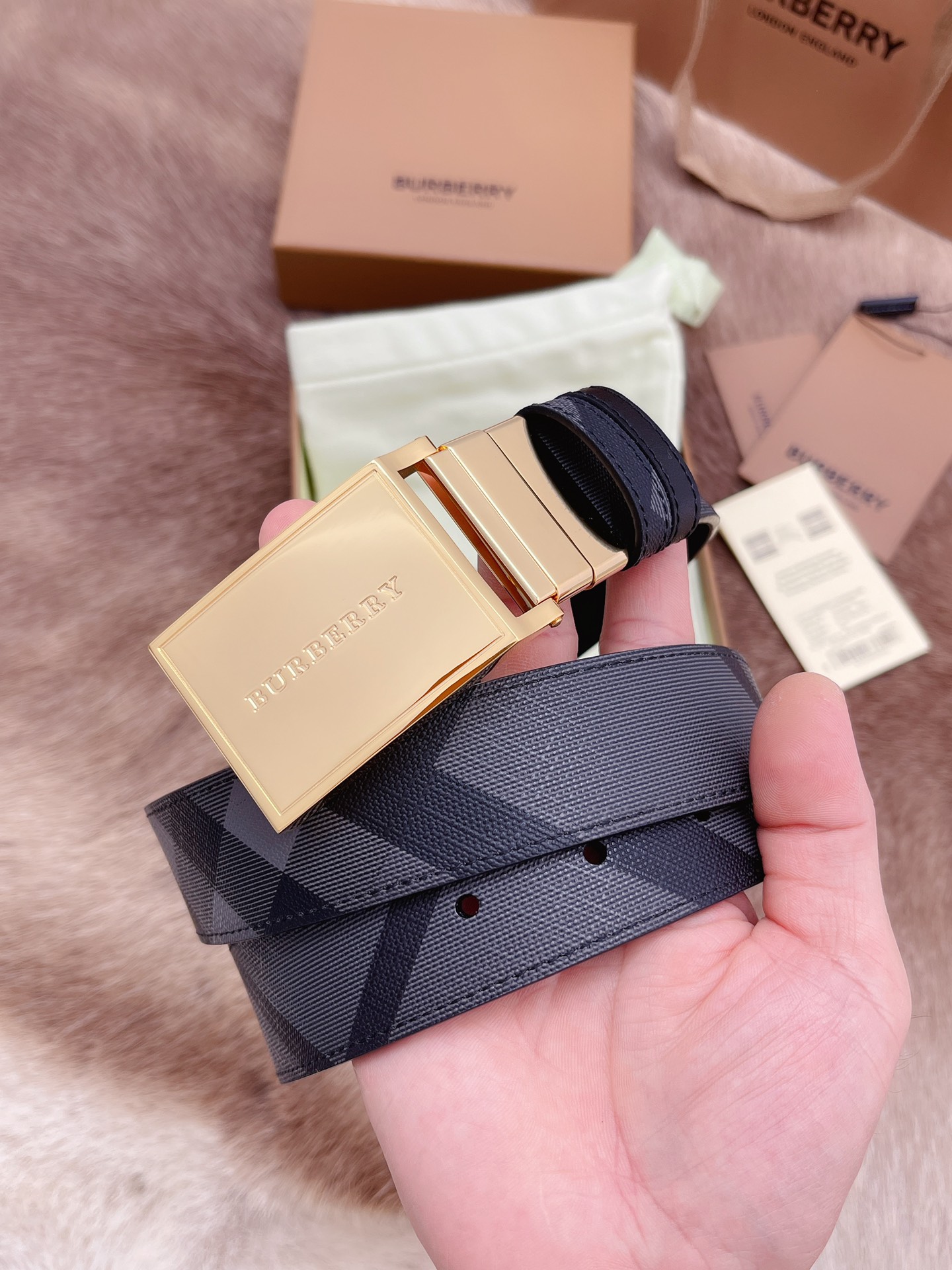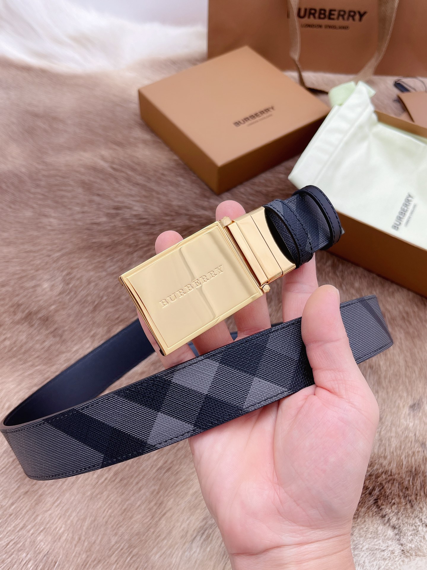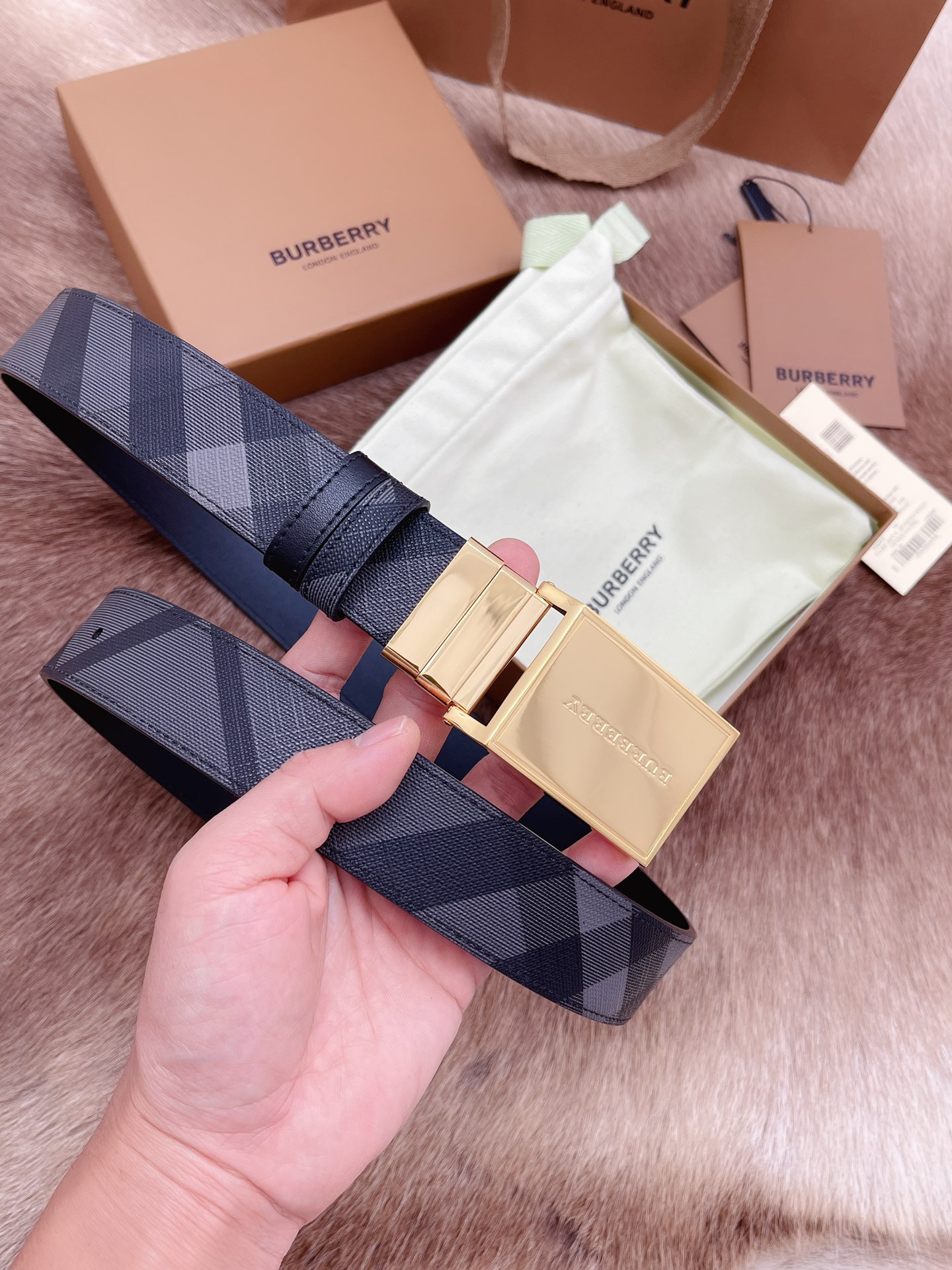 Burberry men's belt trading company order export Italy genuine size 3.5cm OEM factory original leather custom brass hardware vacuum electroplating to create the original taste