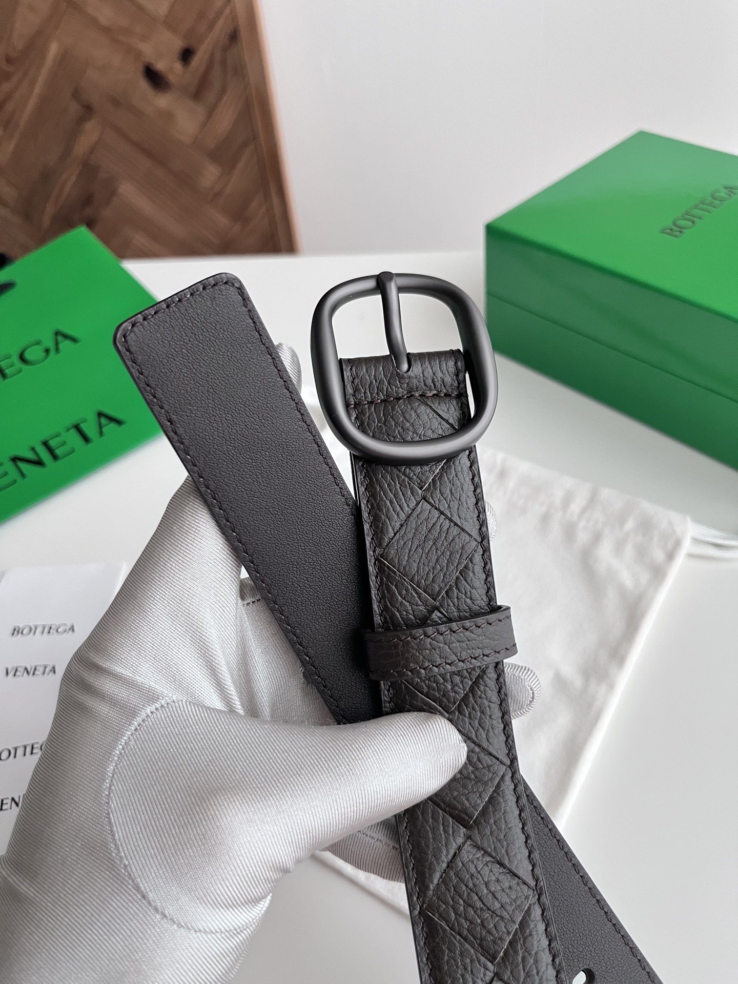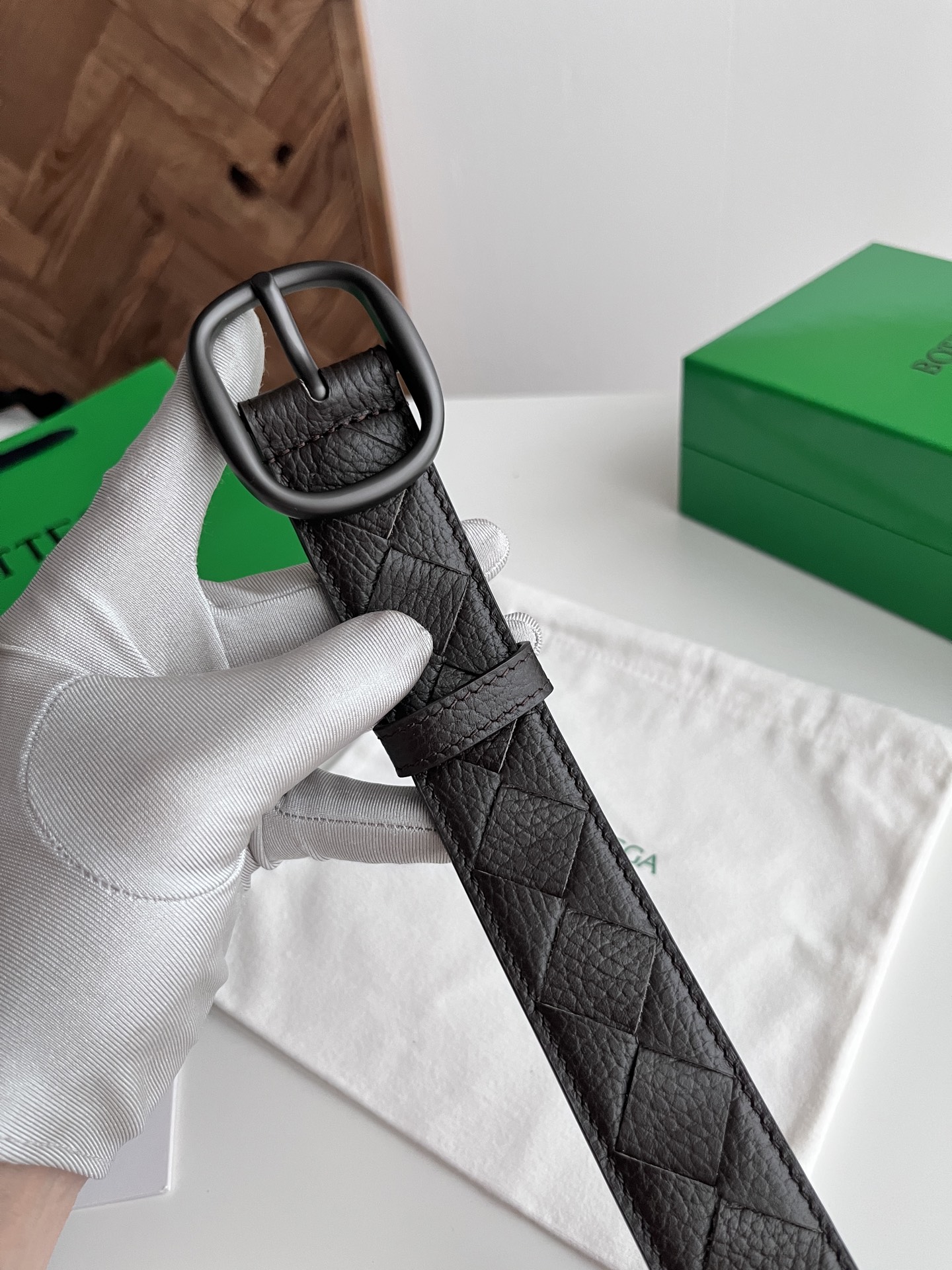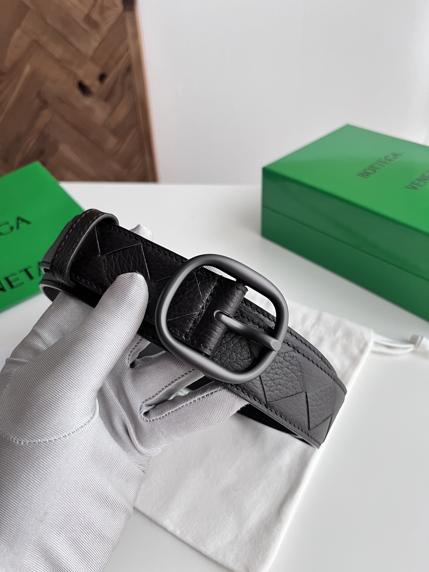 Bv 2025 latest men's woven belt pure handmade intreccio large grid weaving Italian lychee grain calfskin paired with oval slightly retro silver pin buckle side has logo movable leather loop width 35MM