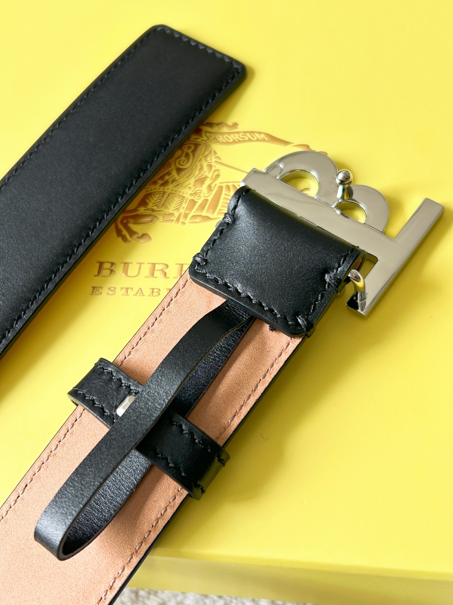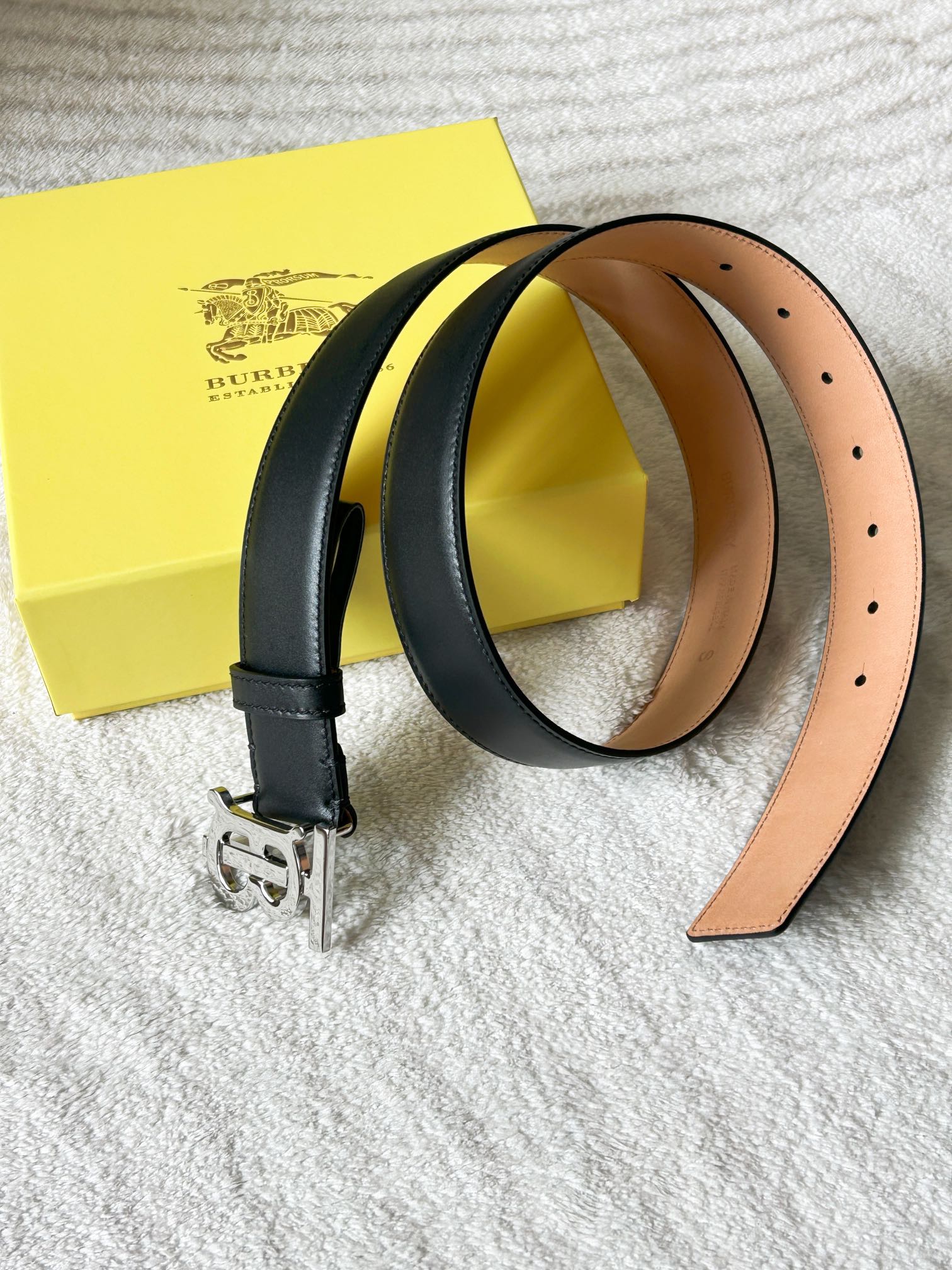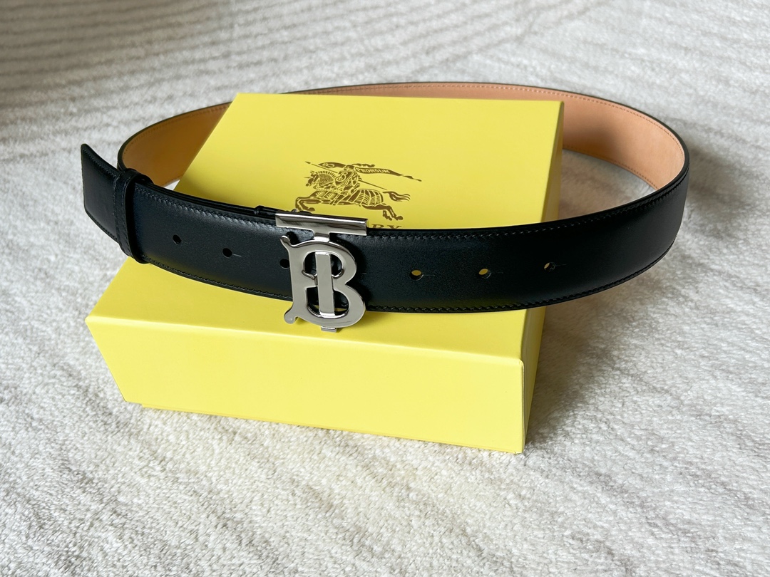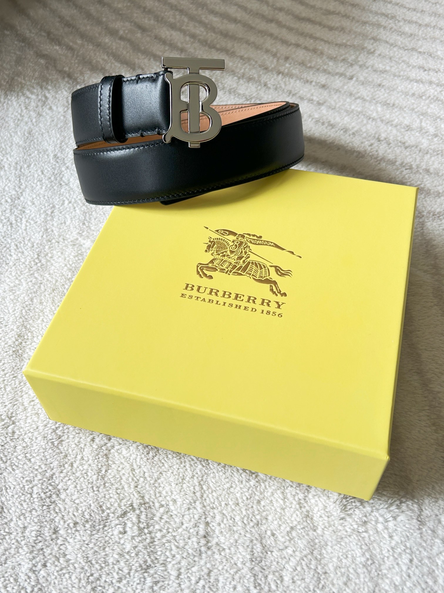 BURBERRY (Burberry) store same style unisex casual style width 3.5cm made of gray top-layer original calfskin interior suede leather with decorative plate buckle decorated with brand exclusive logo pattern.