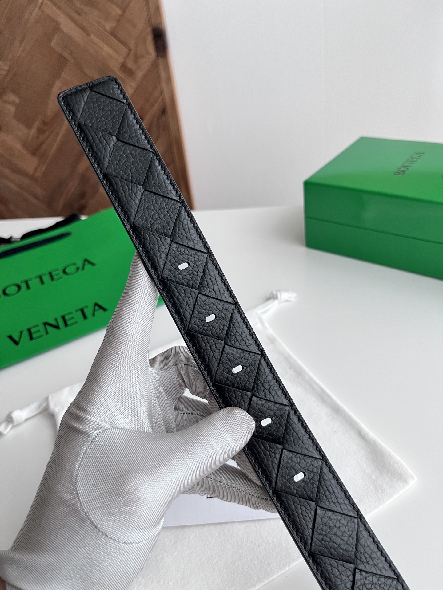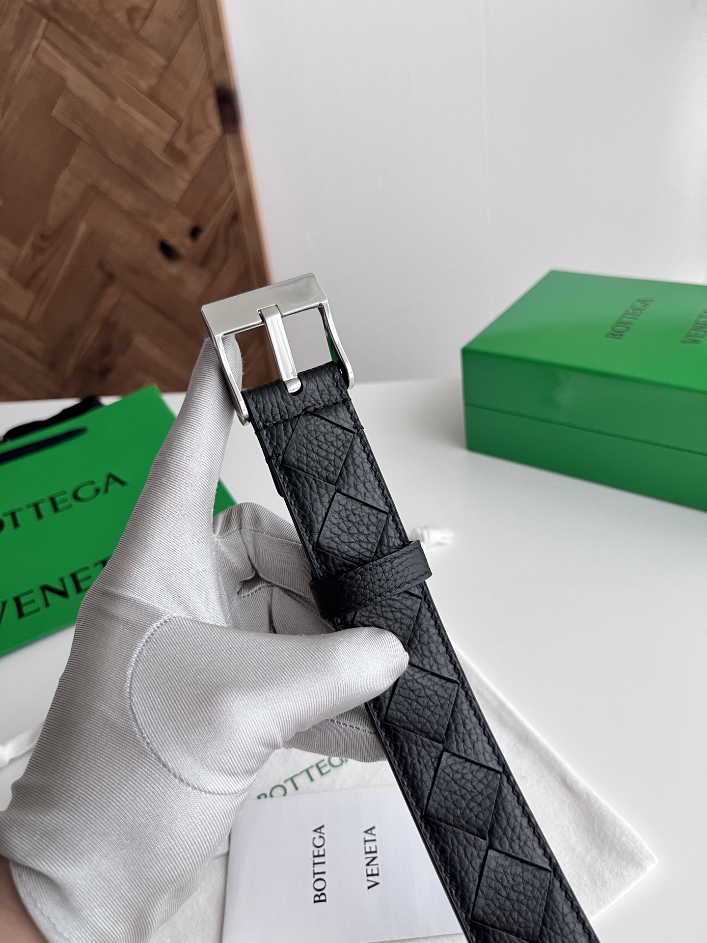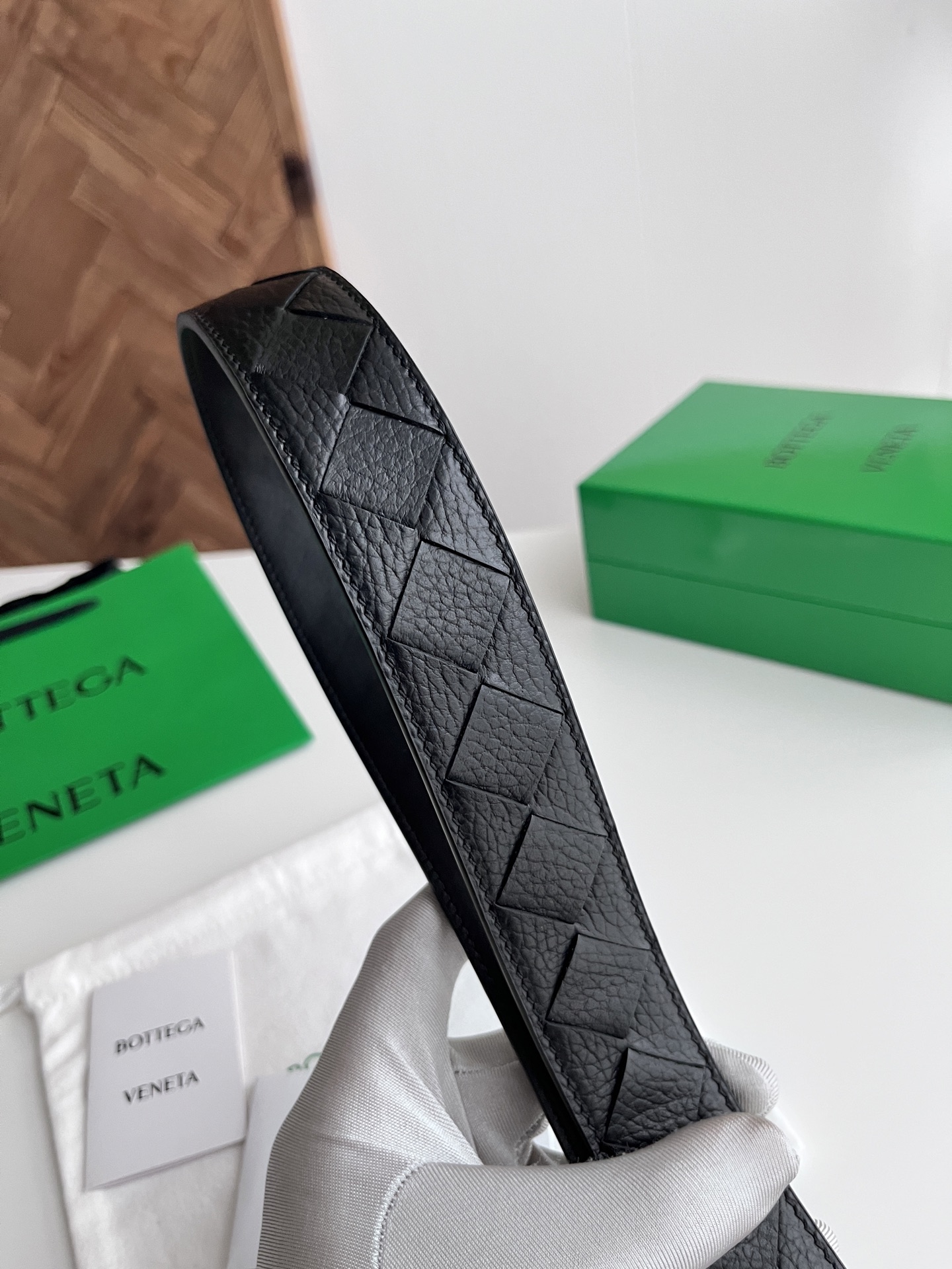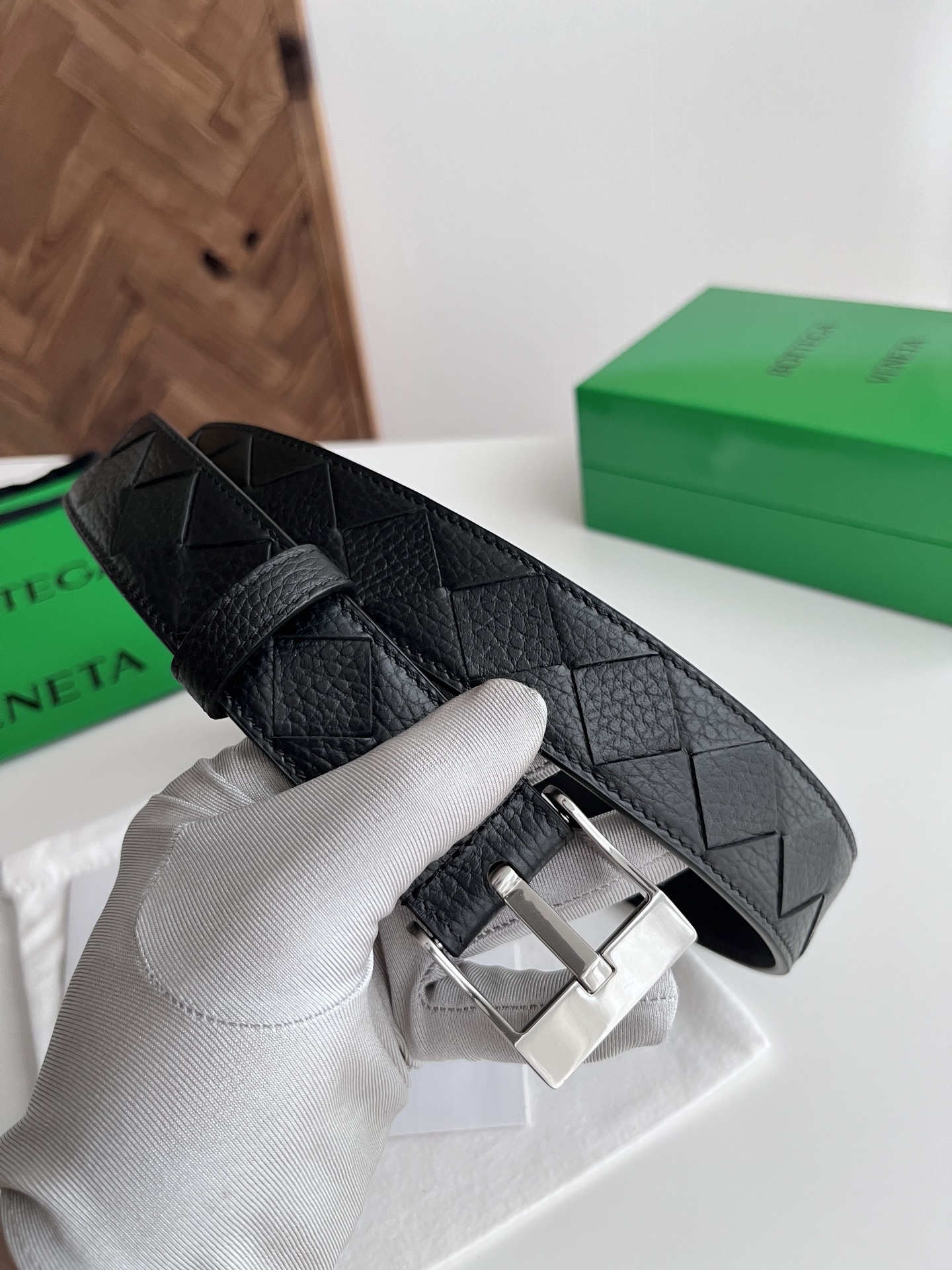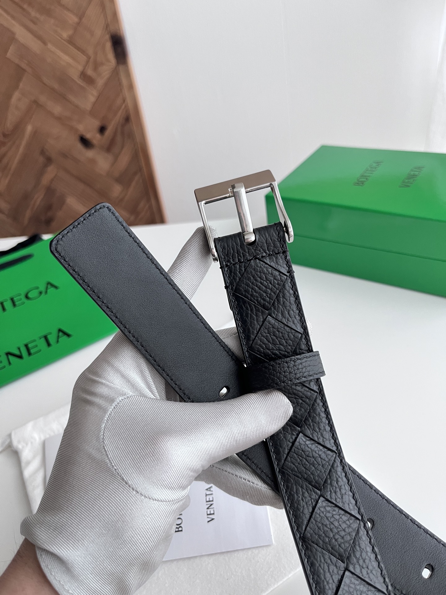 BV 2025 New Men's Belt Fully Handmade Large Intreccio Weave Italian Pebbled Calfskin Paired with New Buckle Design Vacuum Gunmetal Pin Buckle Belt Width 3.5cm