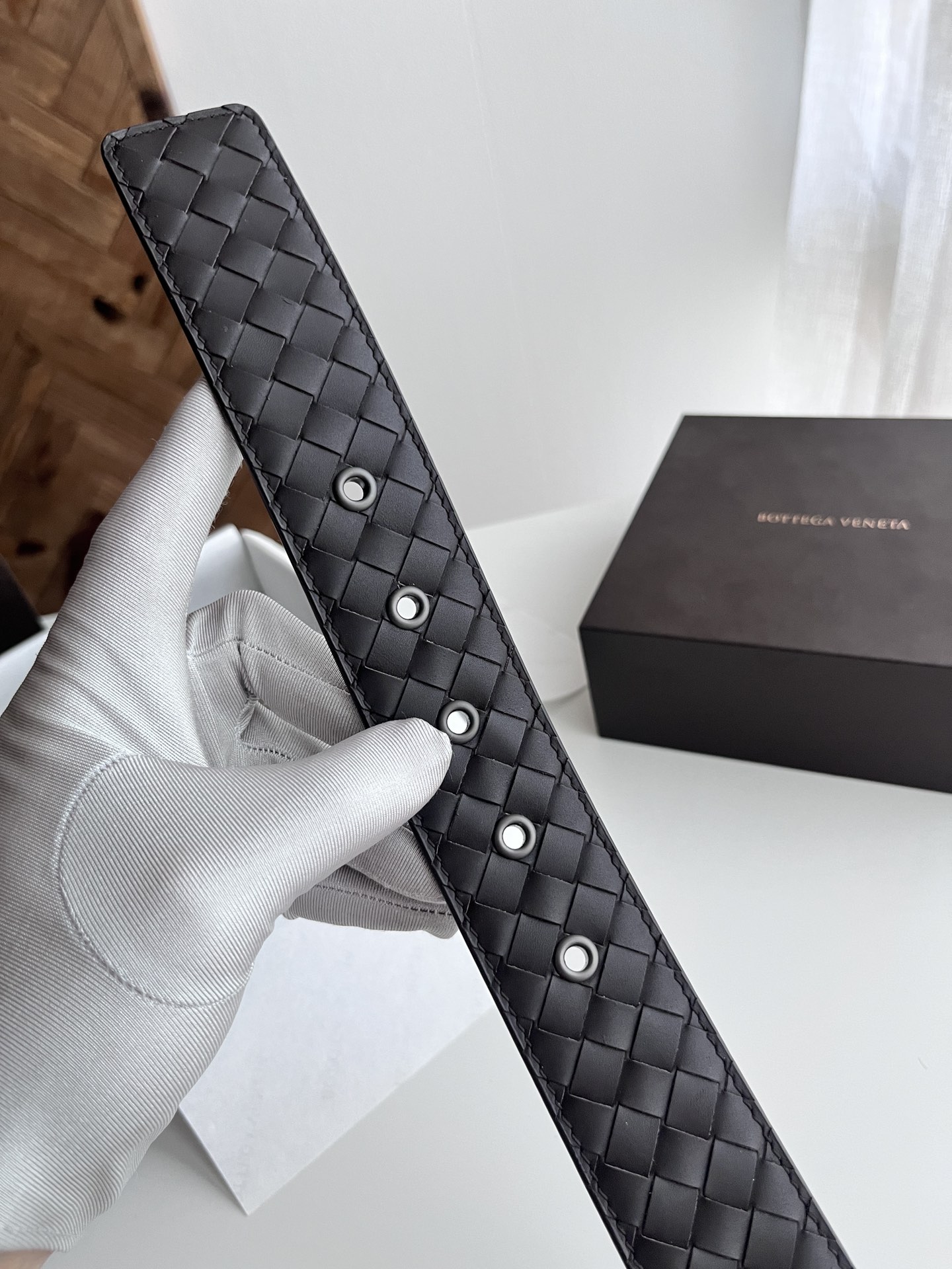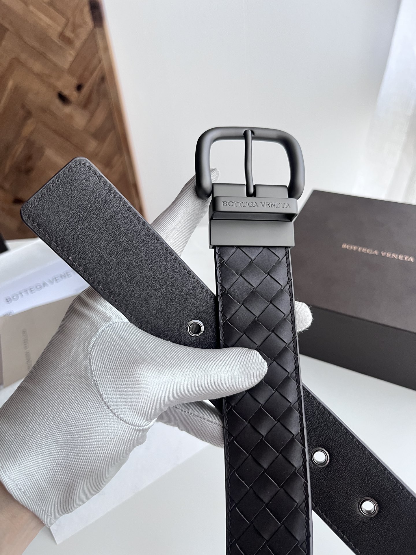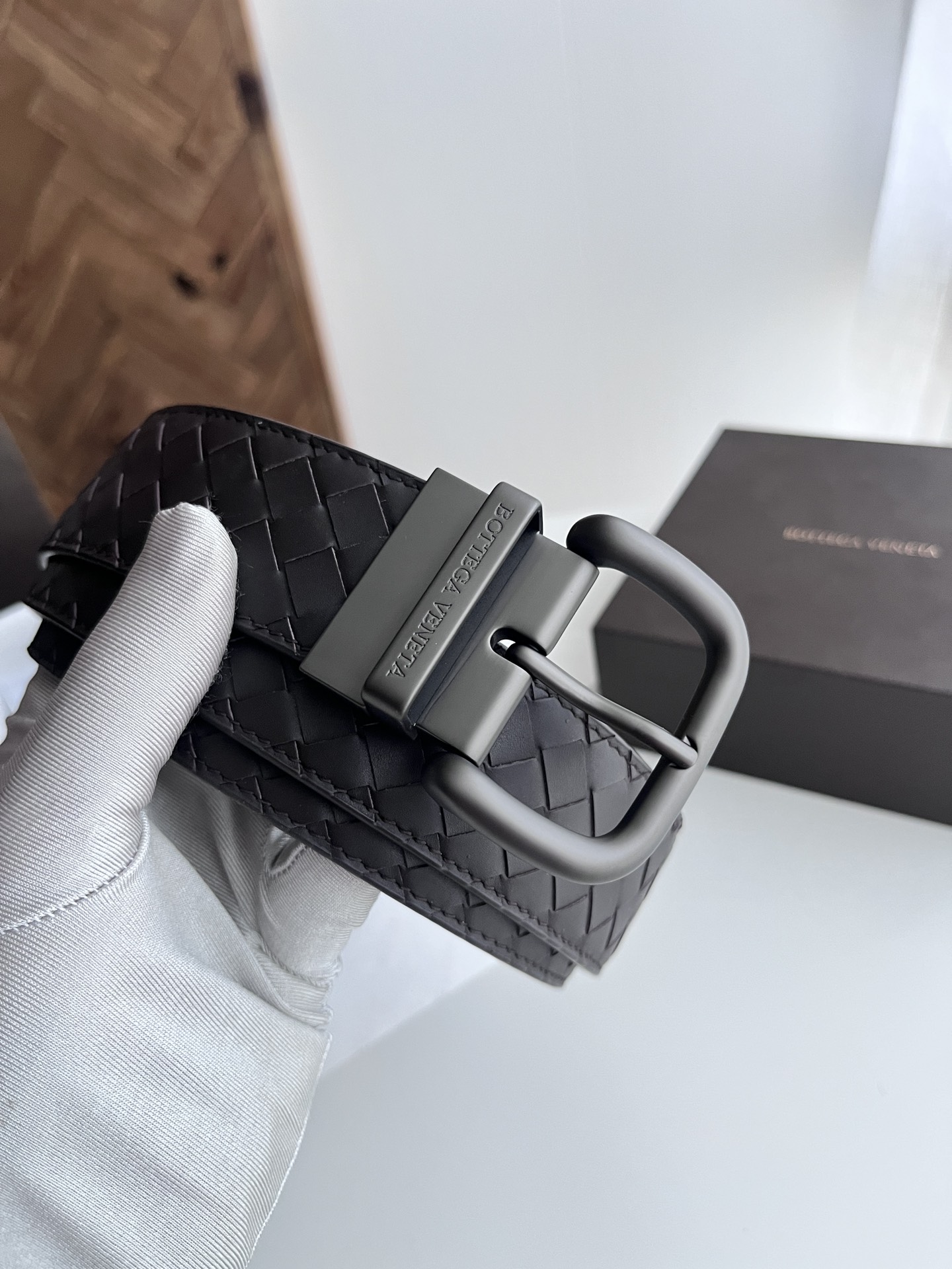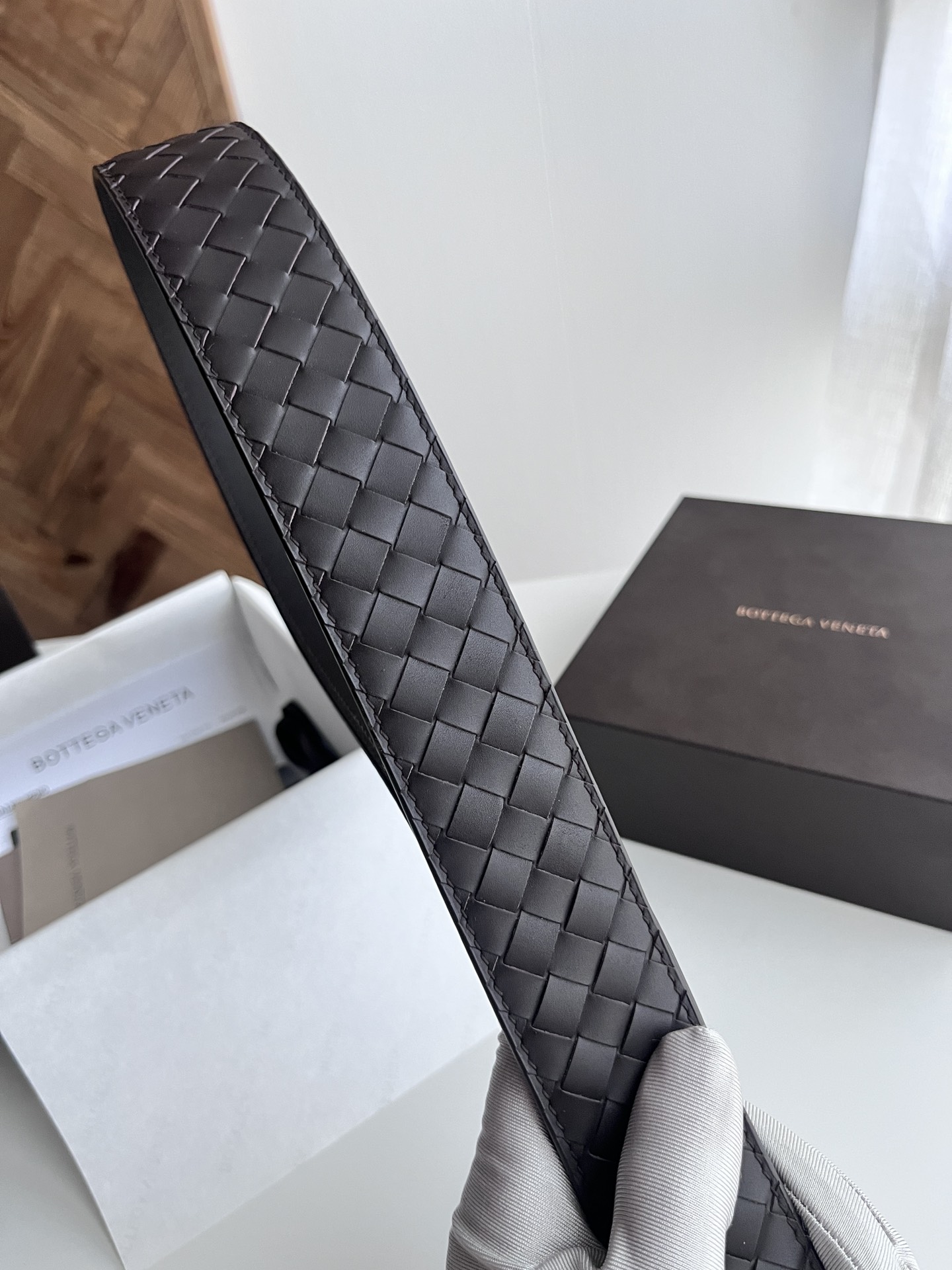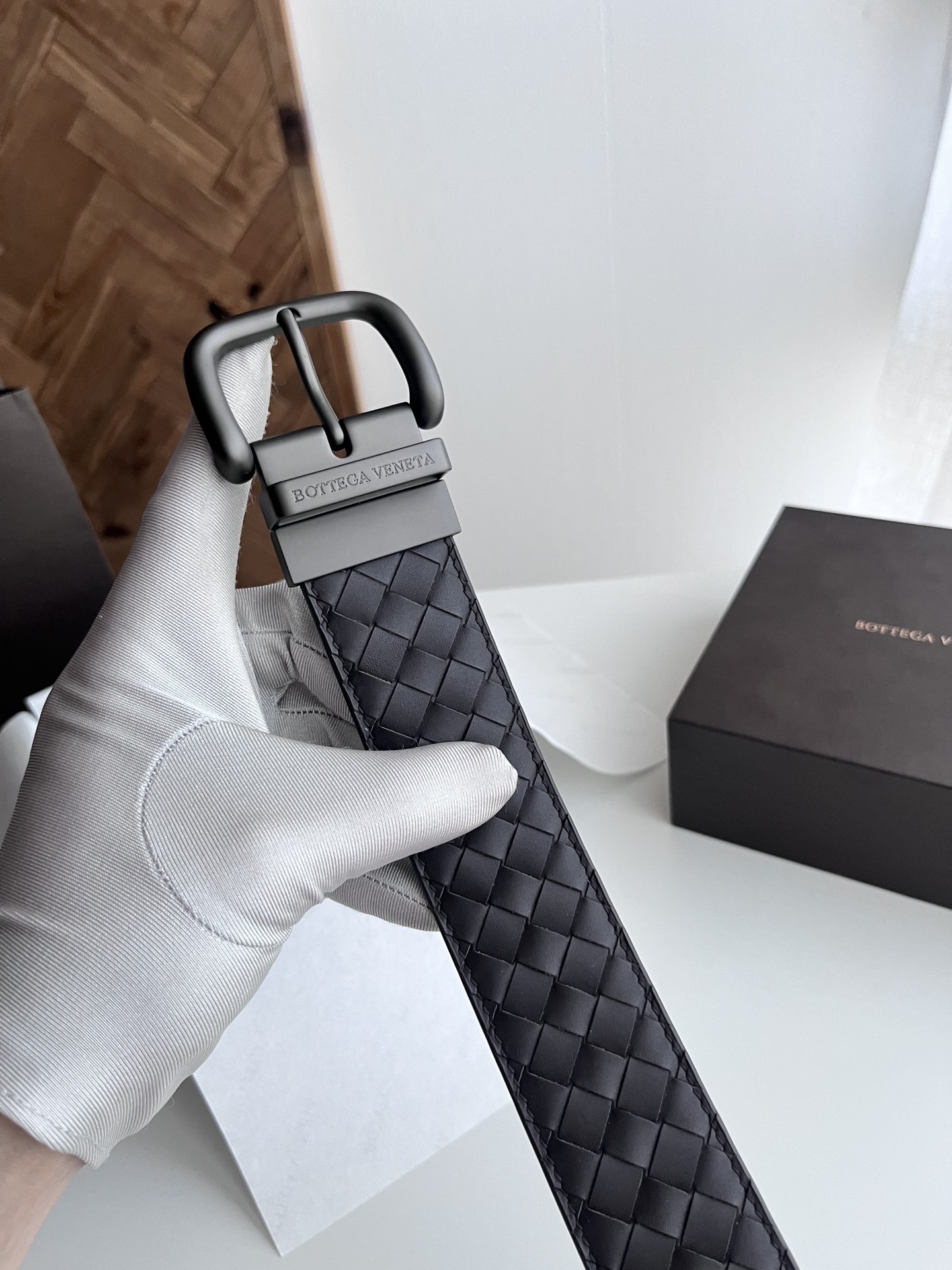 BV 2024 New Double-Sided Men's Belt Pure Handmade Small Checkerboard Intreccio Woven Italian Calfskin Paired with Vacuum Gunmetal Rotating Buckle Belt Width 4.0cm Color: Coffee