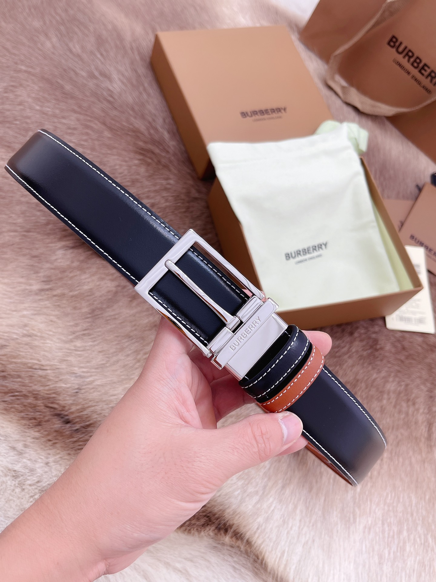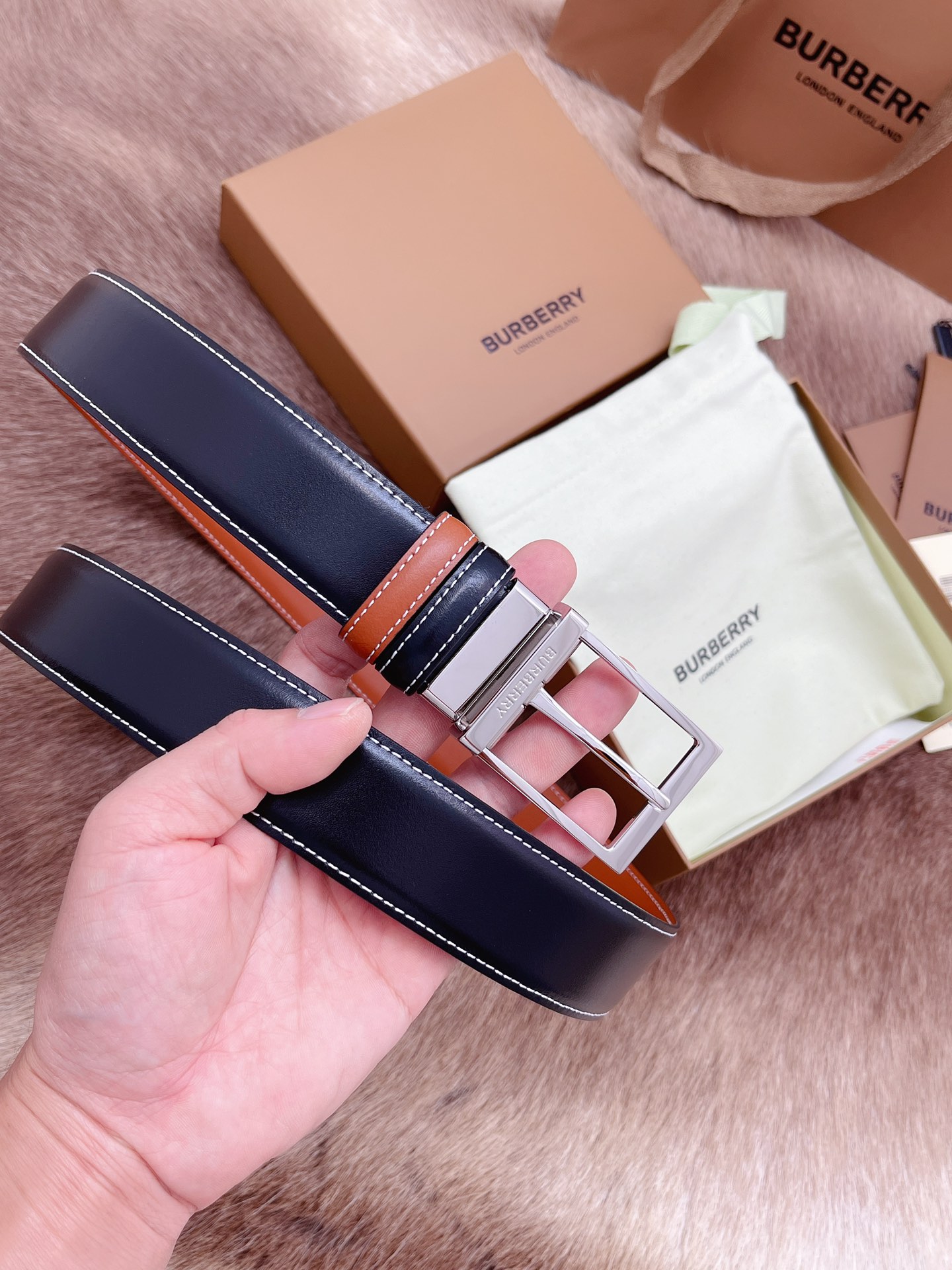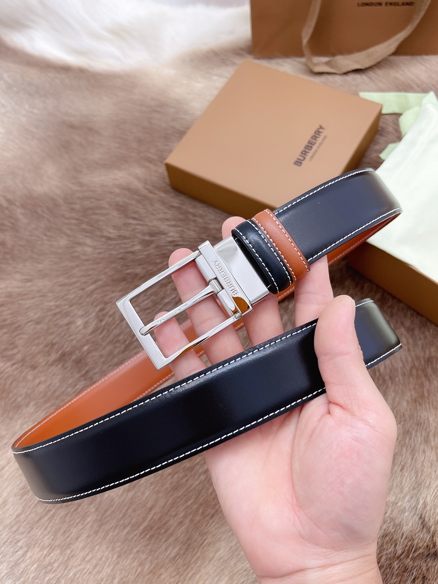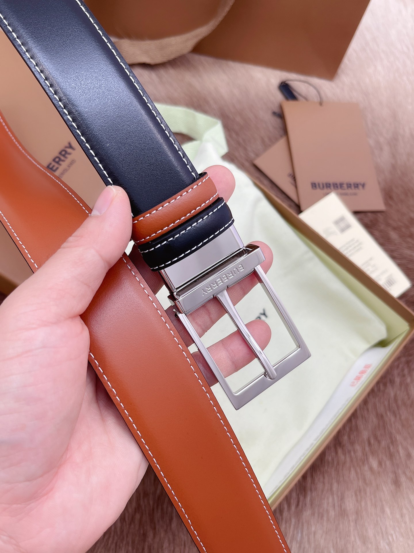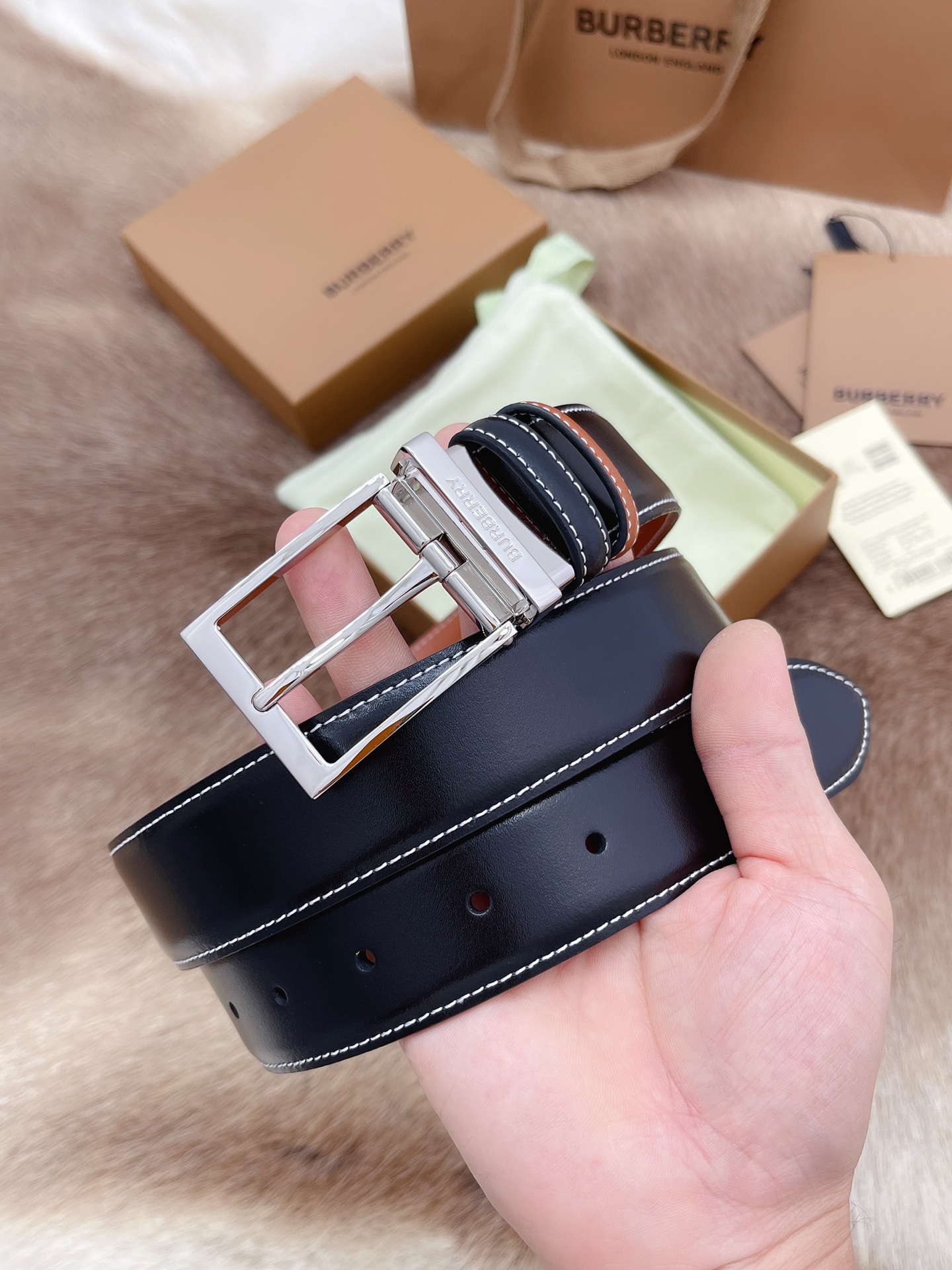 Burberry men's belt Trading company order export Italy Genuine size 3.5cm OEM factory original leather custom Brass hardware vacuum plating to create the original taste of the product.