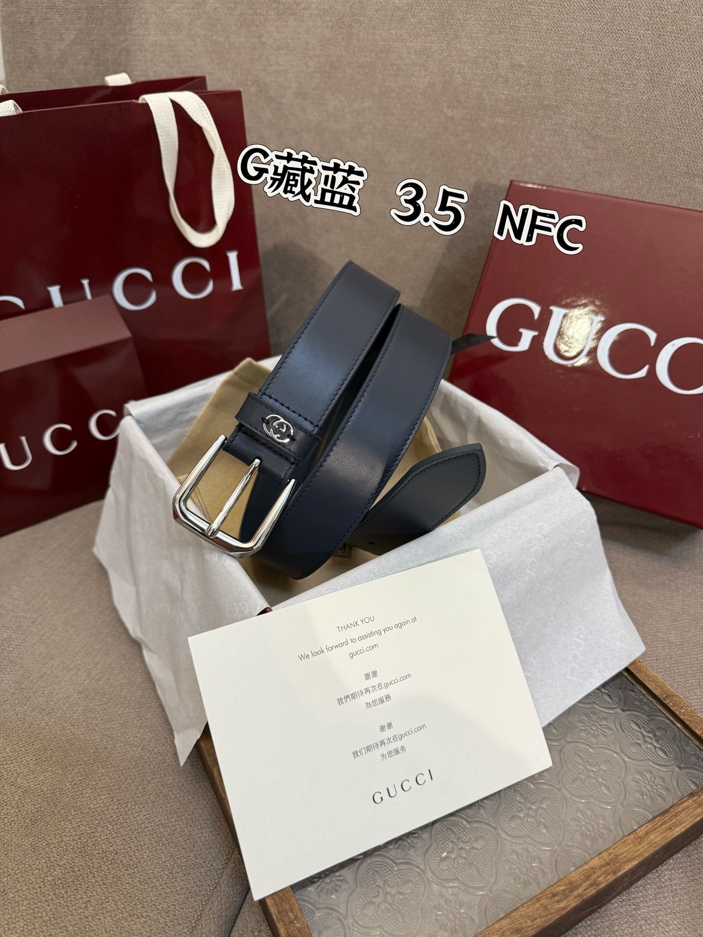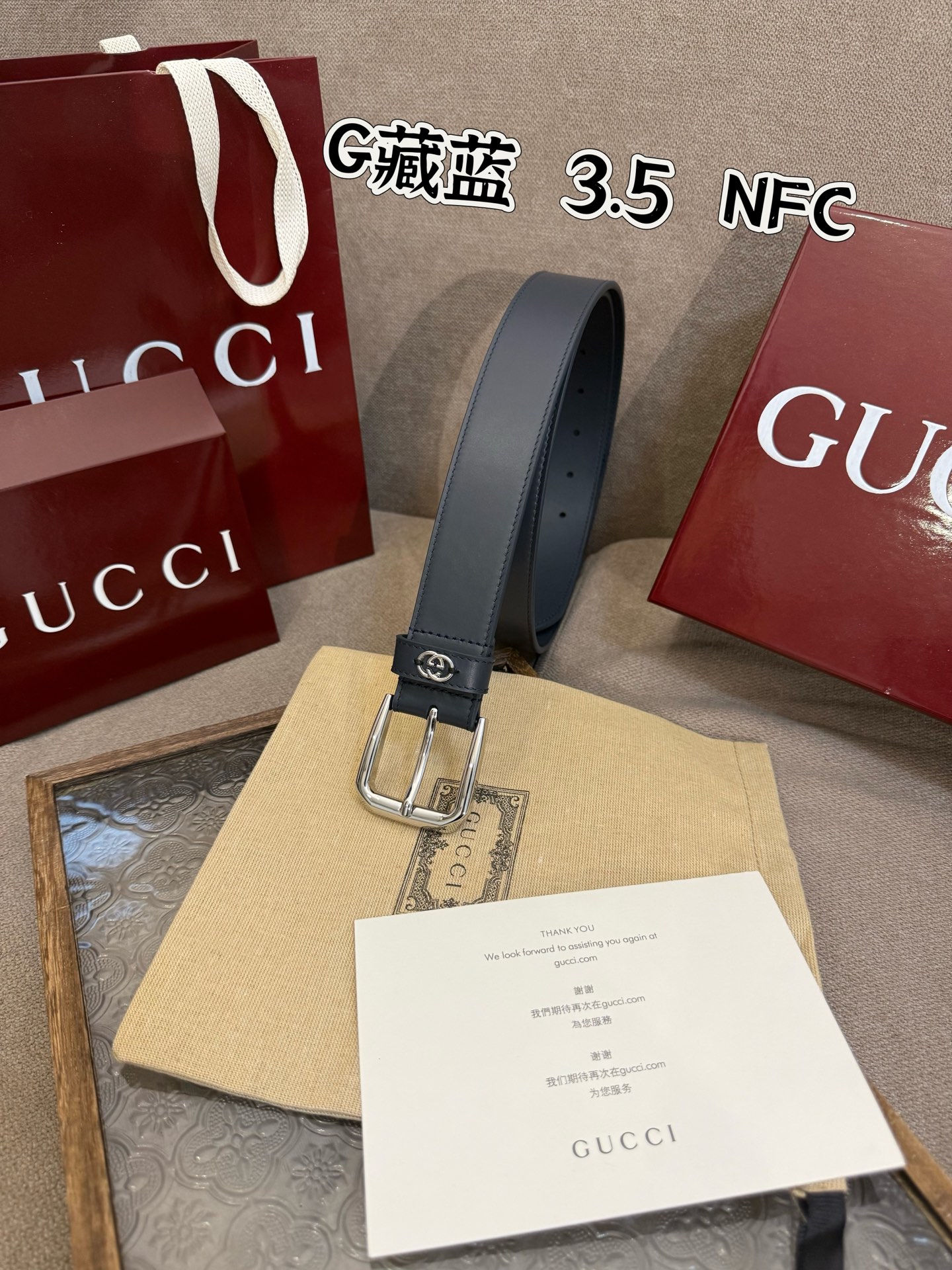 G Buckle Gucci Style Number 673921 92TIN 1000 Surface material is custom black PVC Width 3.5cm Leather loop stitching with three-dimensional GG hardware accessories Square minimalist buckle