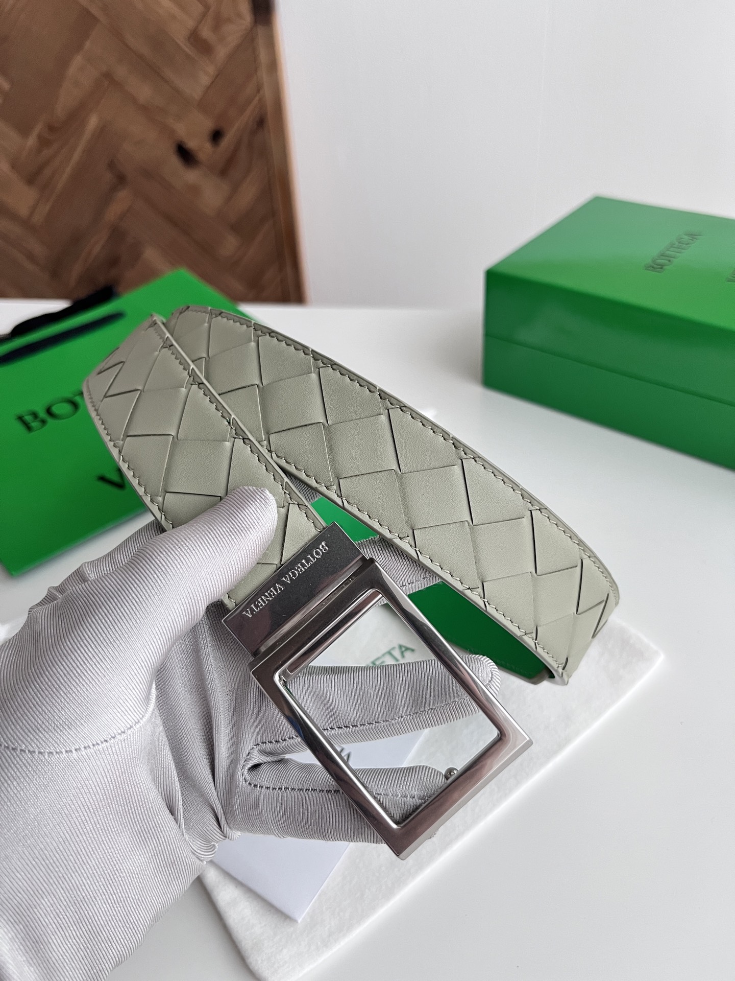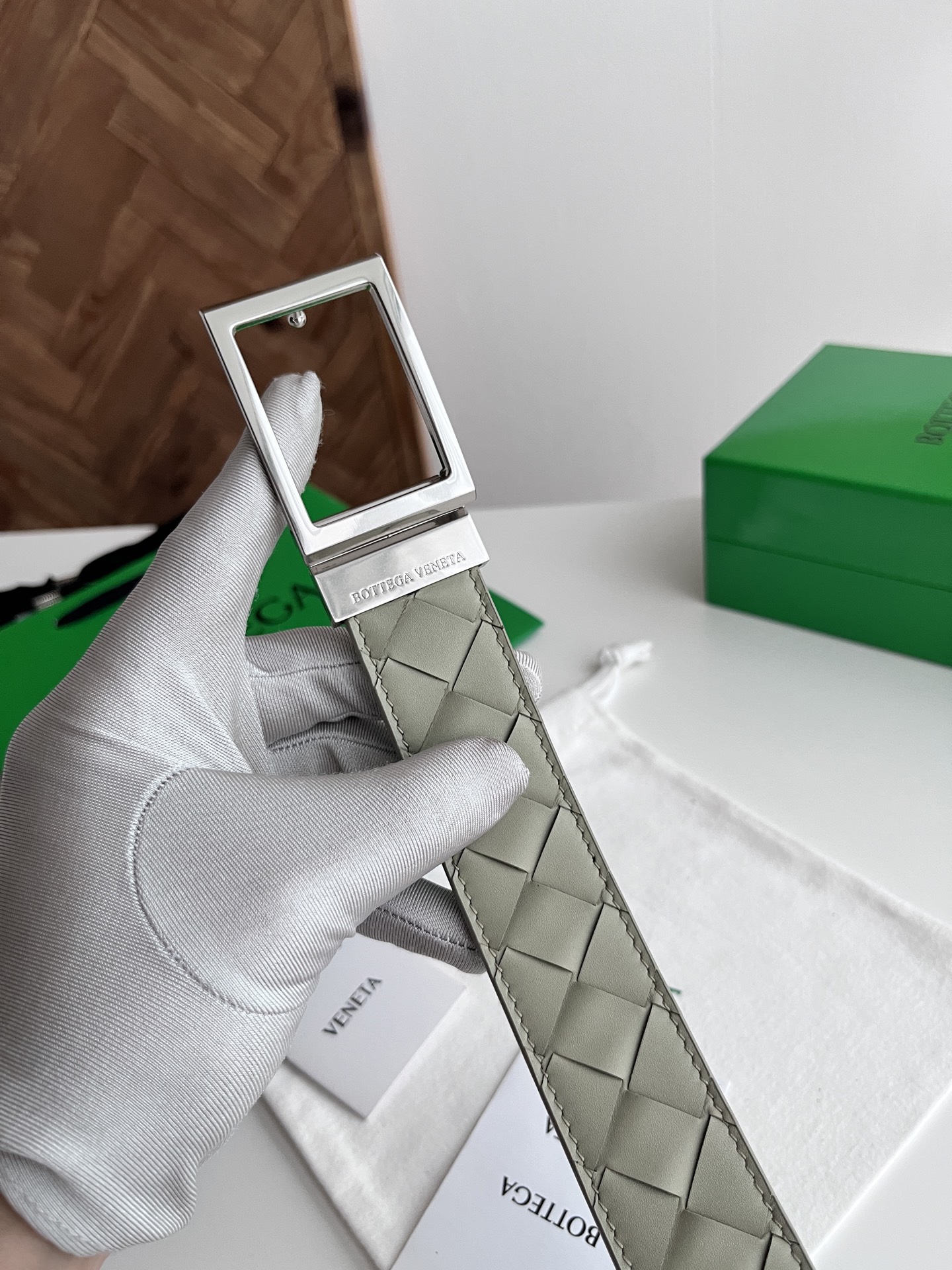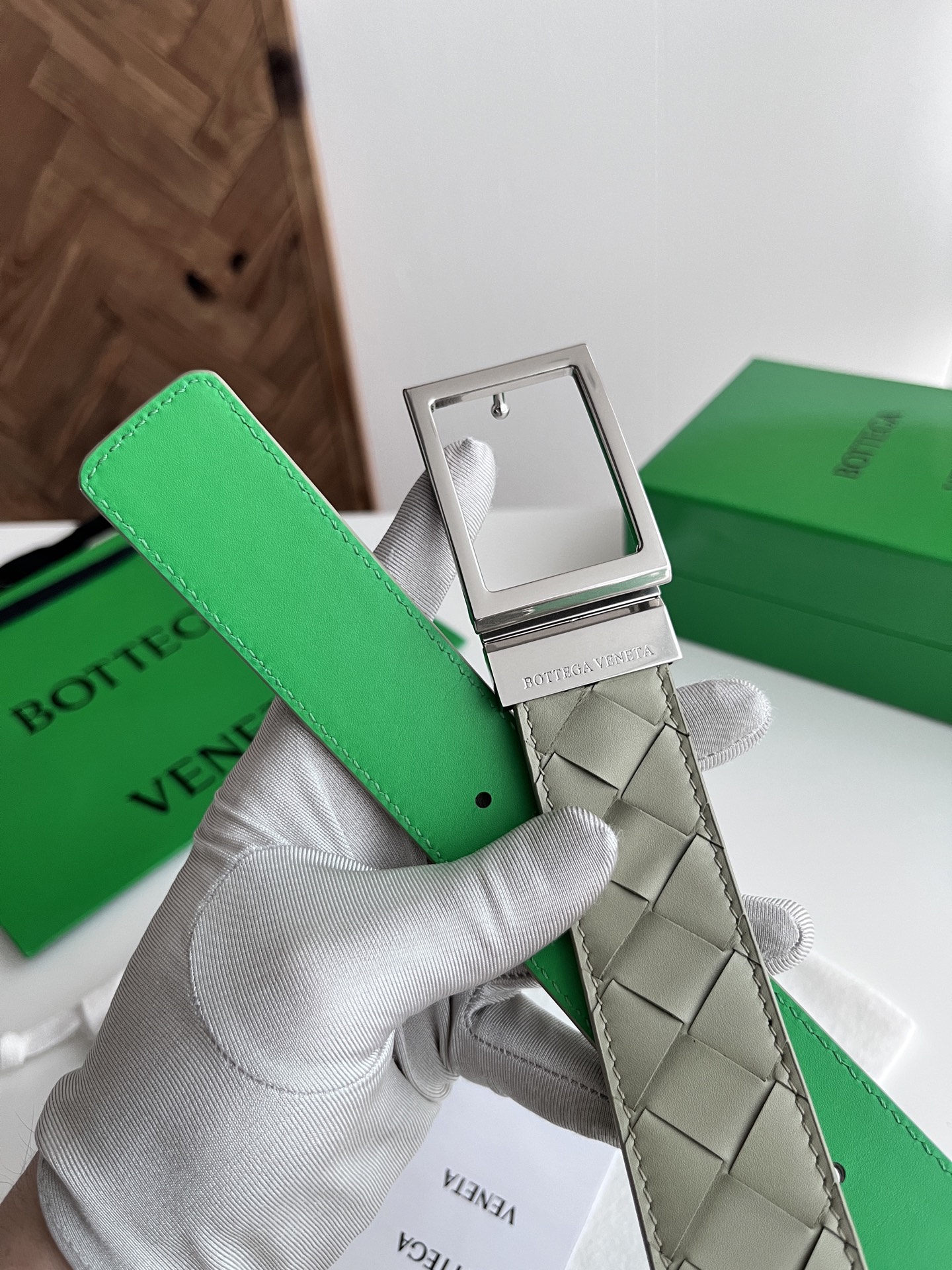 Bv 2025 latest men's woven belt double-sided use pure handmade intreccio large grid weaving double-sided Italian calfskin with slightly retro silver rotating buckle front with logo belt width 35MM