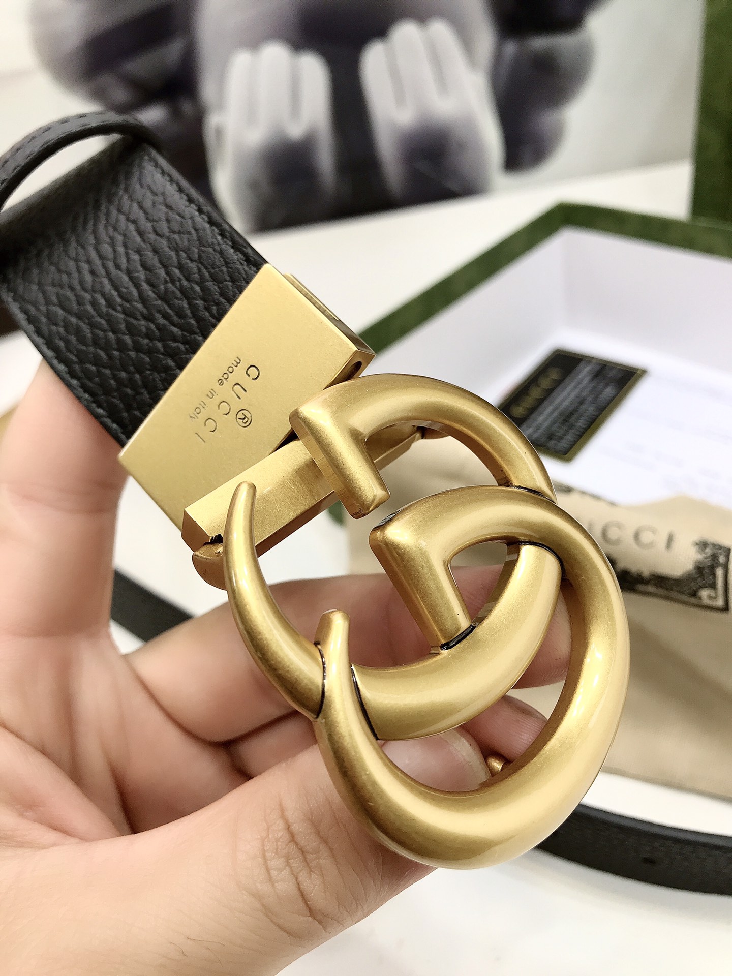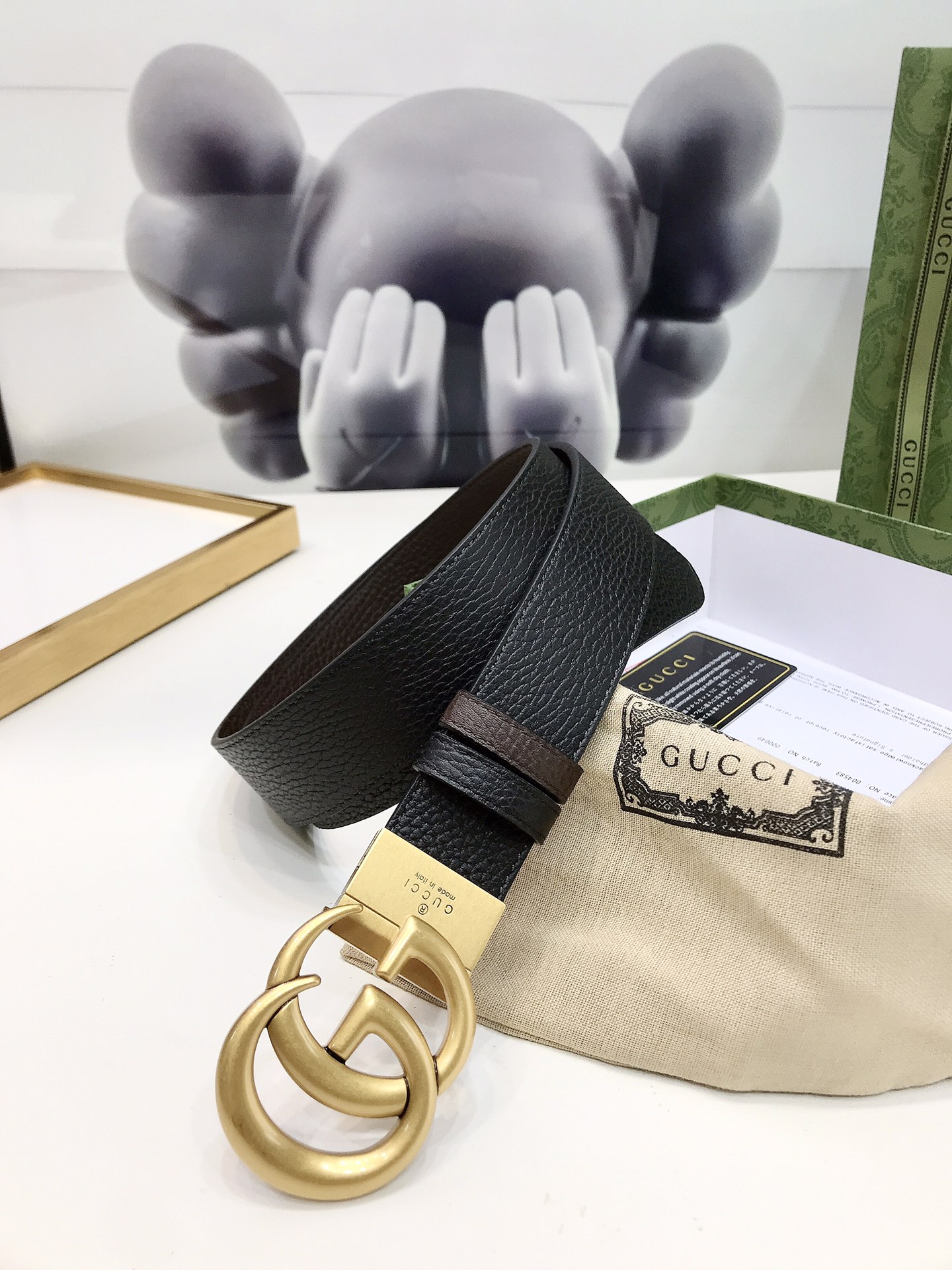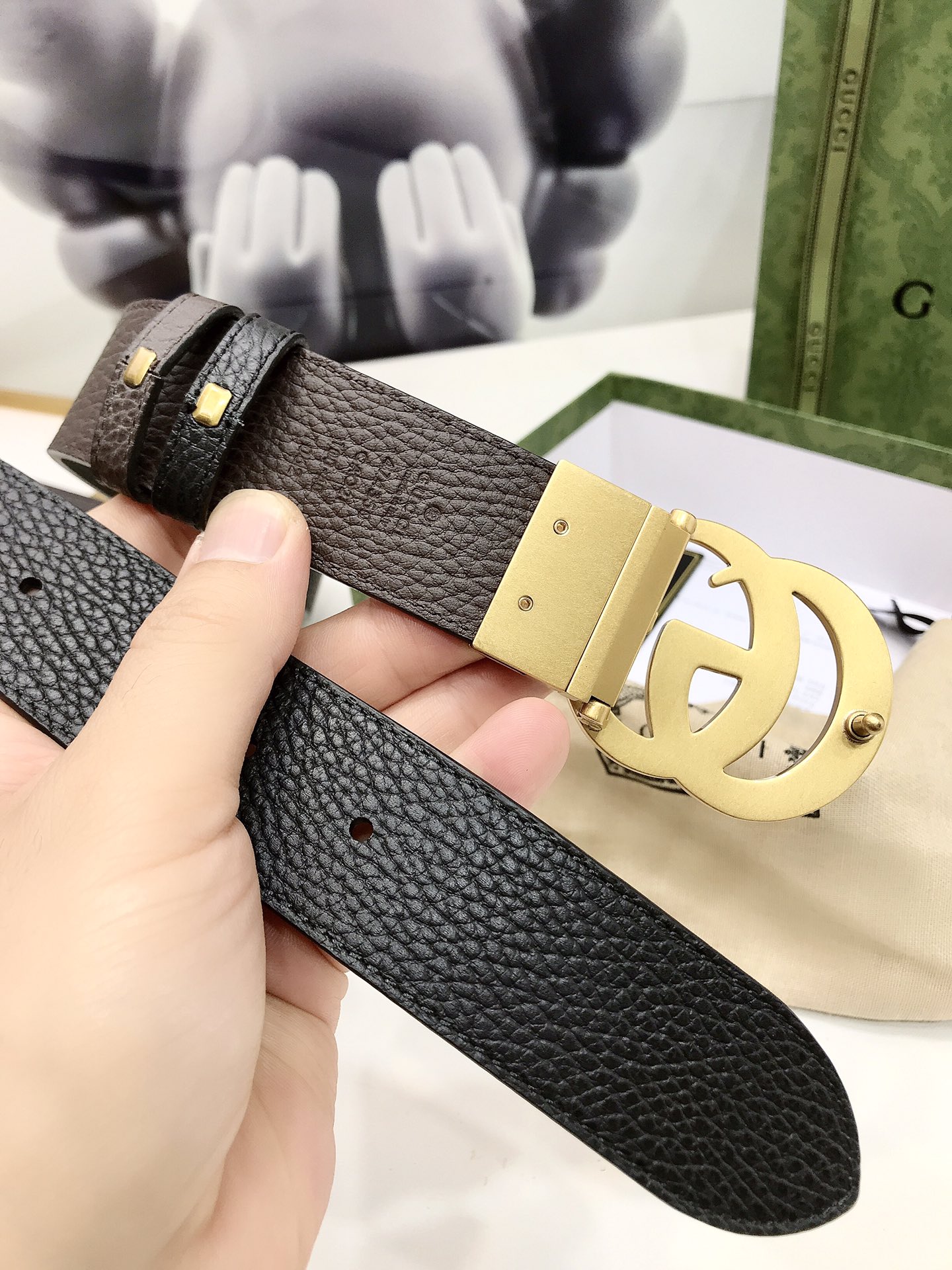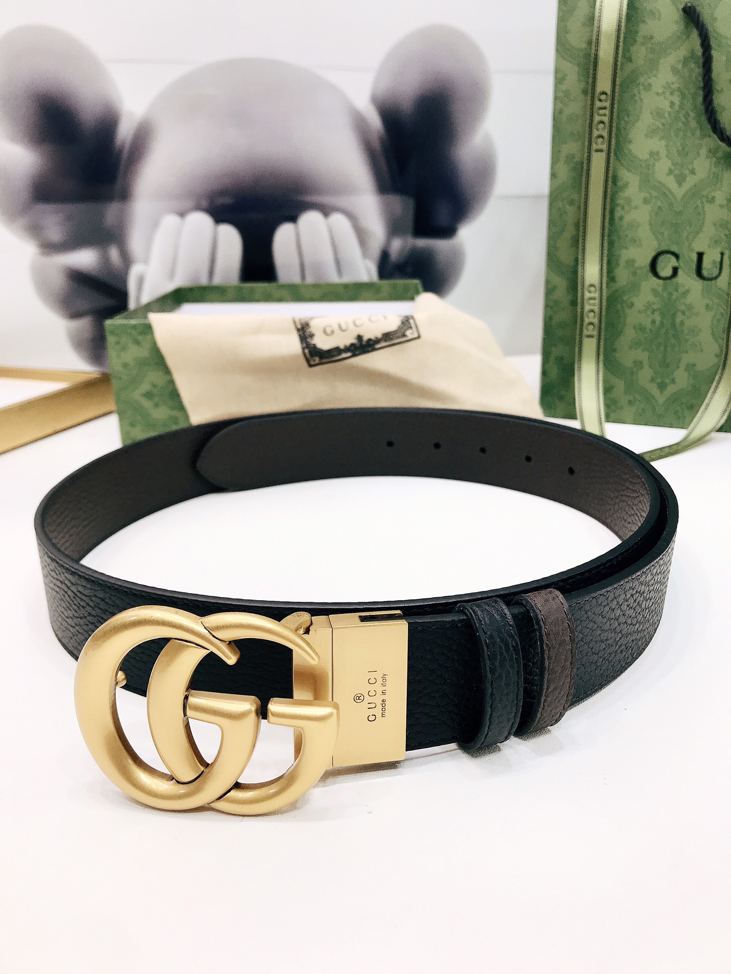 Gucci reversible leather belt, crafted from grained leather, adorned with a GG buckle. Metal accessories are reinterpreted, influenced by the brand's glorious classic designs from the 1970s. 3.7cm wide top-tier
