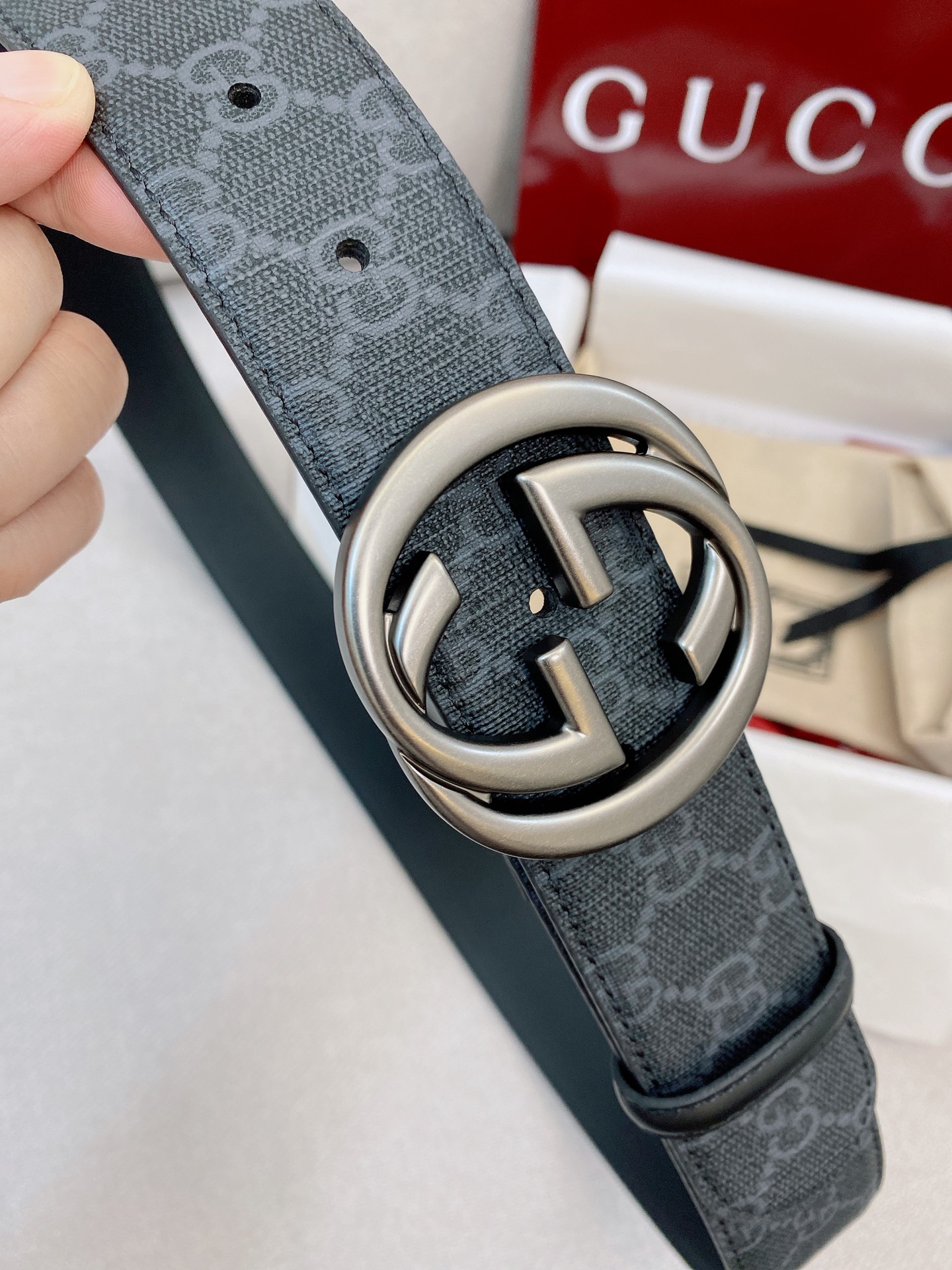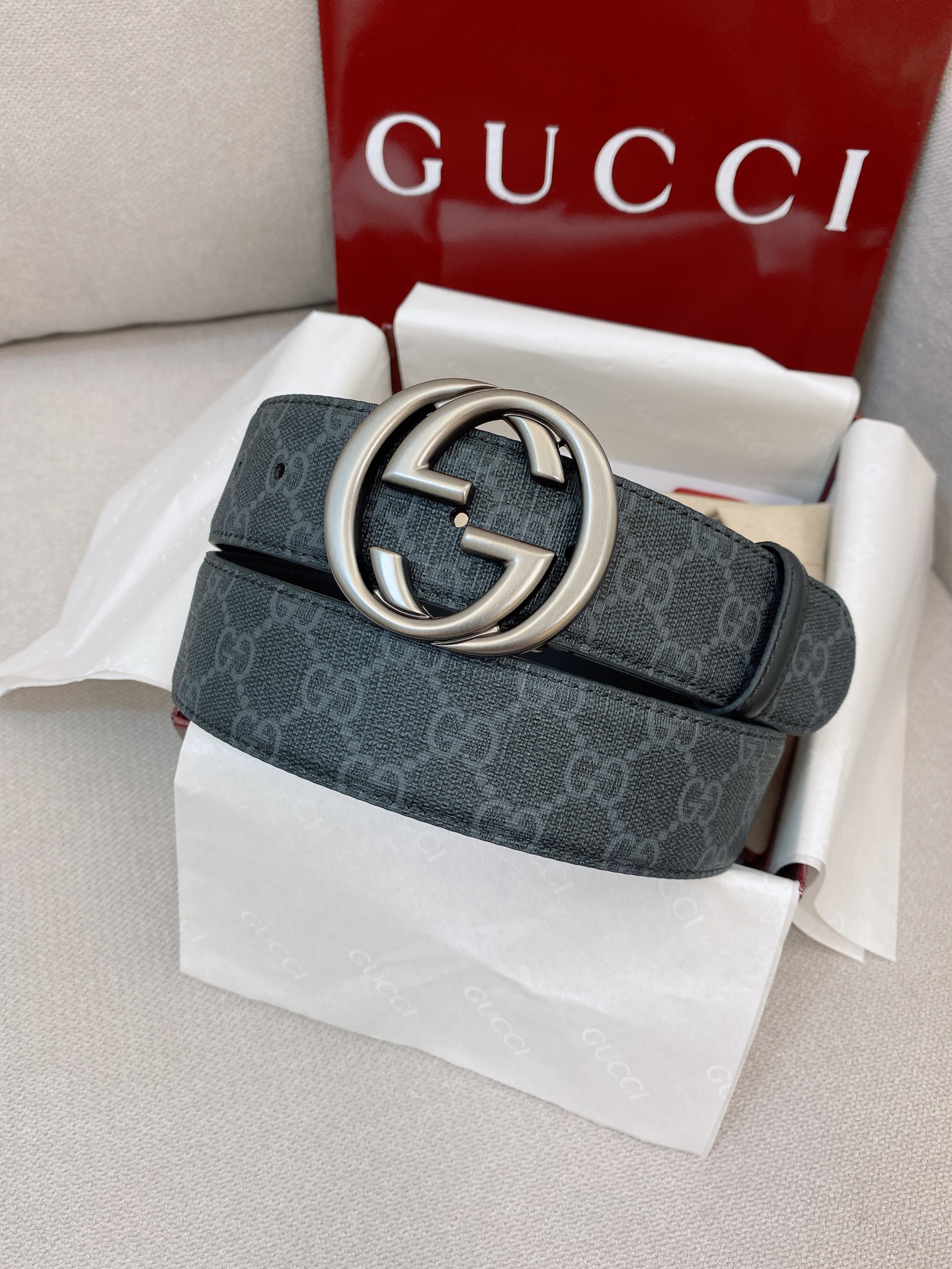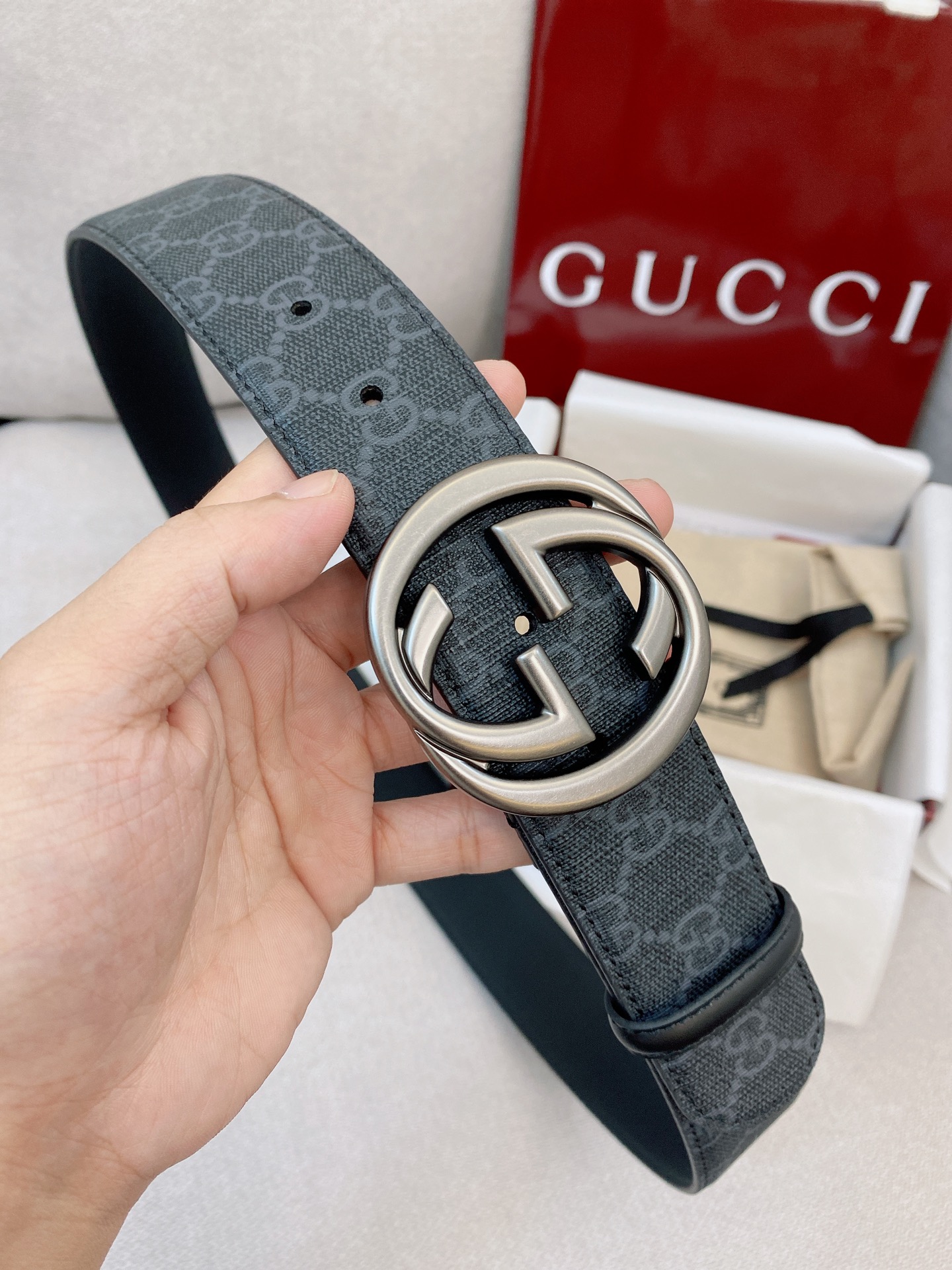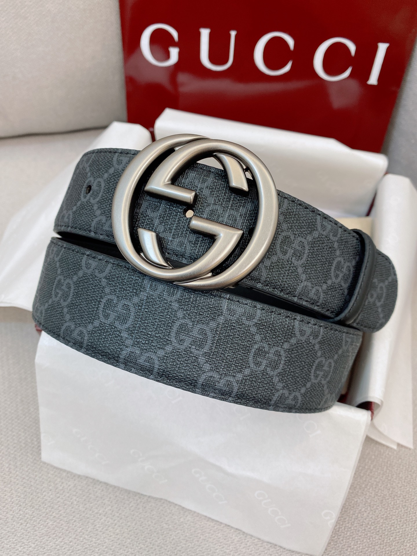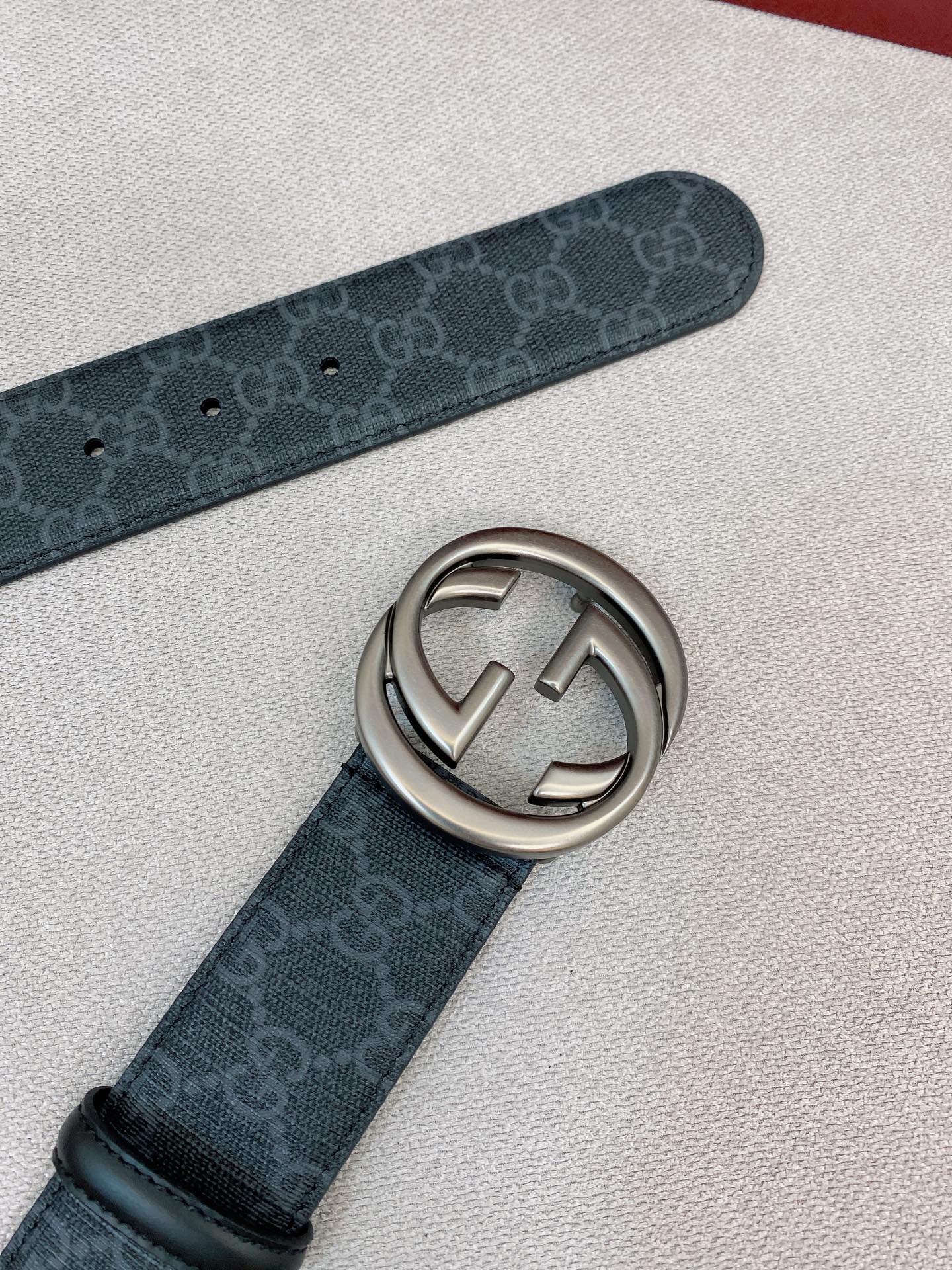 Gucci Top Men's Belt, this belt is crafted from black premium double G calfskin, with interlocking double G silver-toned hardware adding a touch of personality. Made in Italy, width 4.0cm.