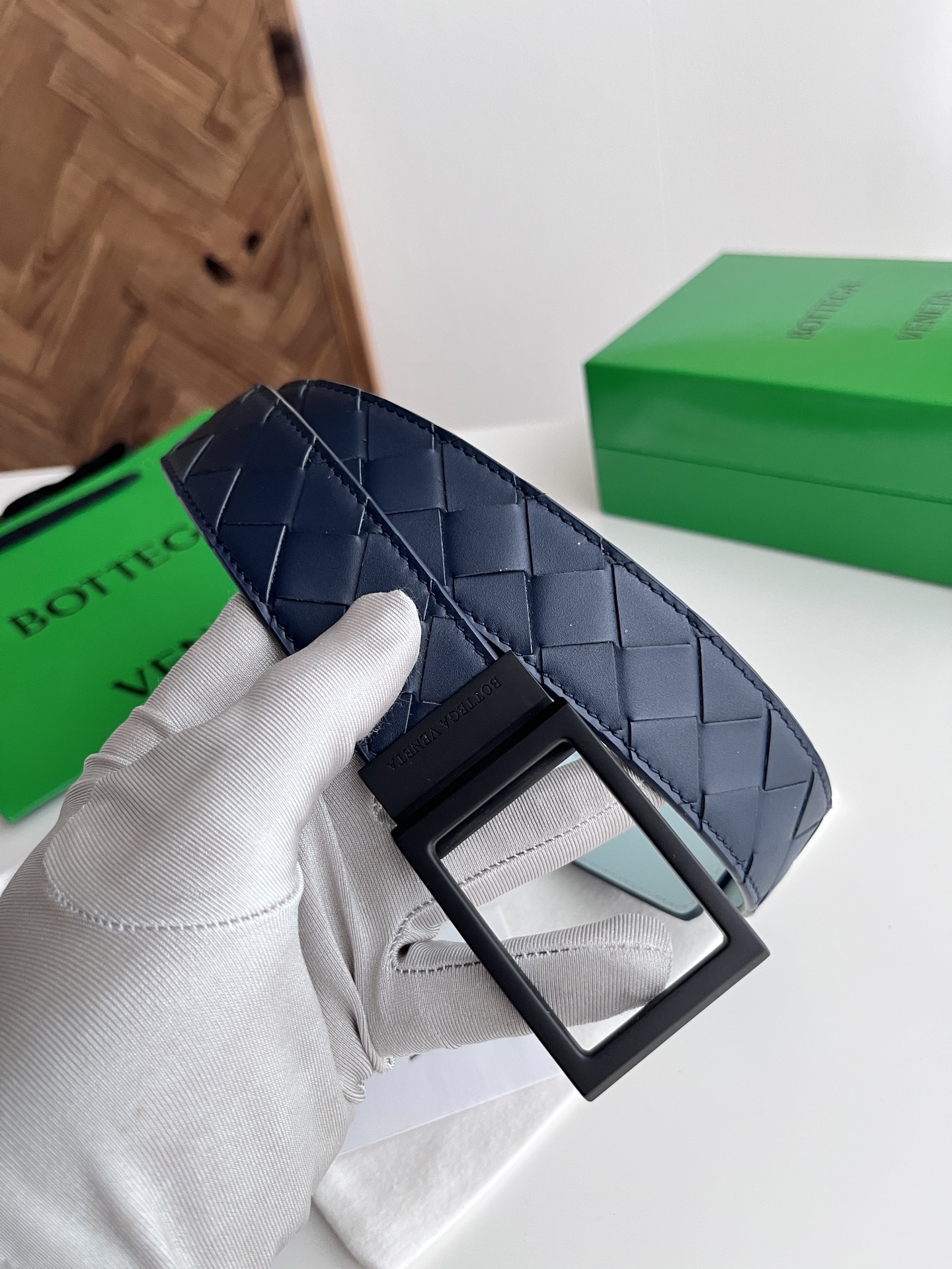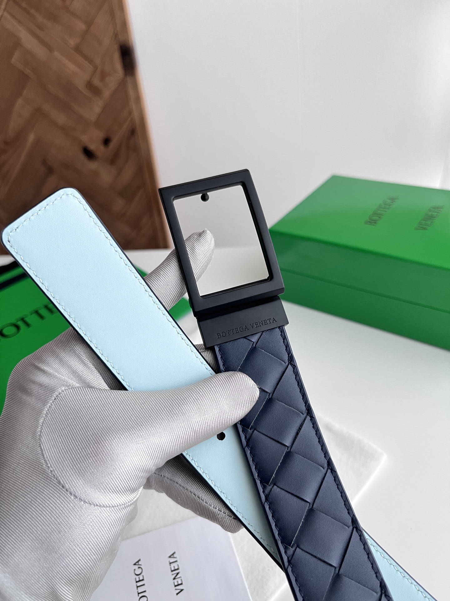 Bv 2025 latest men's woven belt double-sided use pure handmade intreccio large grid weaving double-sided Italian calfskin with slightly retro silver rotatable pin buckle front with logo belt width 35MM