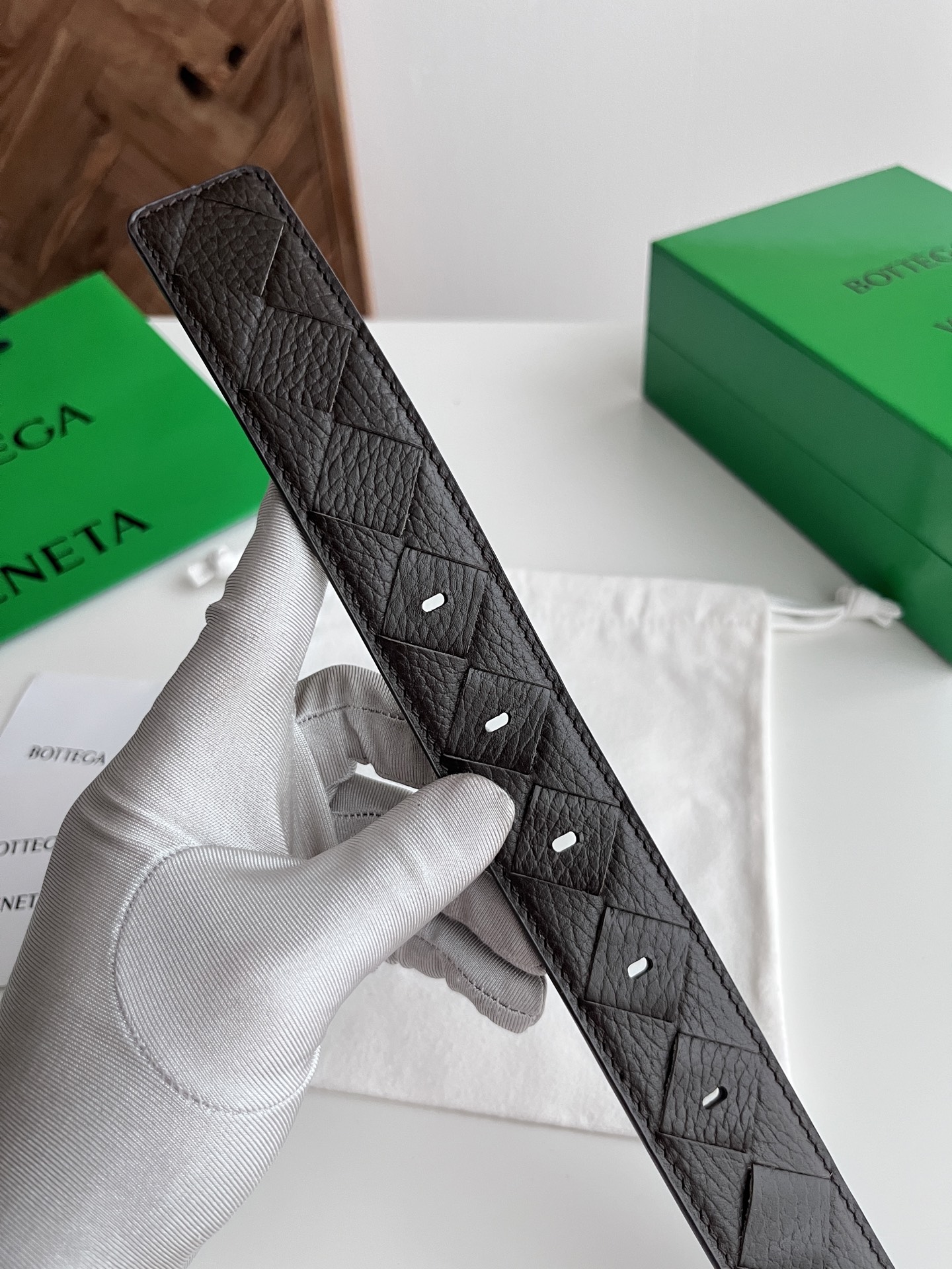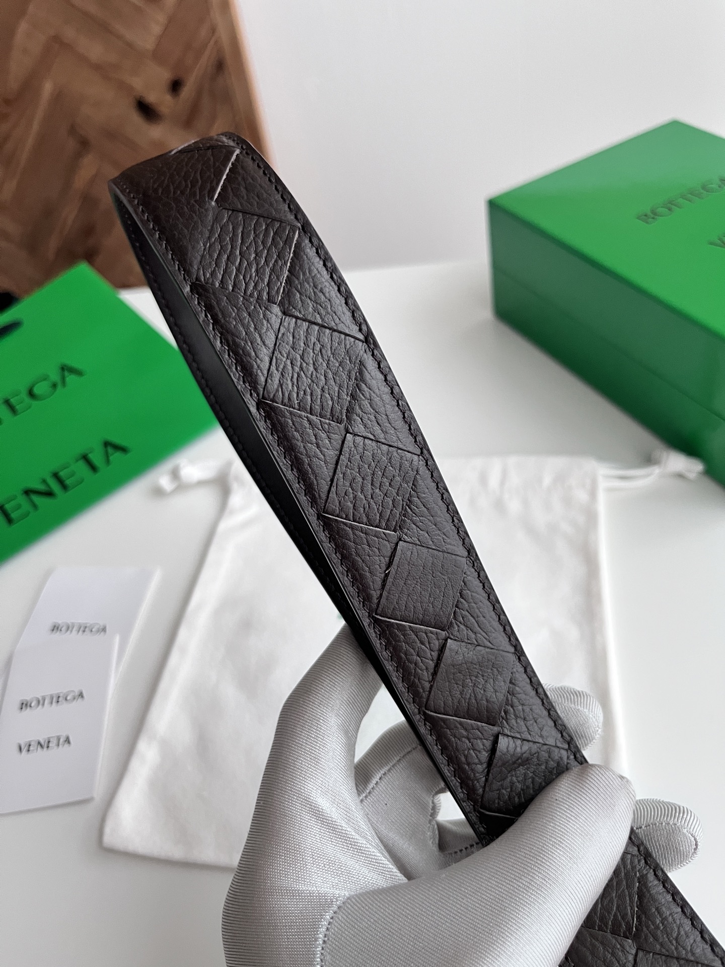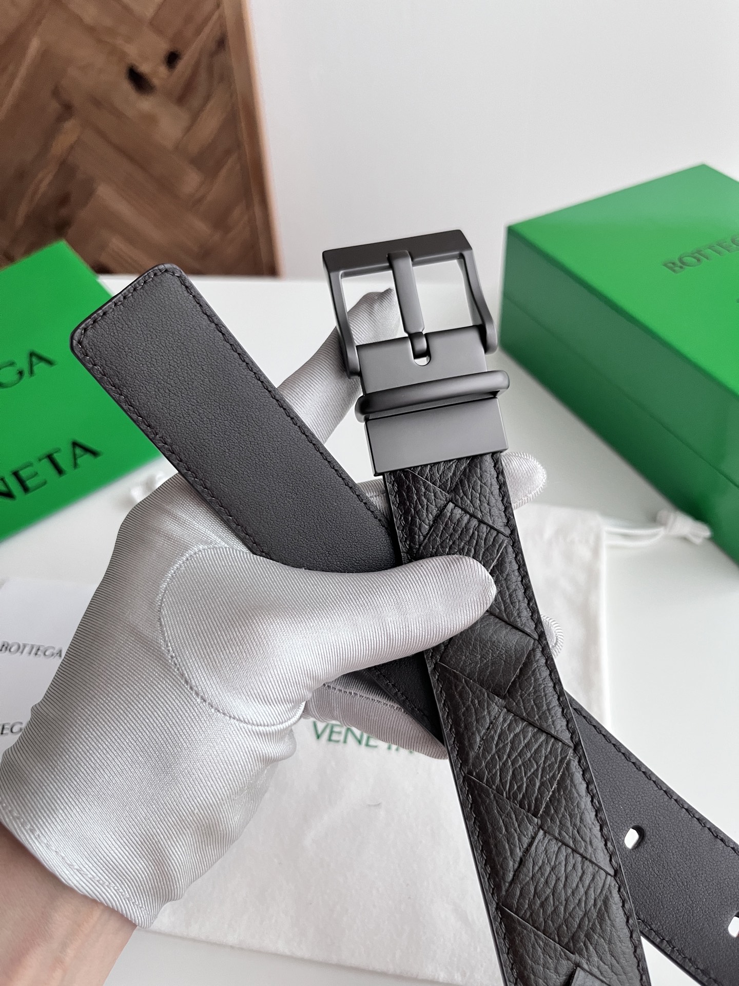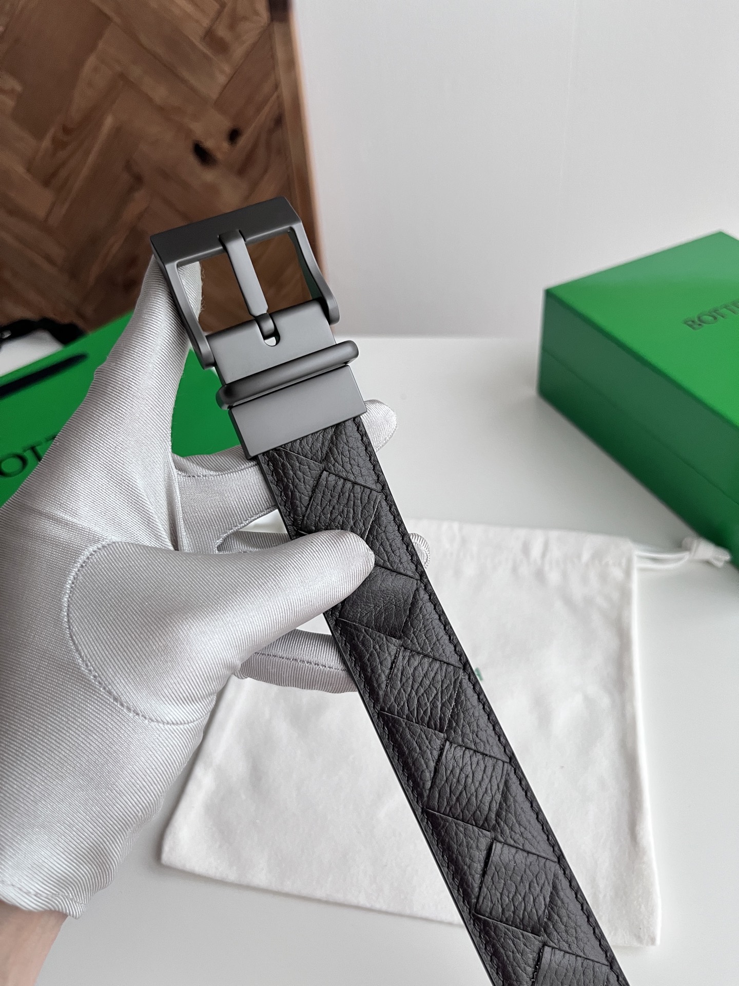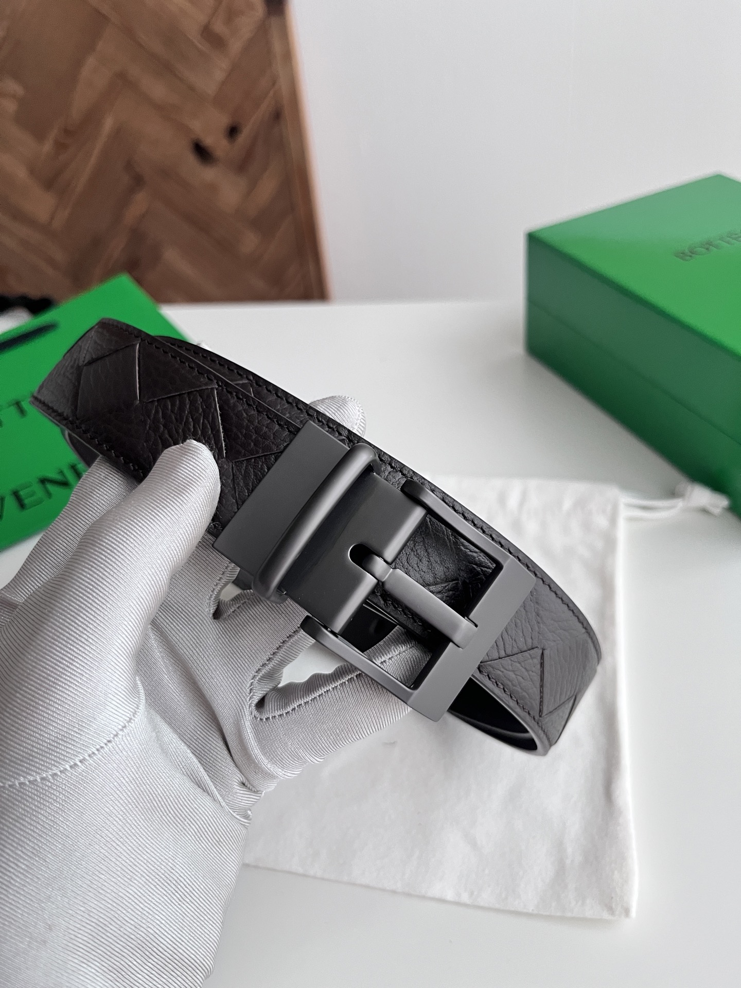 Bv 2025 latest double-sided men's woven belt pure handwoven intreccio large grid weaving Italian lychee grain calfskin with rotatable buckle design gun-color pin buckle width 35MM