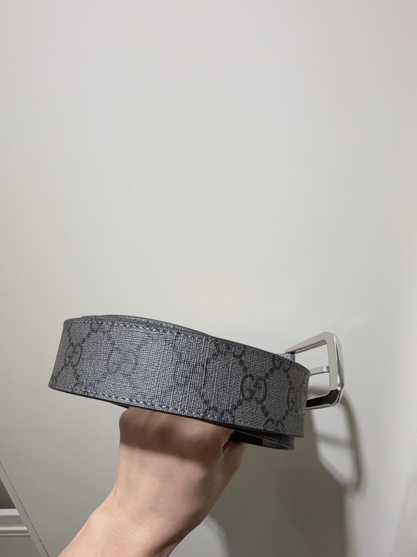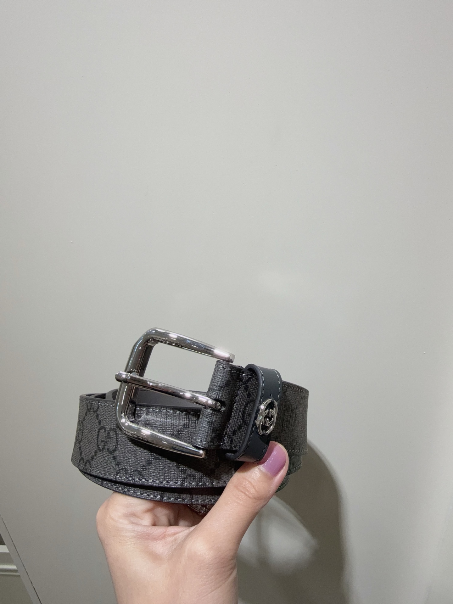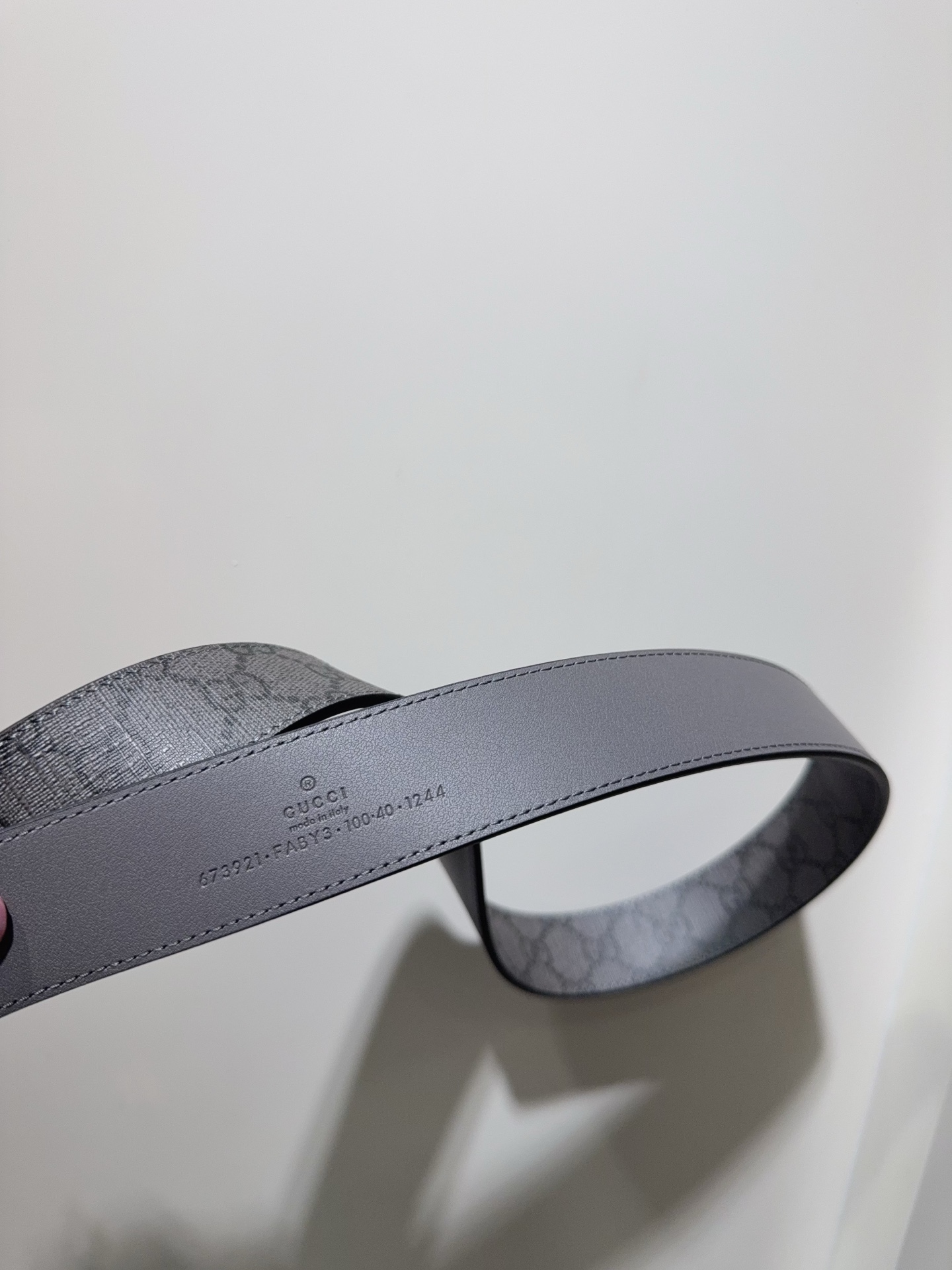 Belt with interlocking double G details GG Supreme canvas is reinterpreted in novel ways each season. This season, this iconic material infuses the brand's essence into this classic men's belt featuring a dark GG monogram pattern. The interlocking double G details add signature meaning to the overall design.