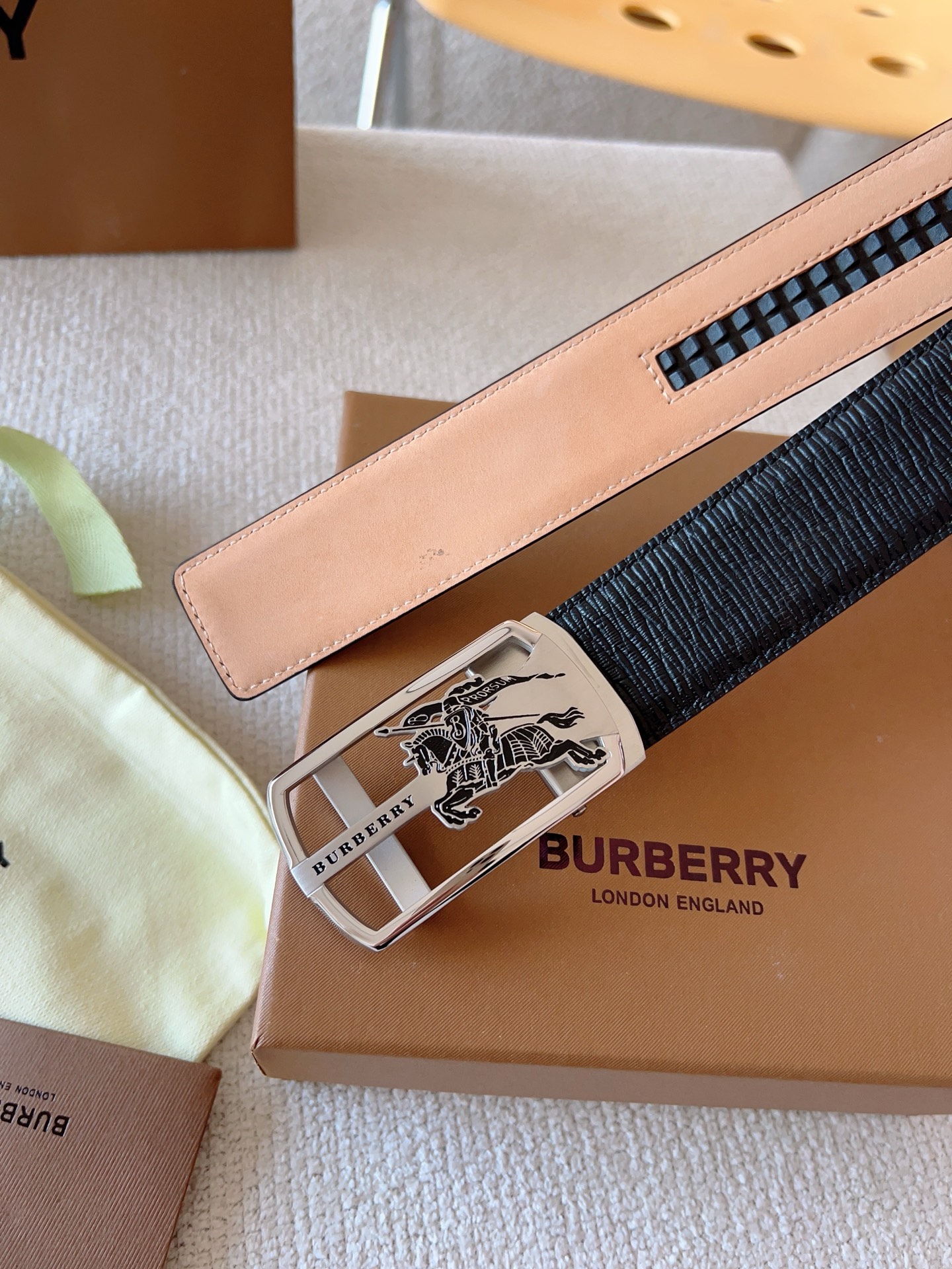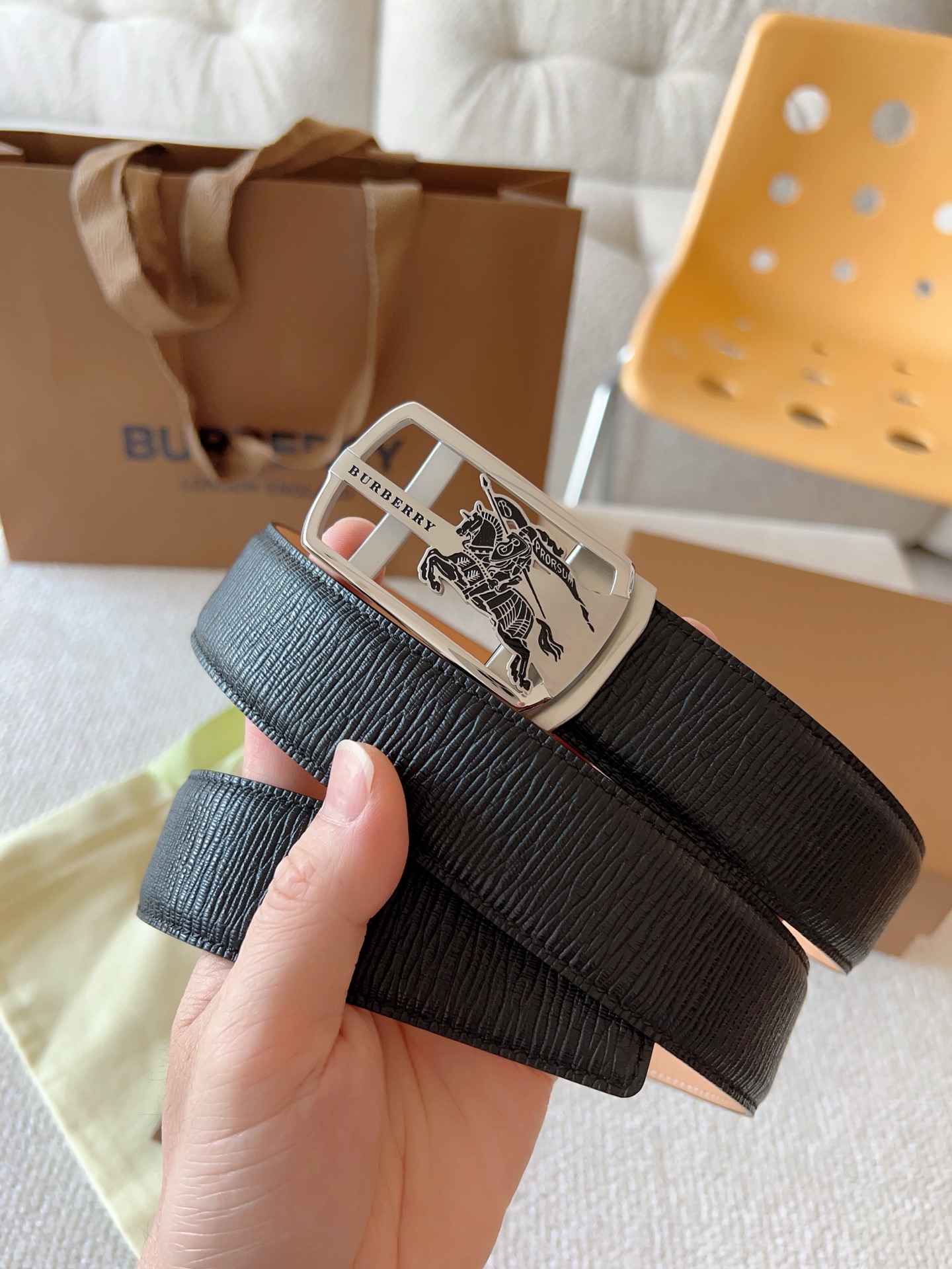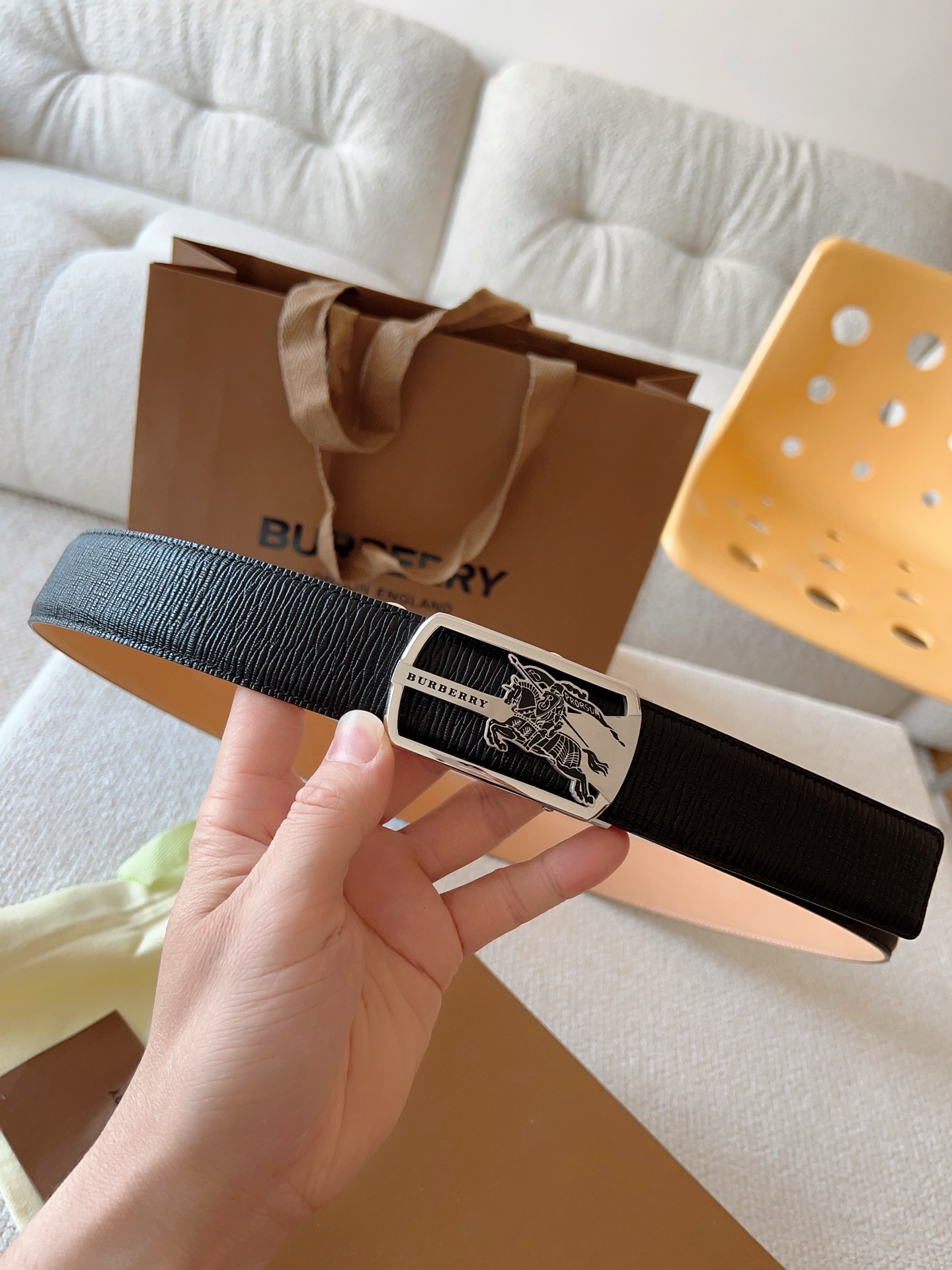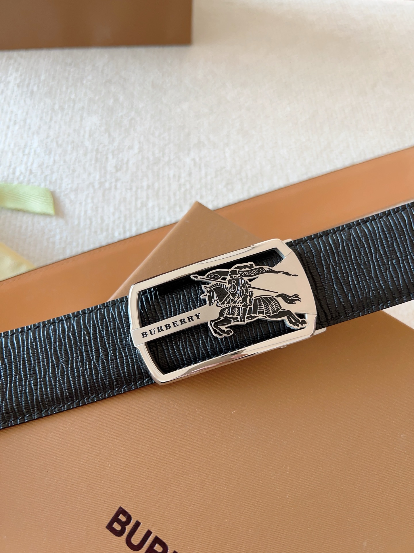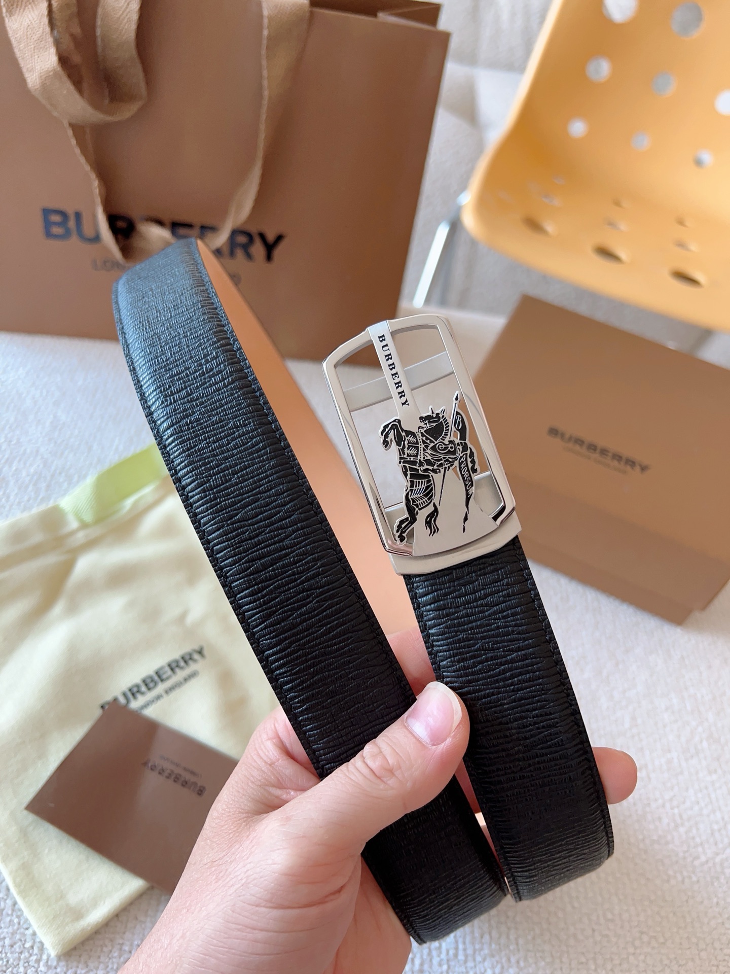 Burberry, custom smooth automatic buckle series. Original leather paired with steel buckle hardware, the belt is easy to wear; pull-out style allows adjustment to your suitable size. Width 35mm, create your own style.