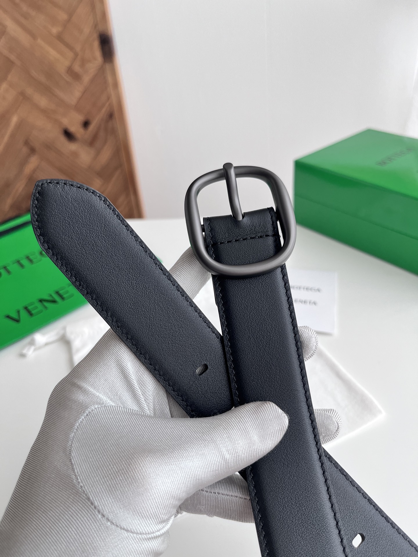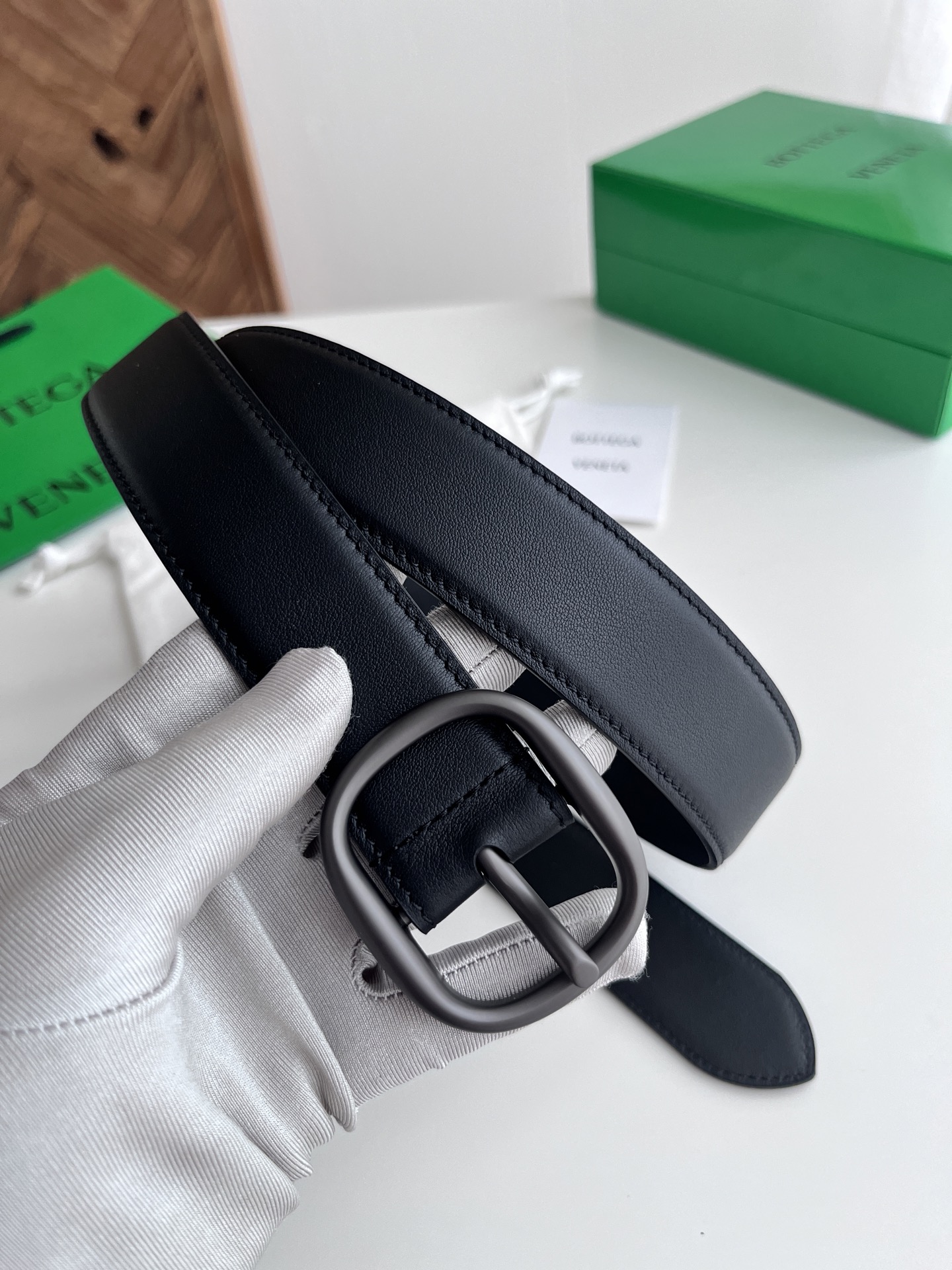 Bv 2025 latest men's belt double-sided Italian plain grain calfskin with slightly retro silver pin buckle side with logo width 35MM
