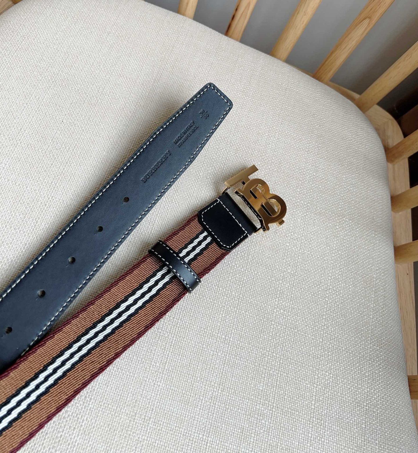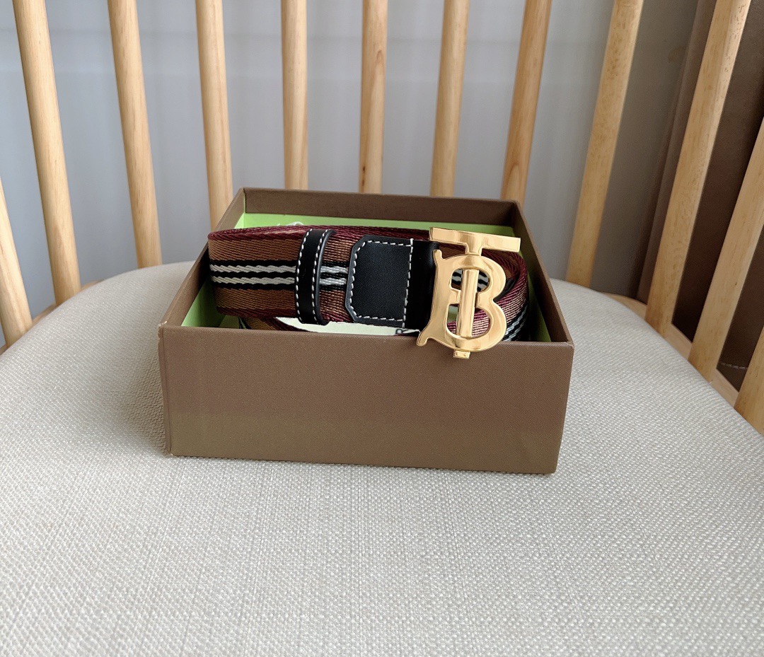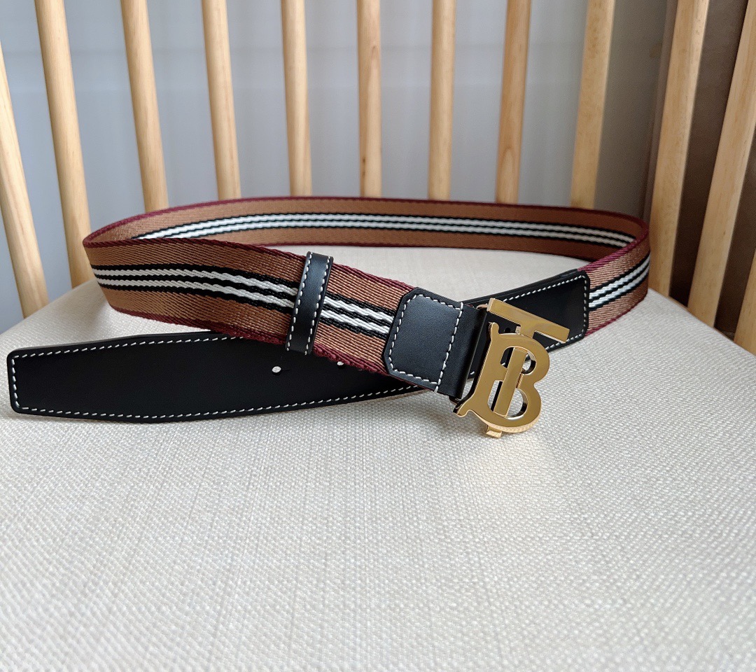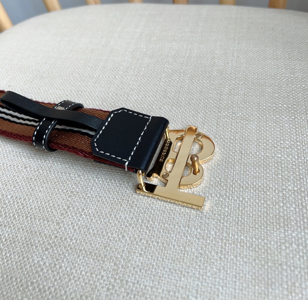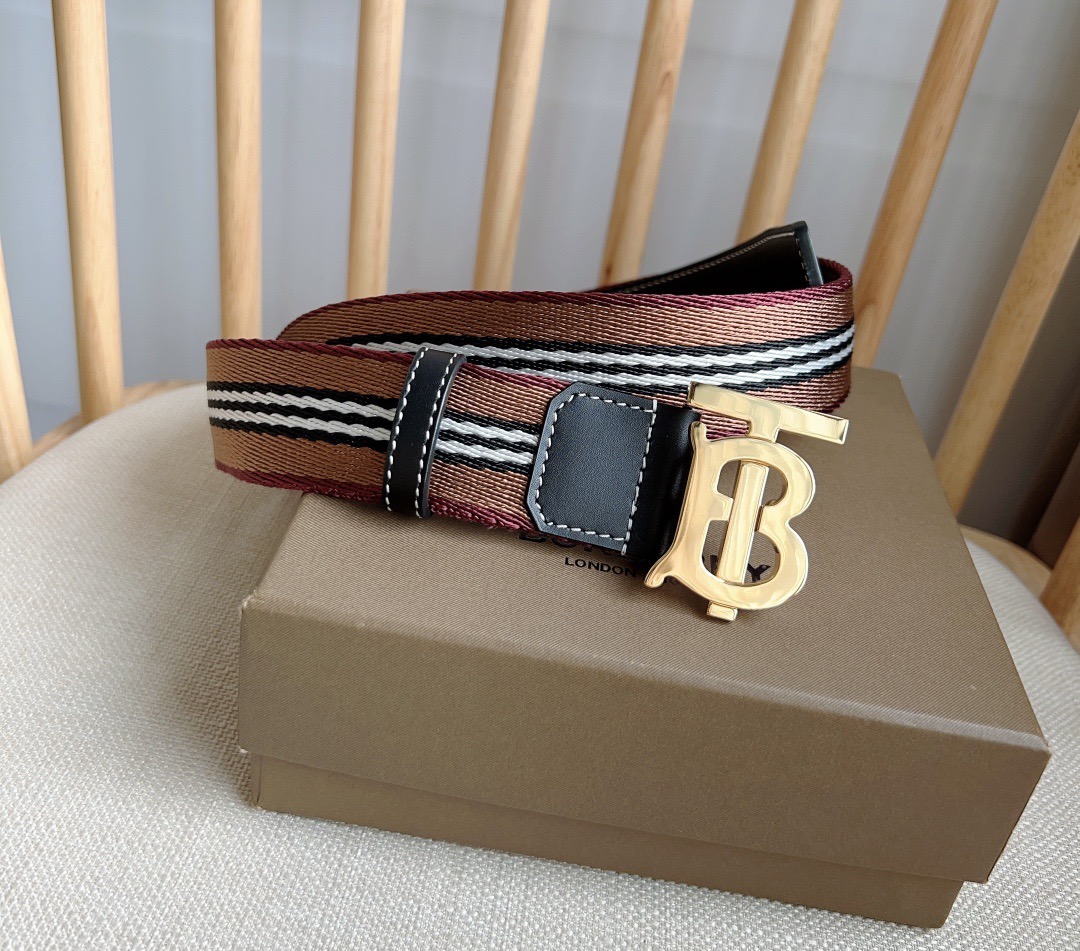 New Burberry boutique synchronization new arrival Italian crafted mesh belt decorated with jacquard spun process to create the brand's iconic stripe pattern using stitched leather trim width: 3.5cm exquisite elegant simple and generous