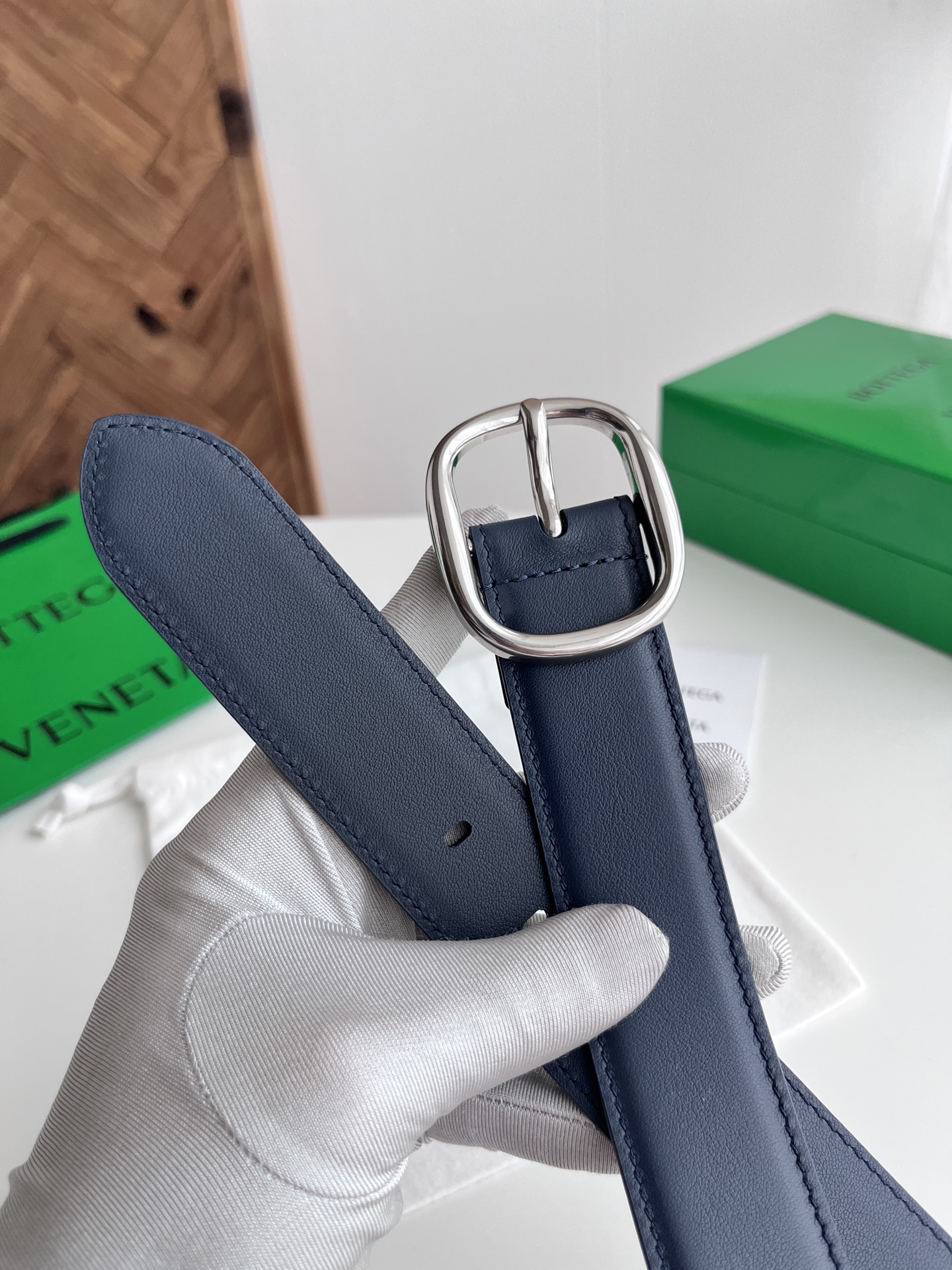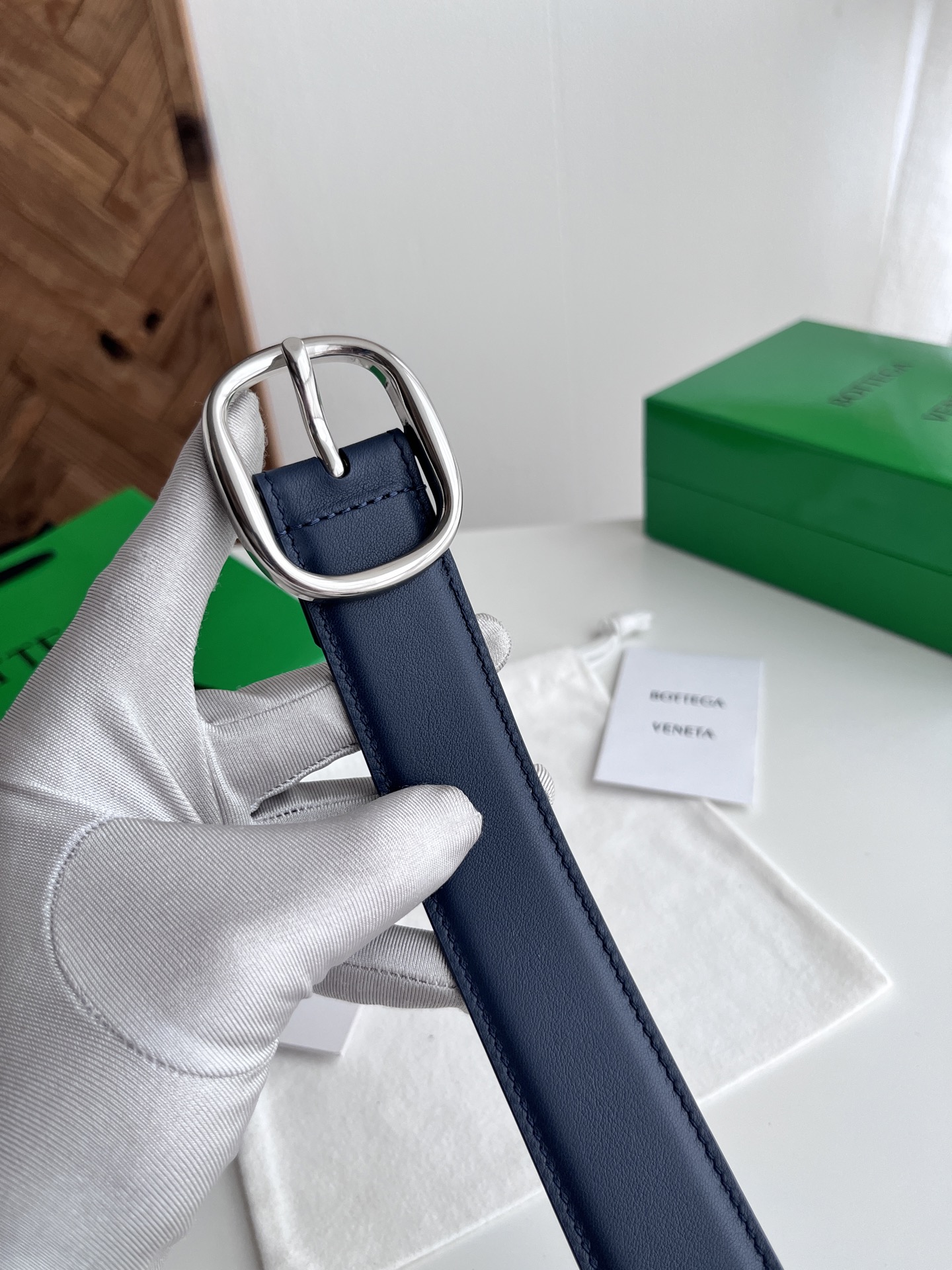Bv 2025 latest men's belt double-sided Italian plain grain calfskin with slightly retro silver pin buckle side with logo width 35MM