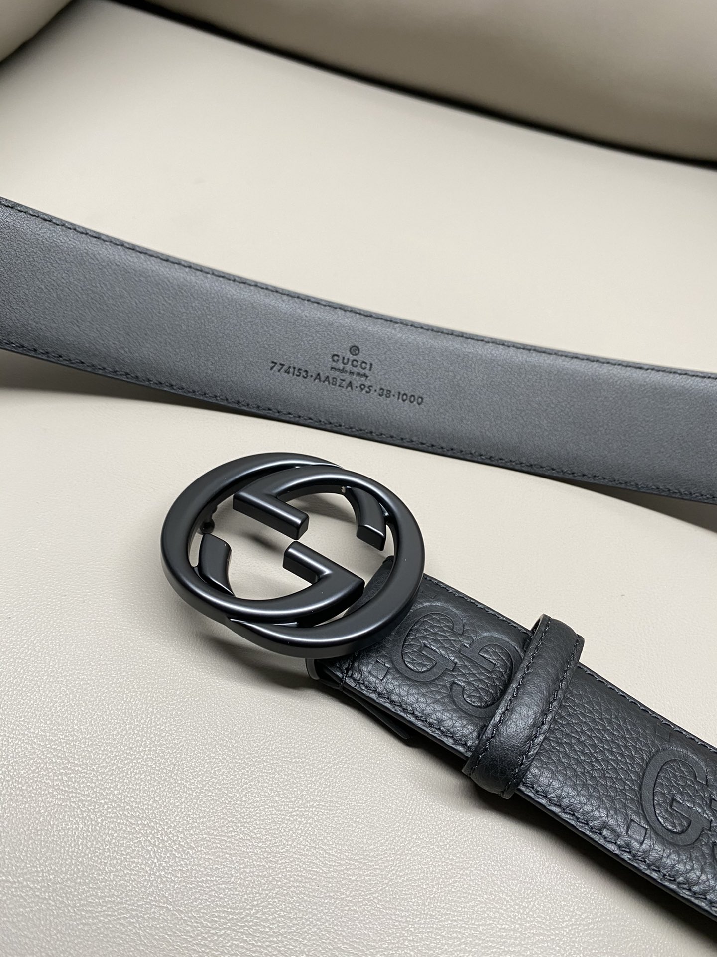 Gucci men's embossed leather belt with metal buckle, 3.7cm width