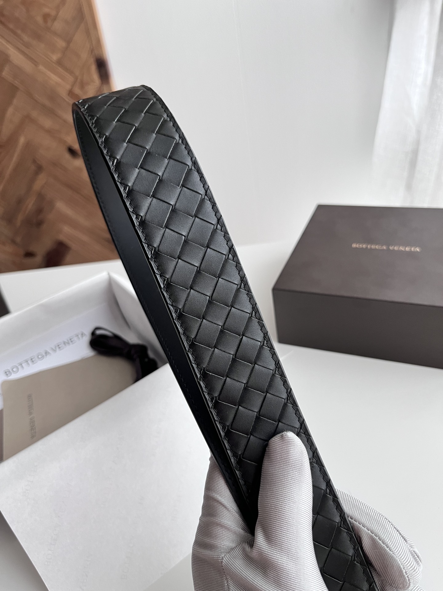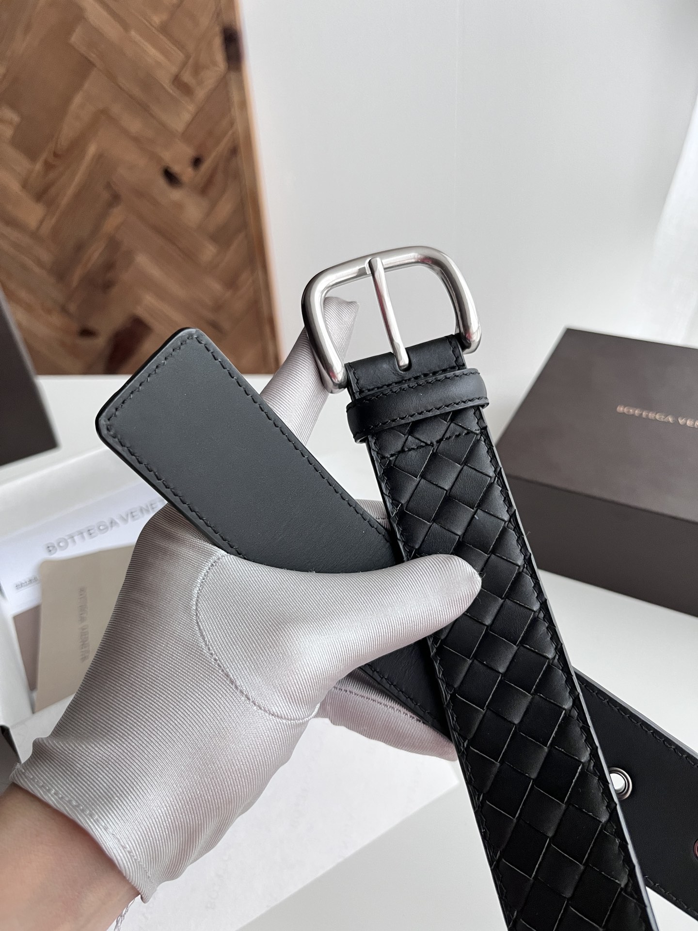 BV 2024 New Wide Version Men's Belt Pure Handmade Intreccio Woven Italian Double-Faced Calfskin Paired with Slightly Retro Silver Pin Buckle Belt Width 4.0cm Color: Black