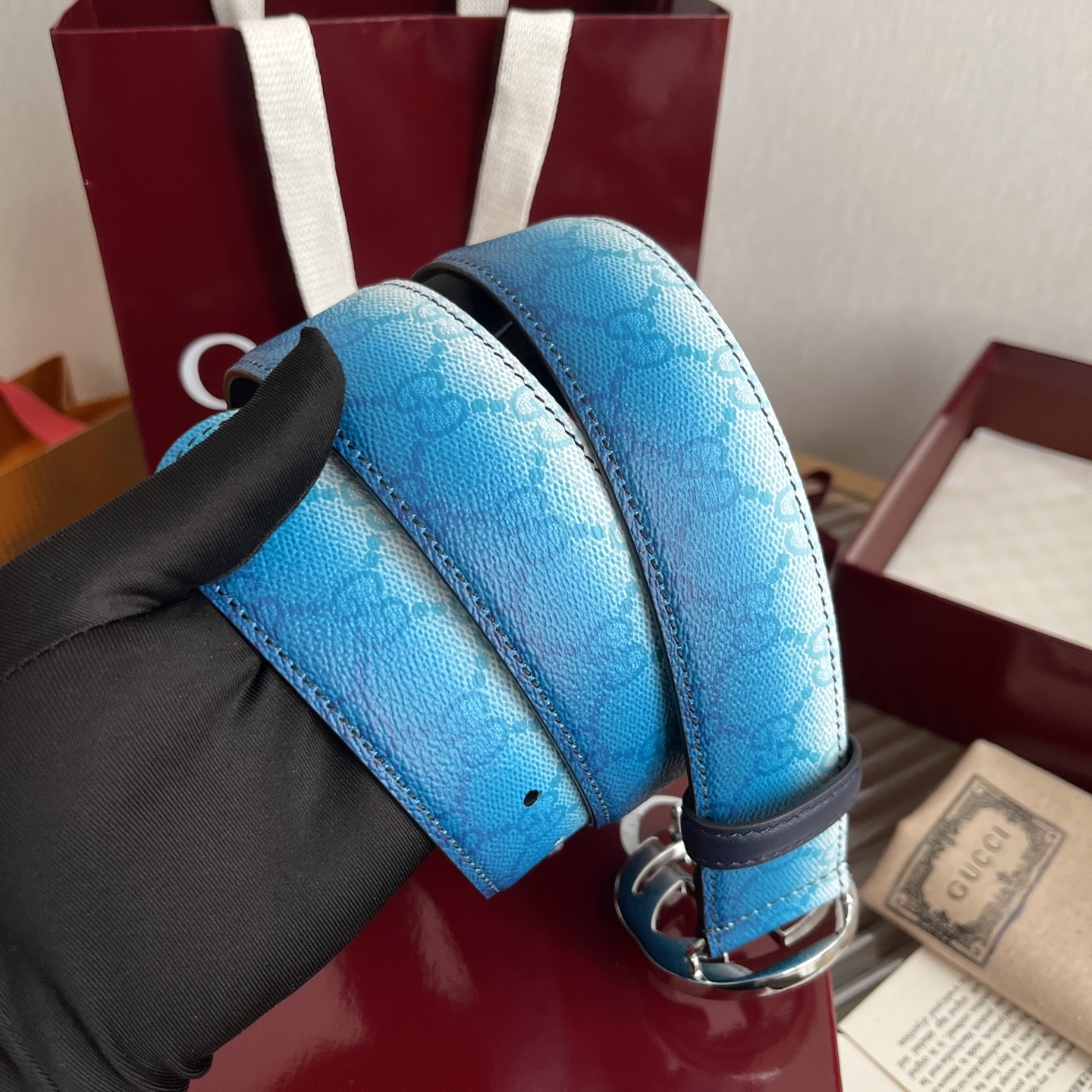 G U C C I counter new product available width 4cm brand exclusive custom canvas fabric blue and white color matching with exquisite precision electroplated classic buckle