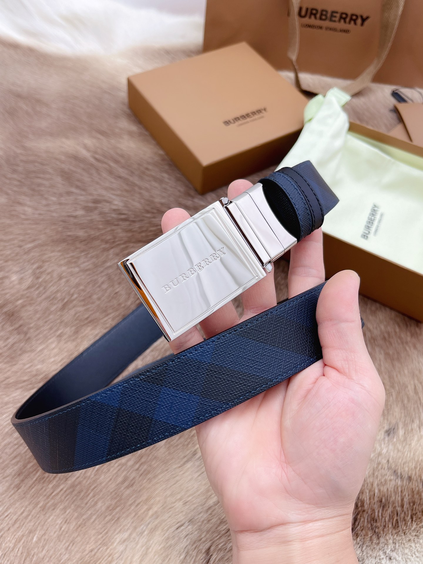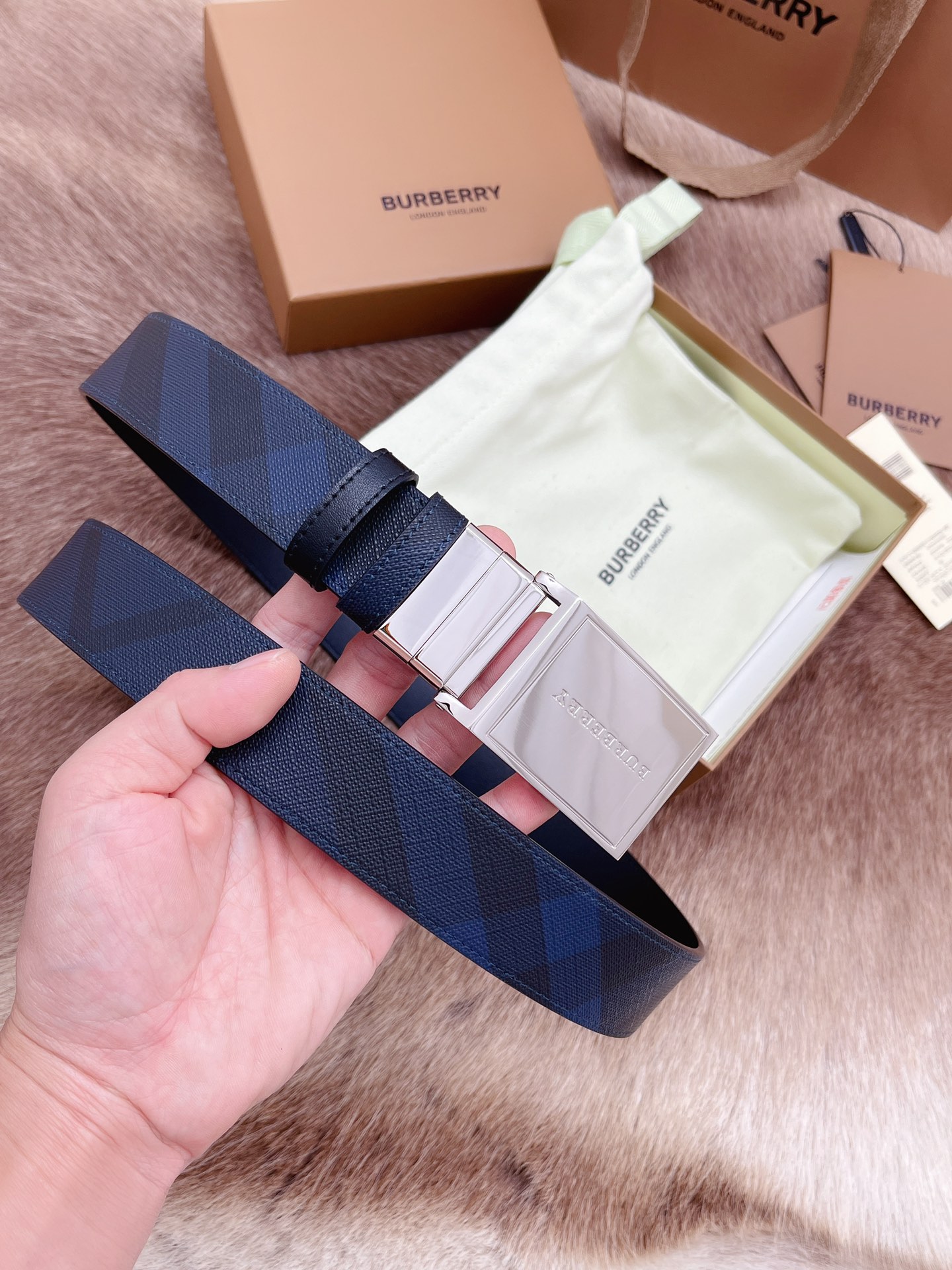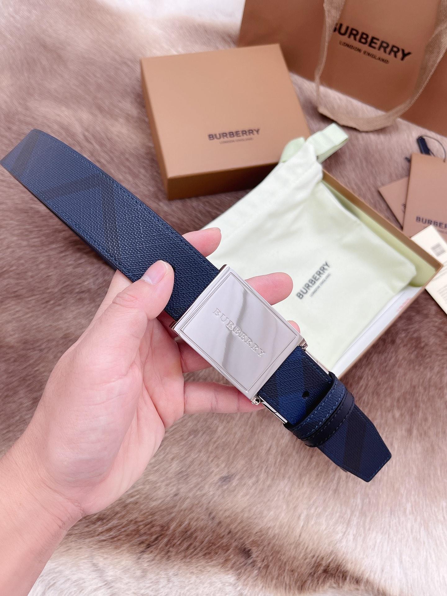 Burberry men's belt trading company order export Italy genuine size 3.5cm OEM factory original leather custom brass hardware vacuum electroplating to create the original taste