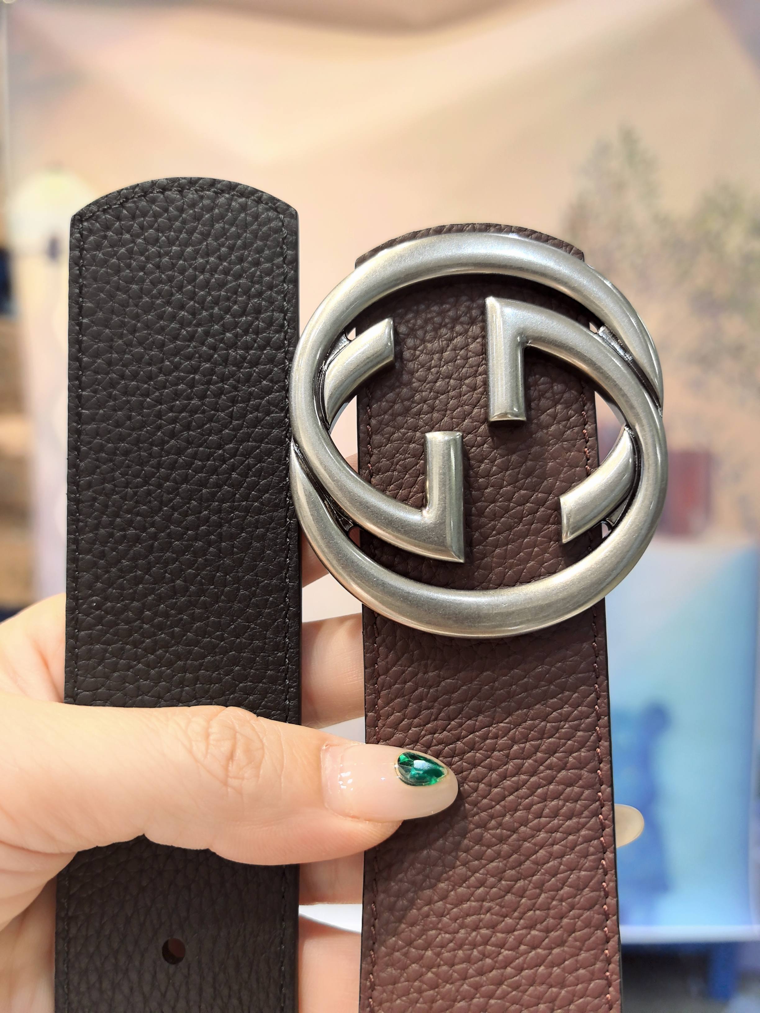 Gucci black leather, 4.0 cm, French materials, top quality.