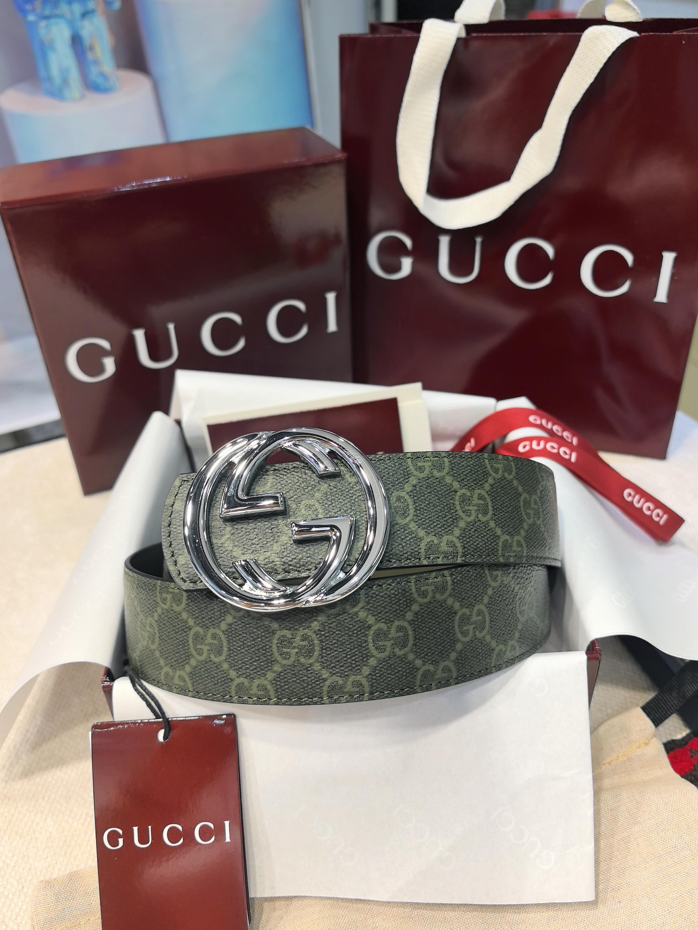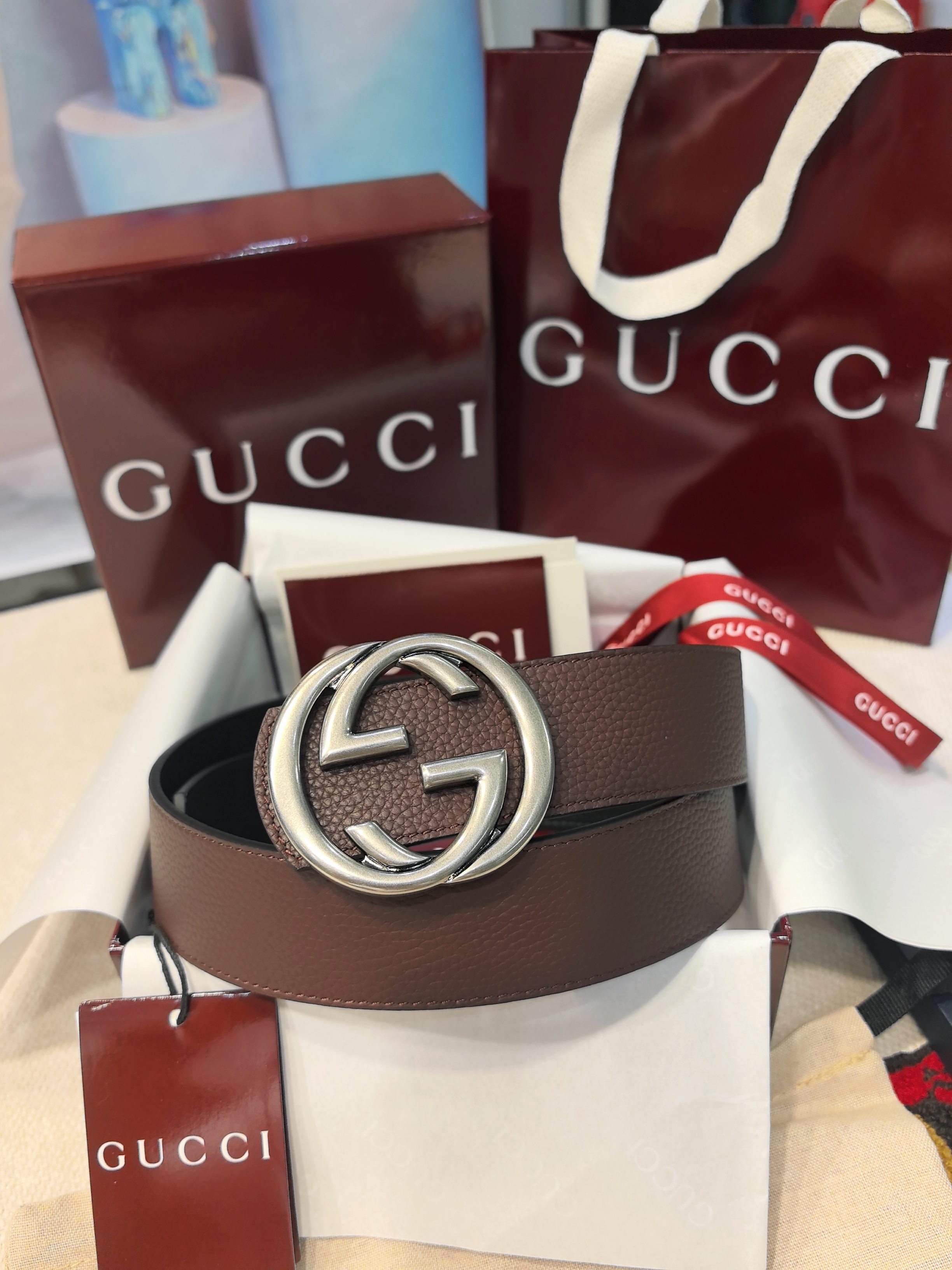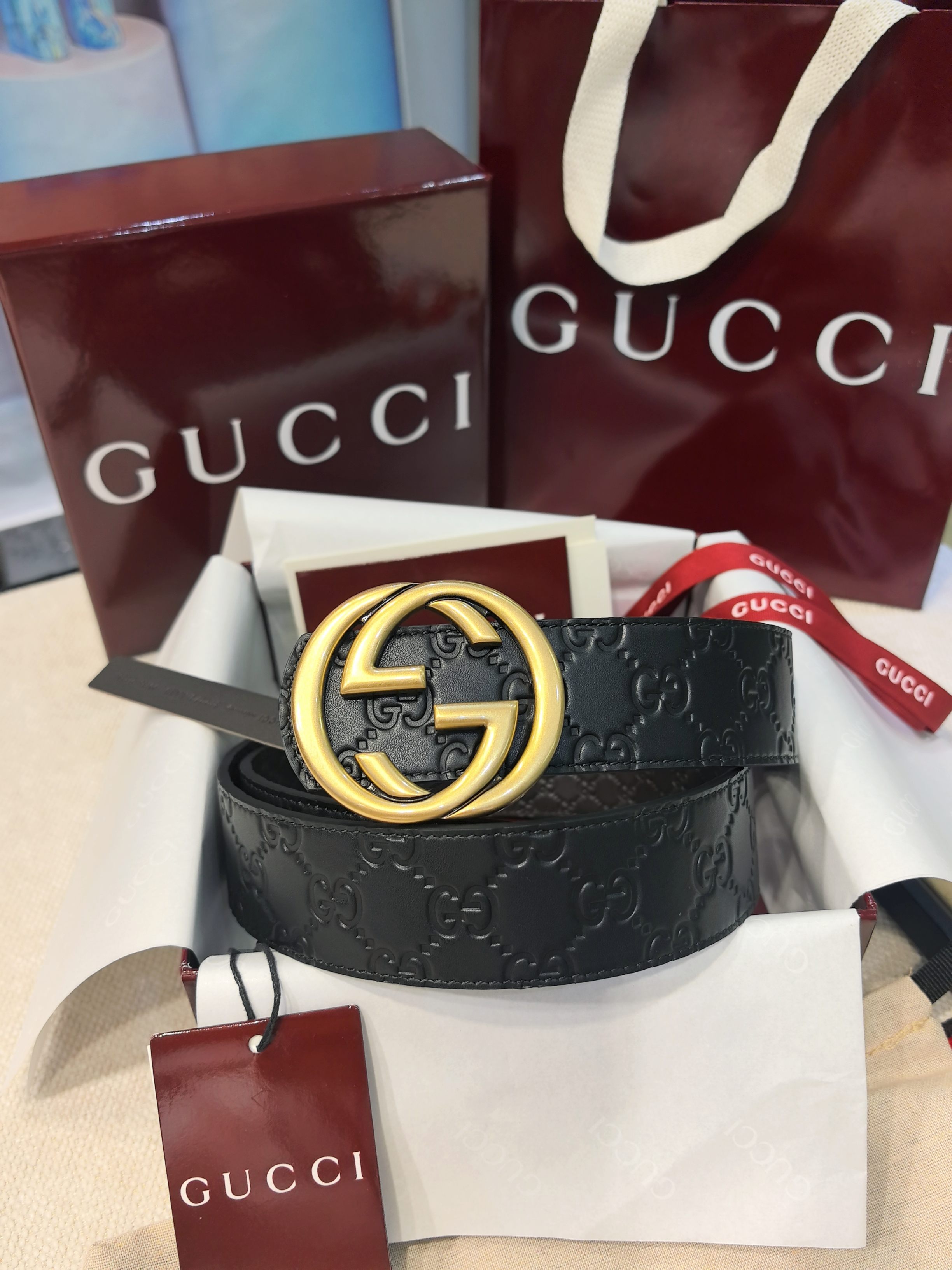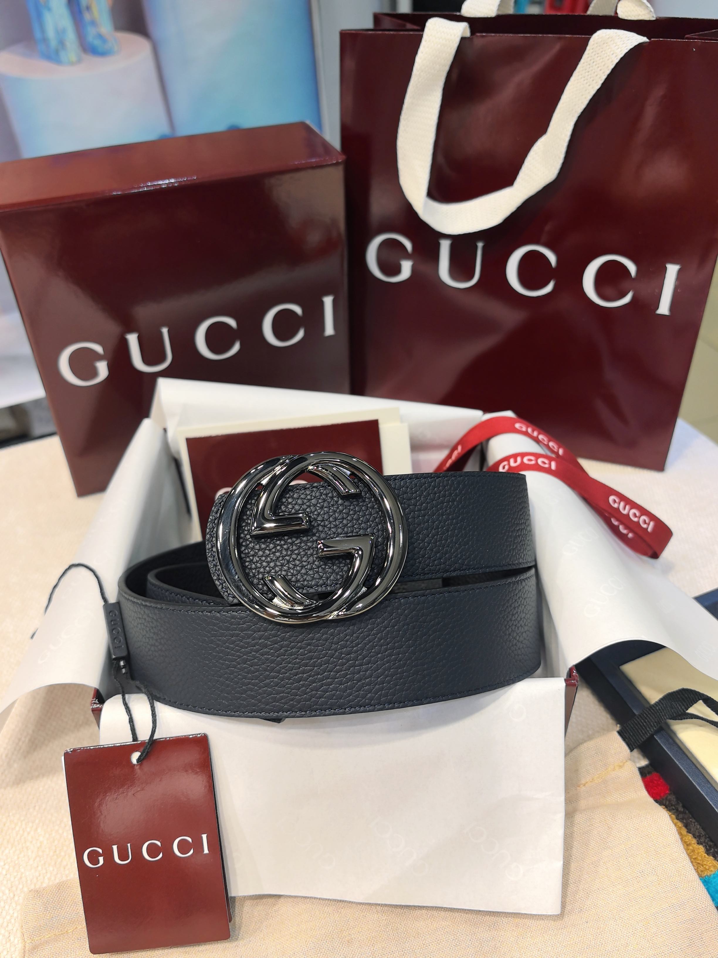 Gucci black leather, 4.0 cm, French materials, top quality.