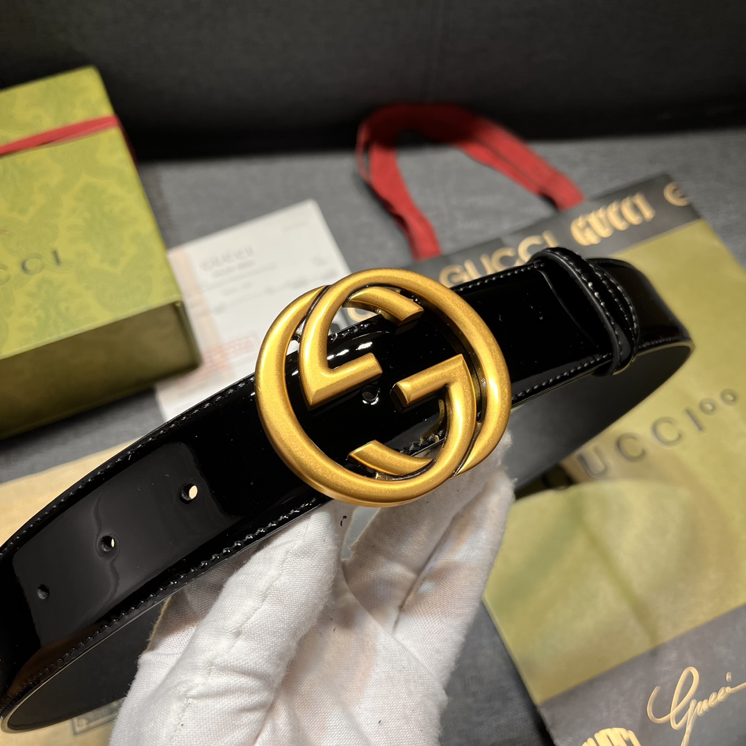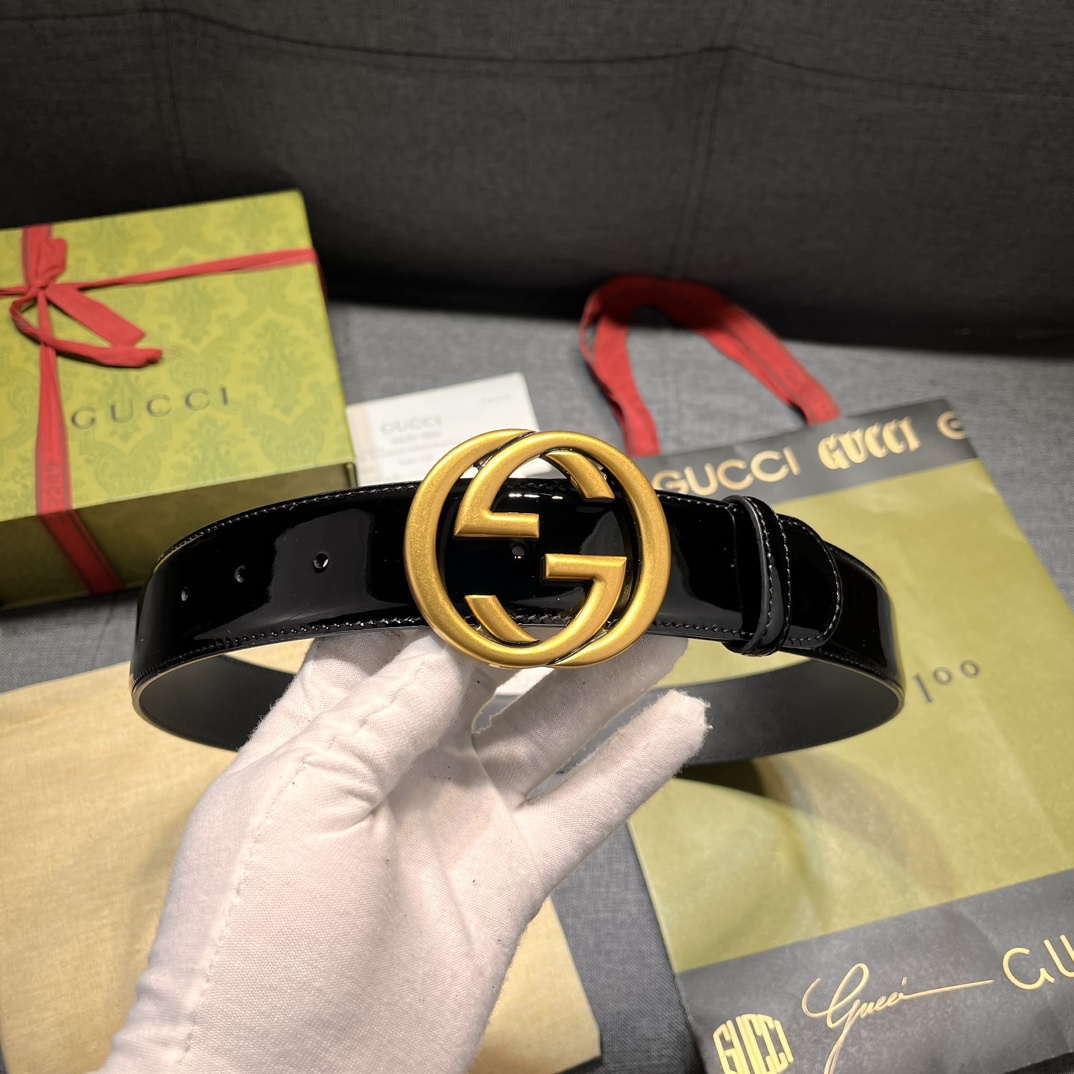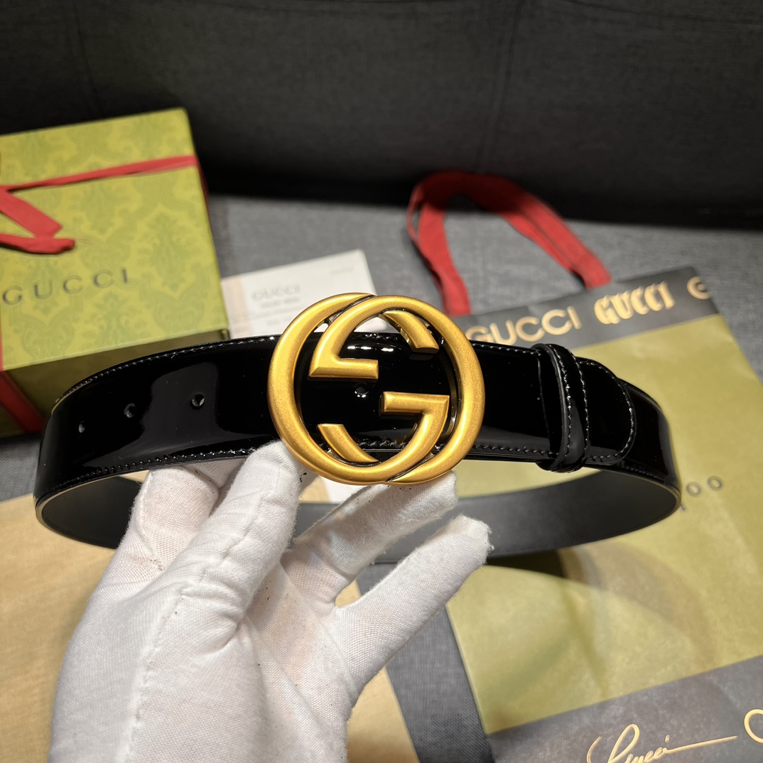Gucci width 4.0cm new model classic details and modern elements add eye-catching highlights to Gucci's new series. Skillfully integrated with classic letter interlocking shape accessories, paying tribute to the brand founder Mr. Guccio Gucci. This belt is made of top-layer leather, meticulously decorated with GG belt buckle