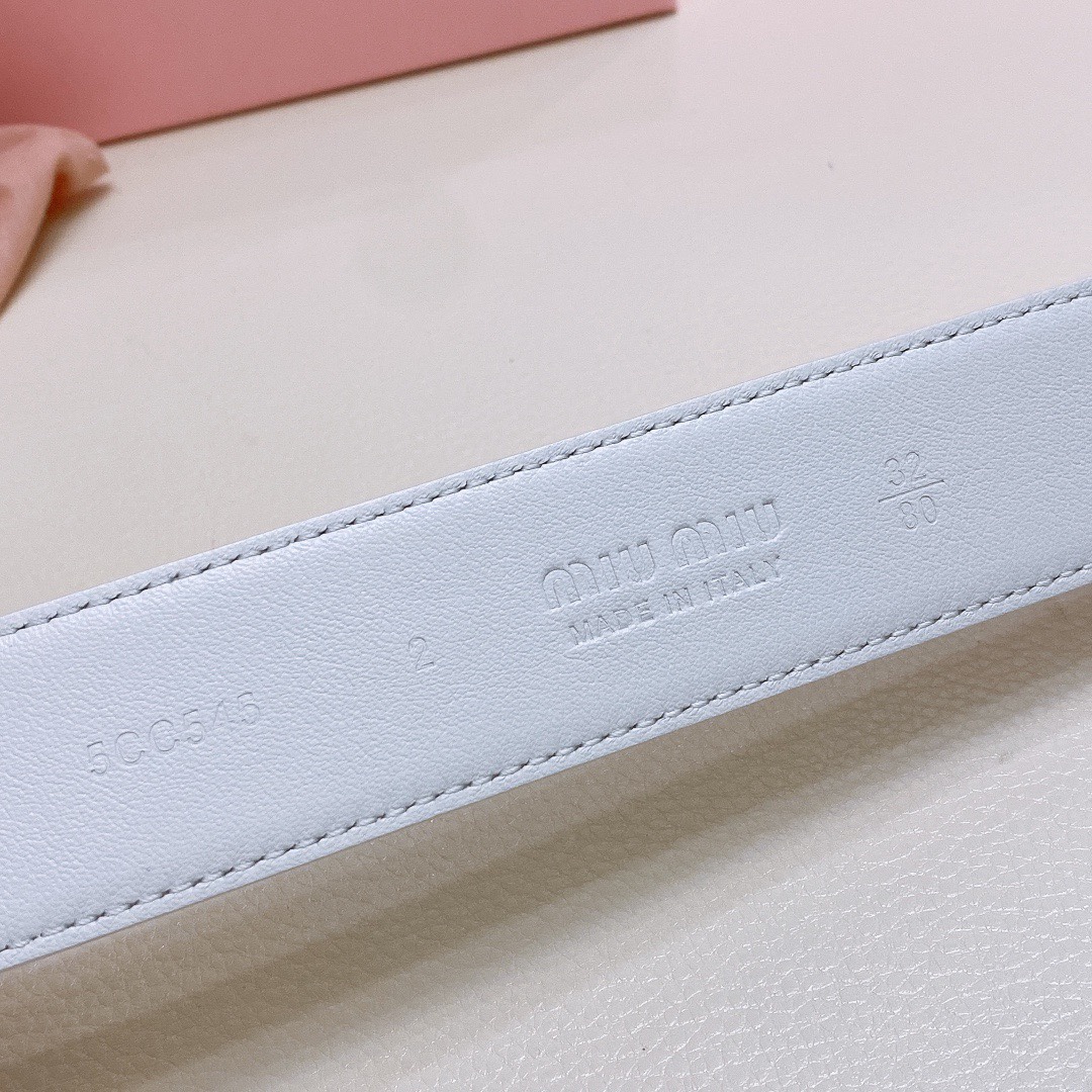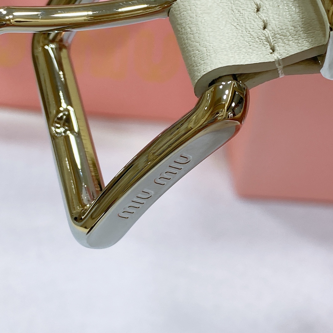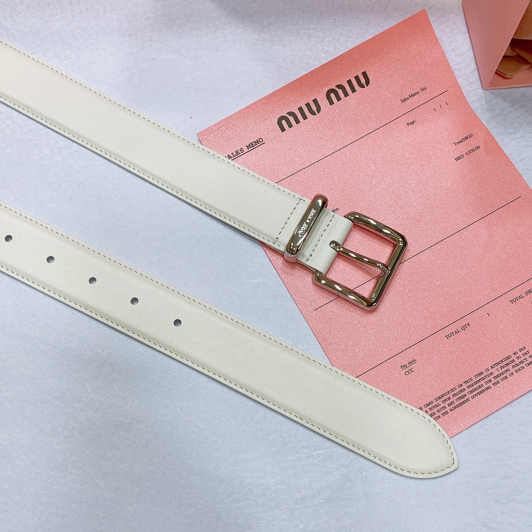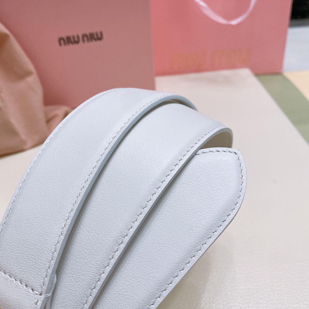 miumiu 23 metal buckle. The belt loop is adorned with a laser-engraved logo. This leather belt features a simple and elegant design, with the belt loop bearing the Miu Miu logo. Imported cowhide belt 3.5cm