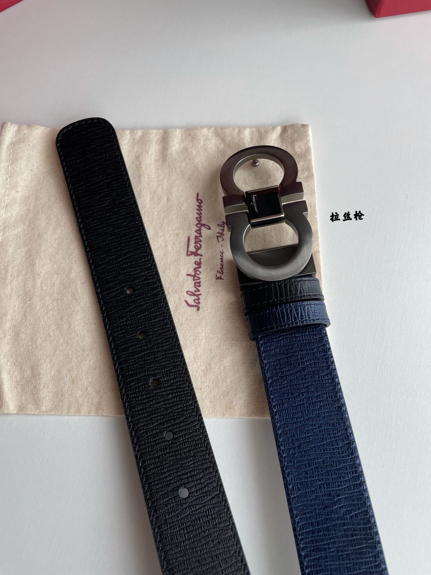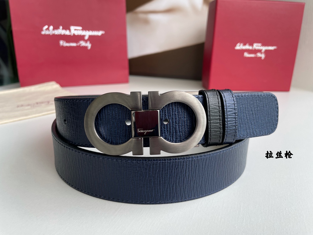Good finds—Ferragamo men's counter version metal buckle, top grain leather double-sided external belt, suitable for business, commuting, and casual occasions. 3.5cm