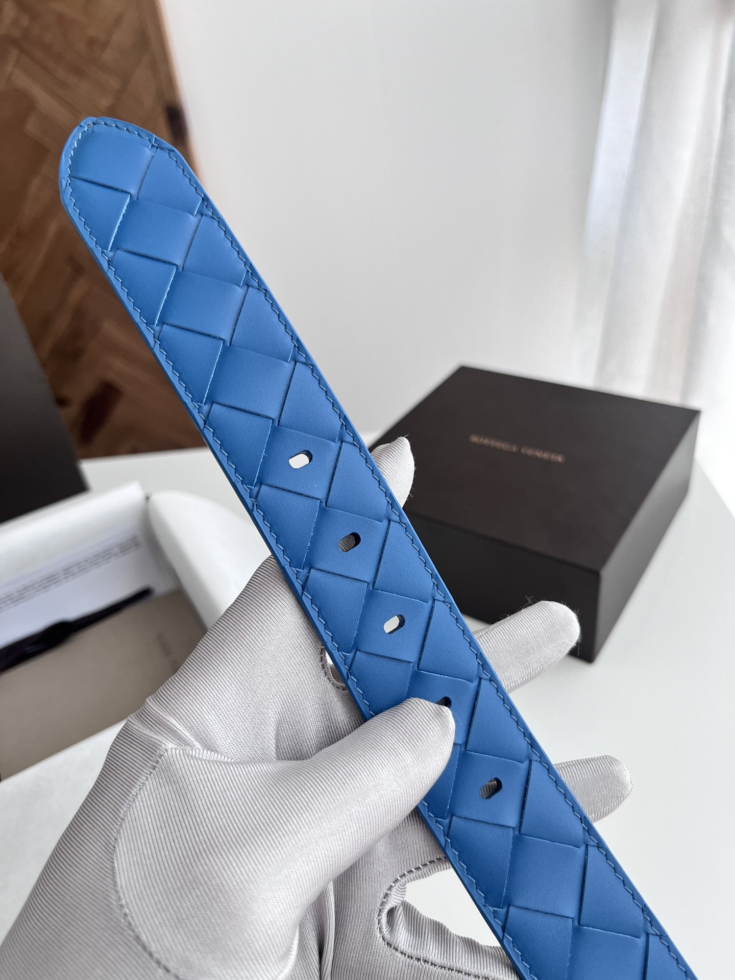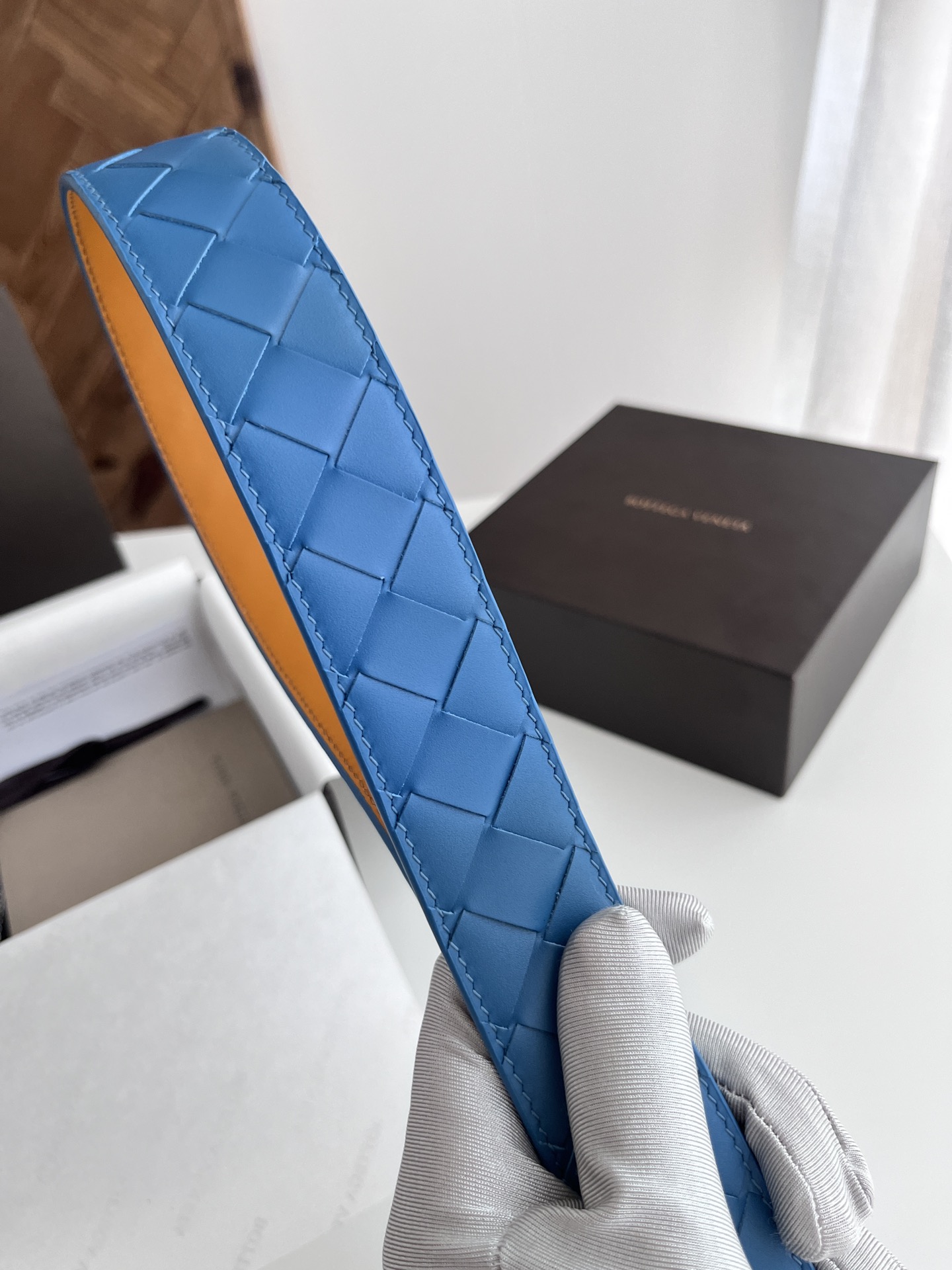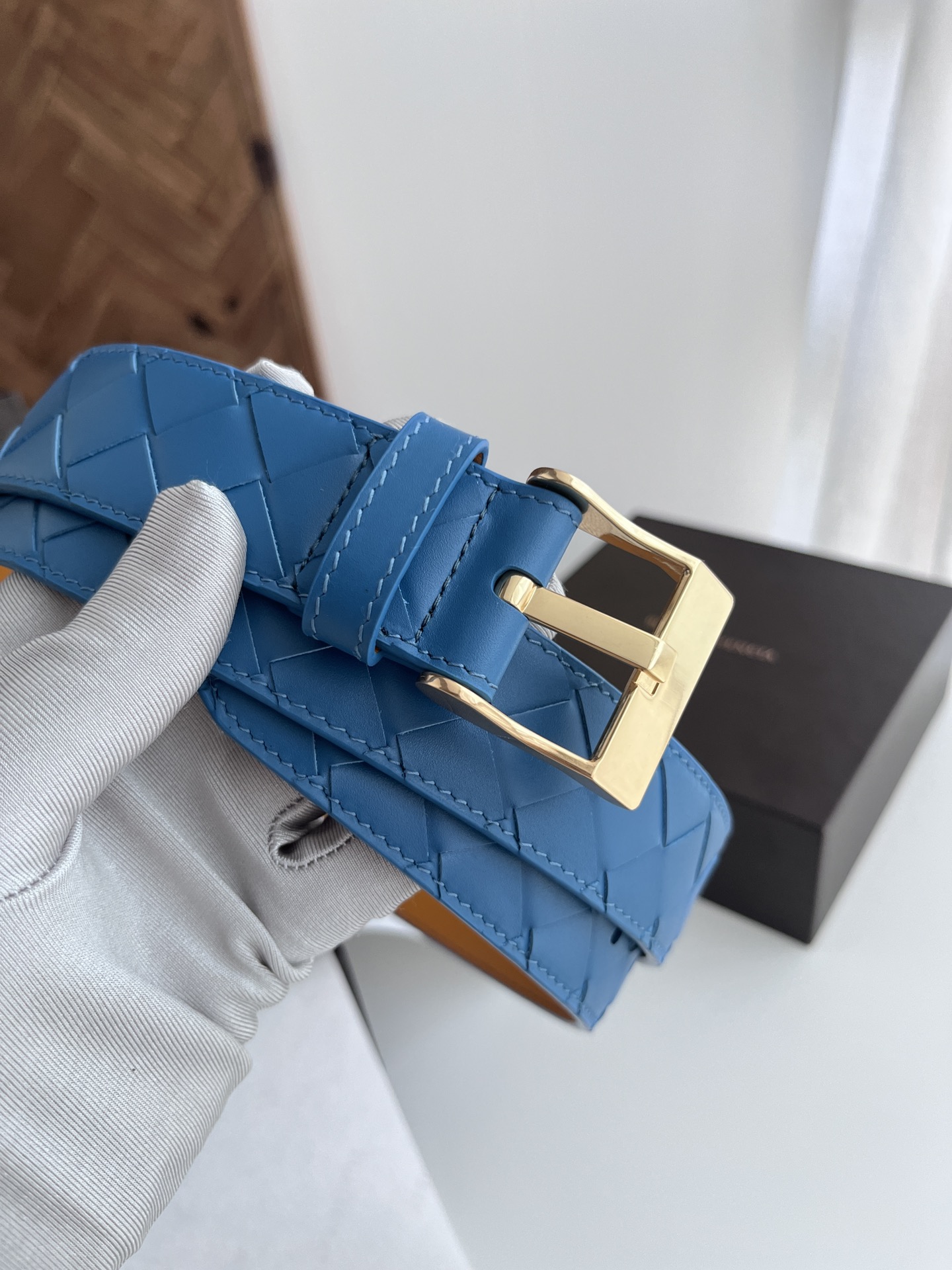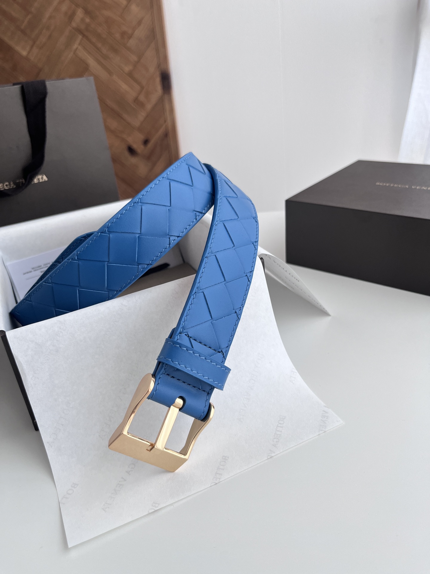 BV 2024 New Men's Belt Fully Handcrafted Large Intreccio Weave Italian Calfskin Featuring New Buckle Design Slightly Retro Gold Tone Pin Buckle Belt Width 3.5cm Color: Travertine Green + Golden Brown