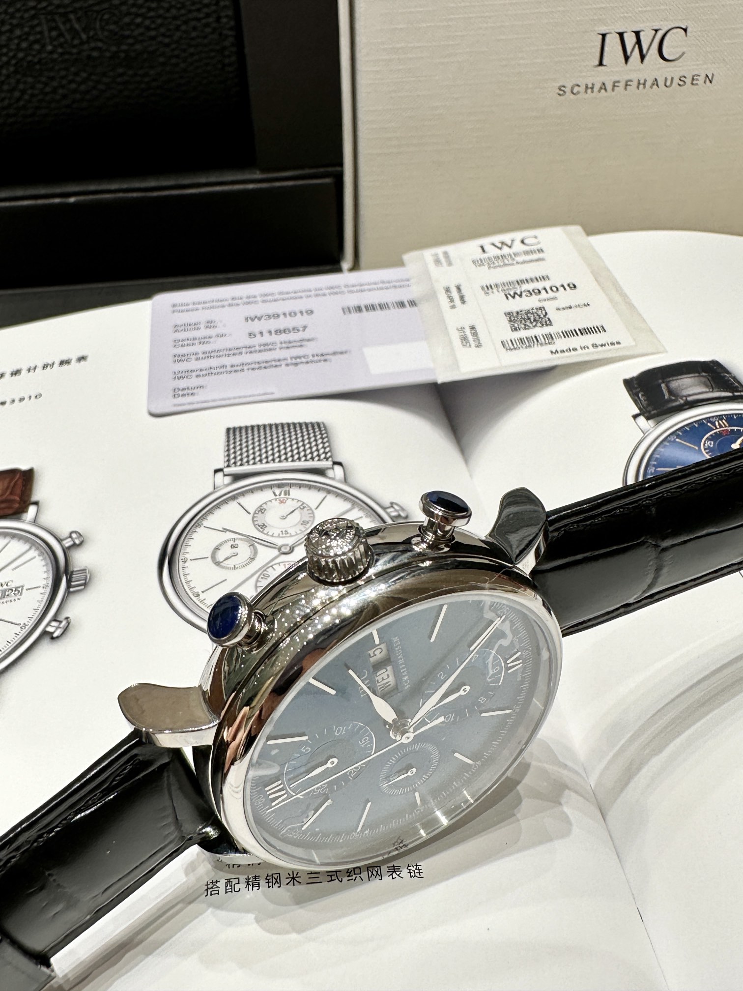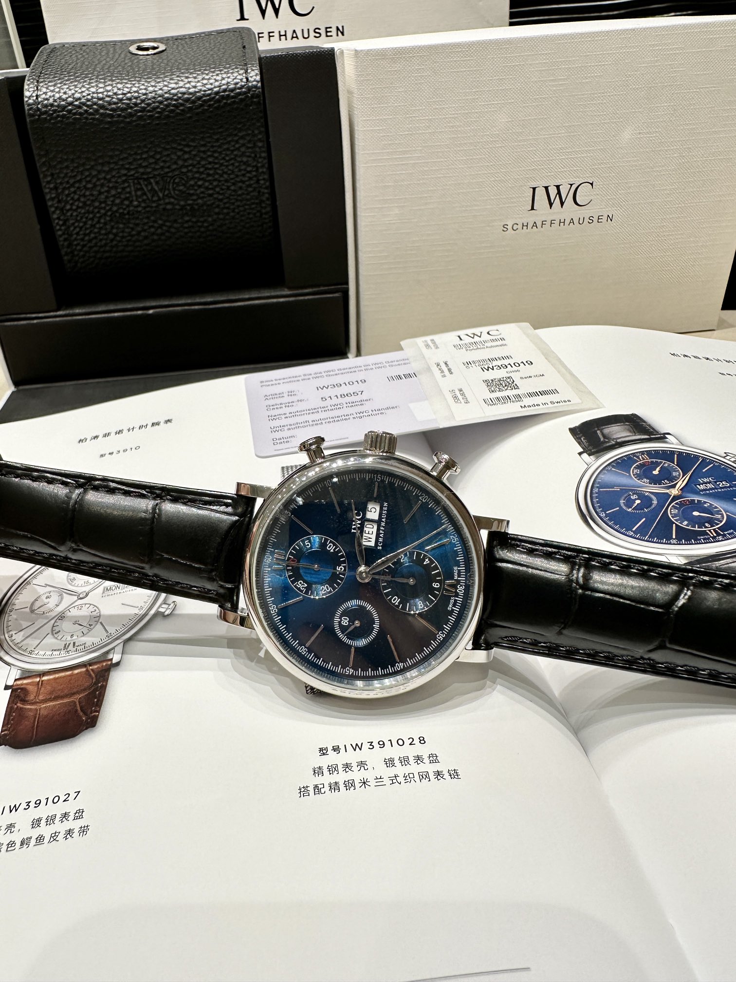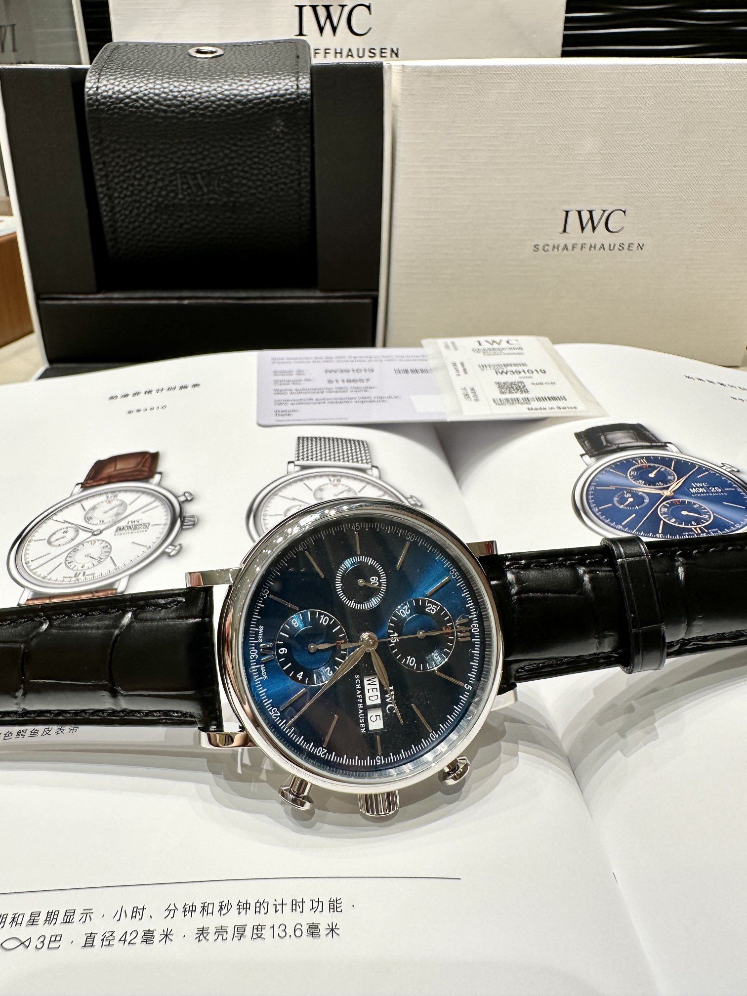 Limited edition! Premium goods! Export channel orders! Original sealed! Only missing a distributor seal to be genuine! But we sell it at a replica price! The famous IWC Portofino mechanical six-hand chronograph watch, the Gentleman of the watch world, always exists like a gentleman, with a simple style. Two types of movements: Shanghai 7750 and original Swiss Eta-7750 automatic mechanical movement (which IWC itself named 79320). Anti-glare sapphire glass, the ideal watch for most men: clean dial, slim, low-key, and meaningful. Dress watch with 42mm diameter, rhodium-plated willow leaf hands that never get old. Limited to 2,500 pieces worldwide! Even authorized dealers struggle to get one! The warranty card, tag, and outer packaging all have labeled models and the watch's identity number. Being able to obtain such perfect goods truly makes me happy for you! Unbeatable value for money, exclusive supply, act fast...